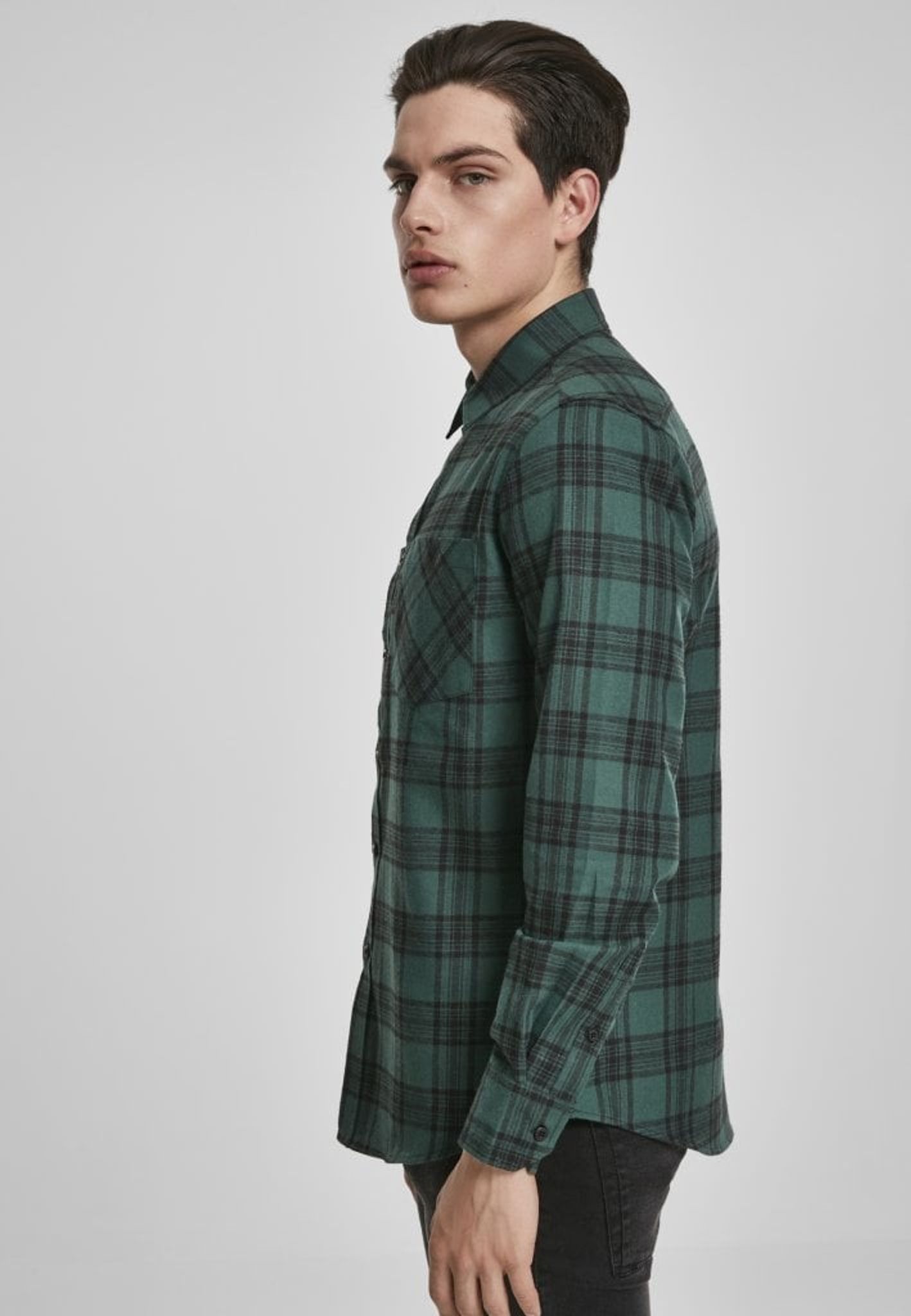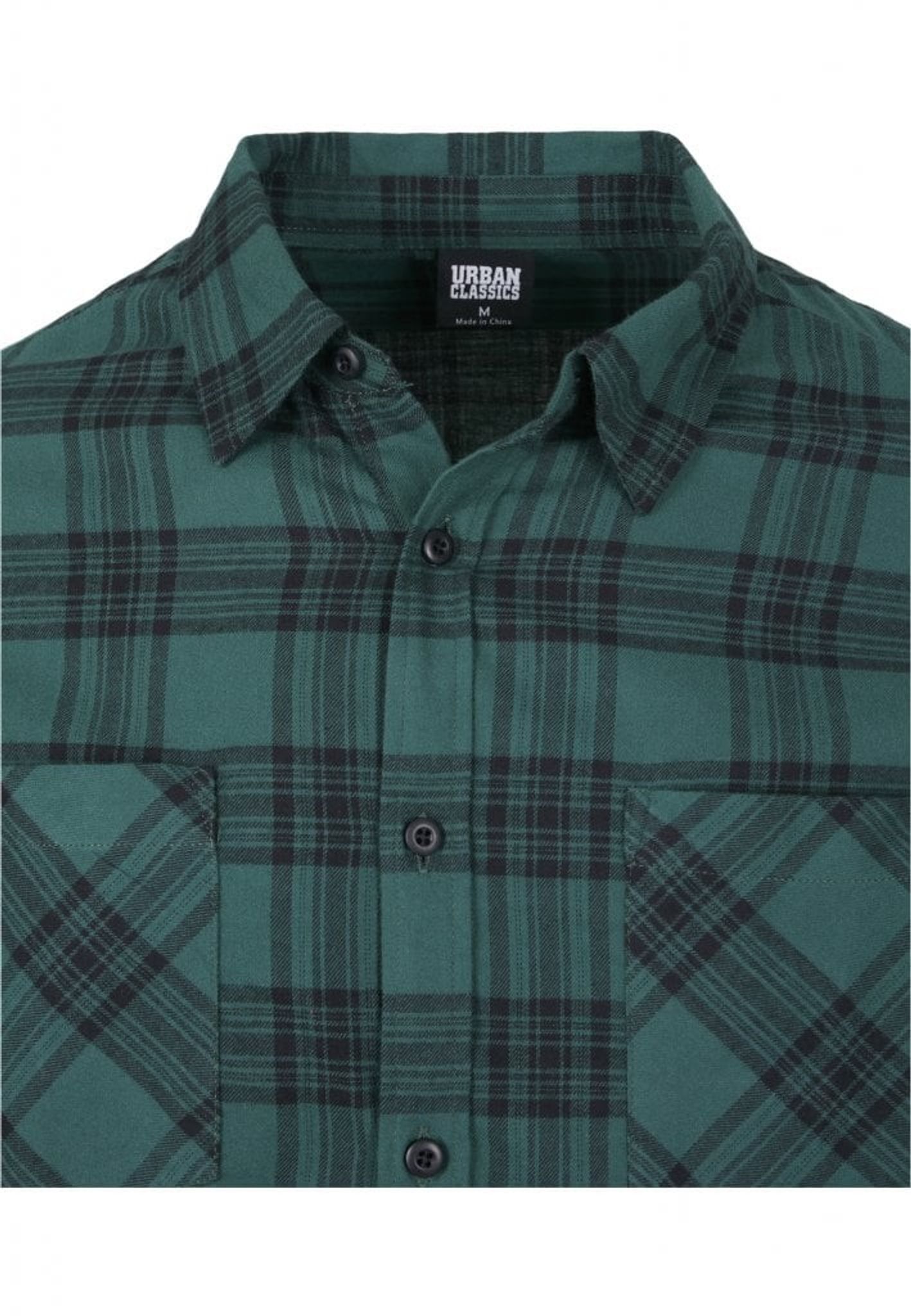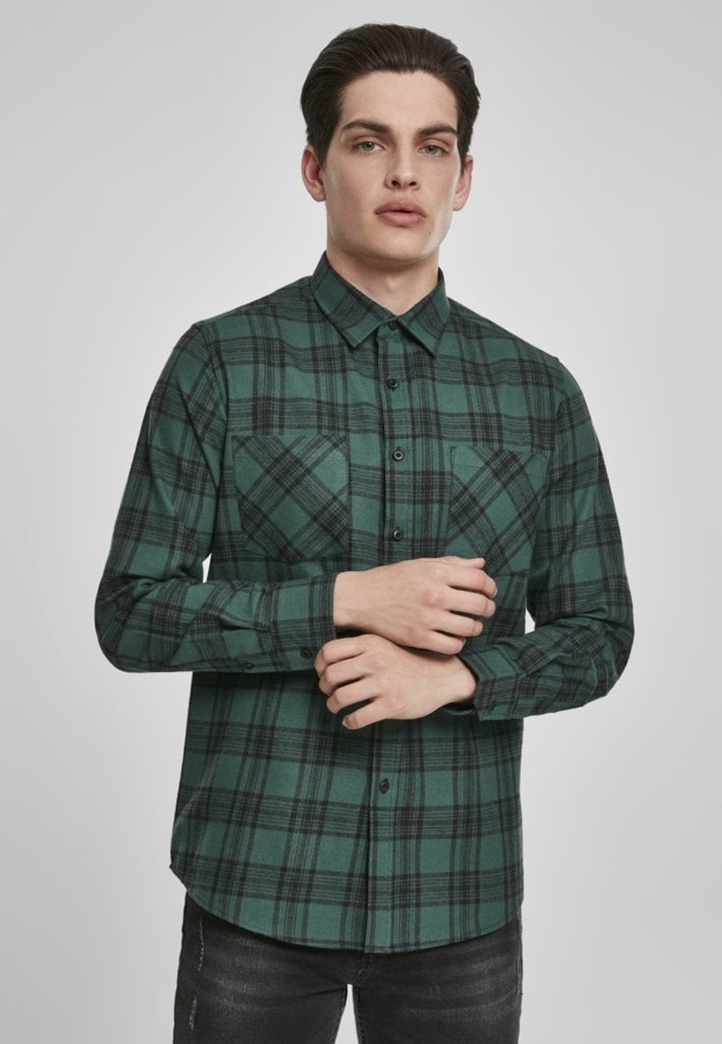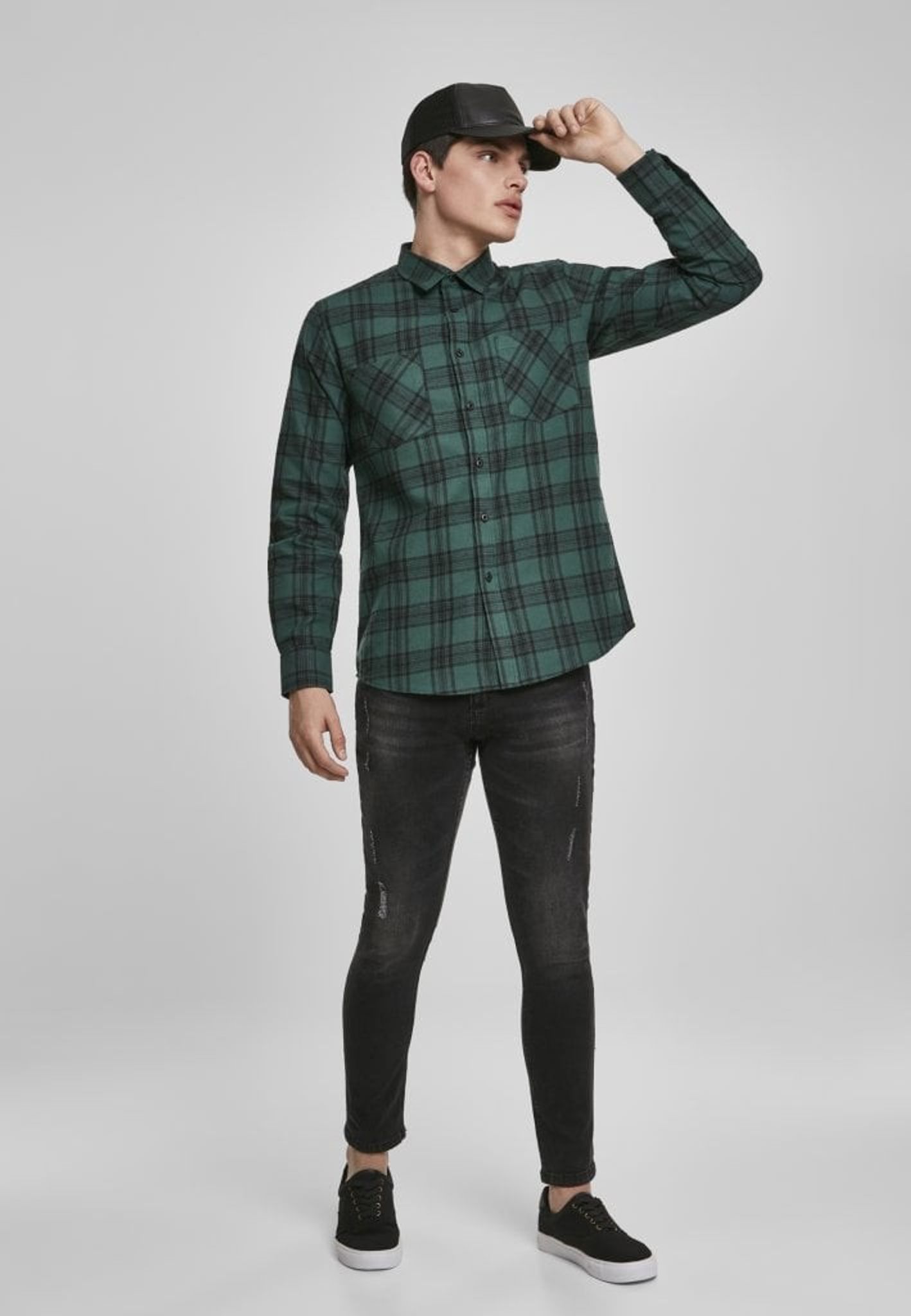 Rutig skjorta tillverkad i mjukt och skönt bomullstyg. Skjortan har en mörkgrön bakgrund och svarta linjer som skapar ett rutmönster.