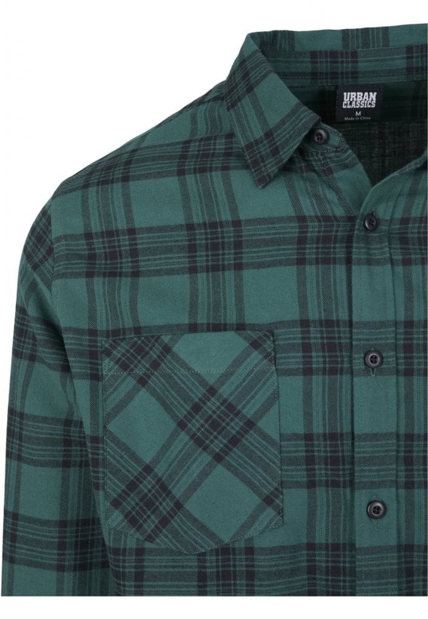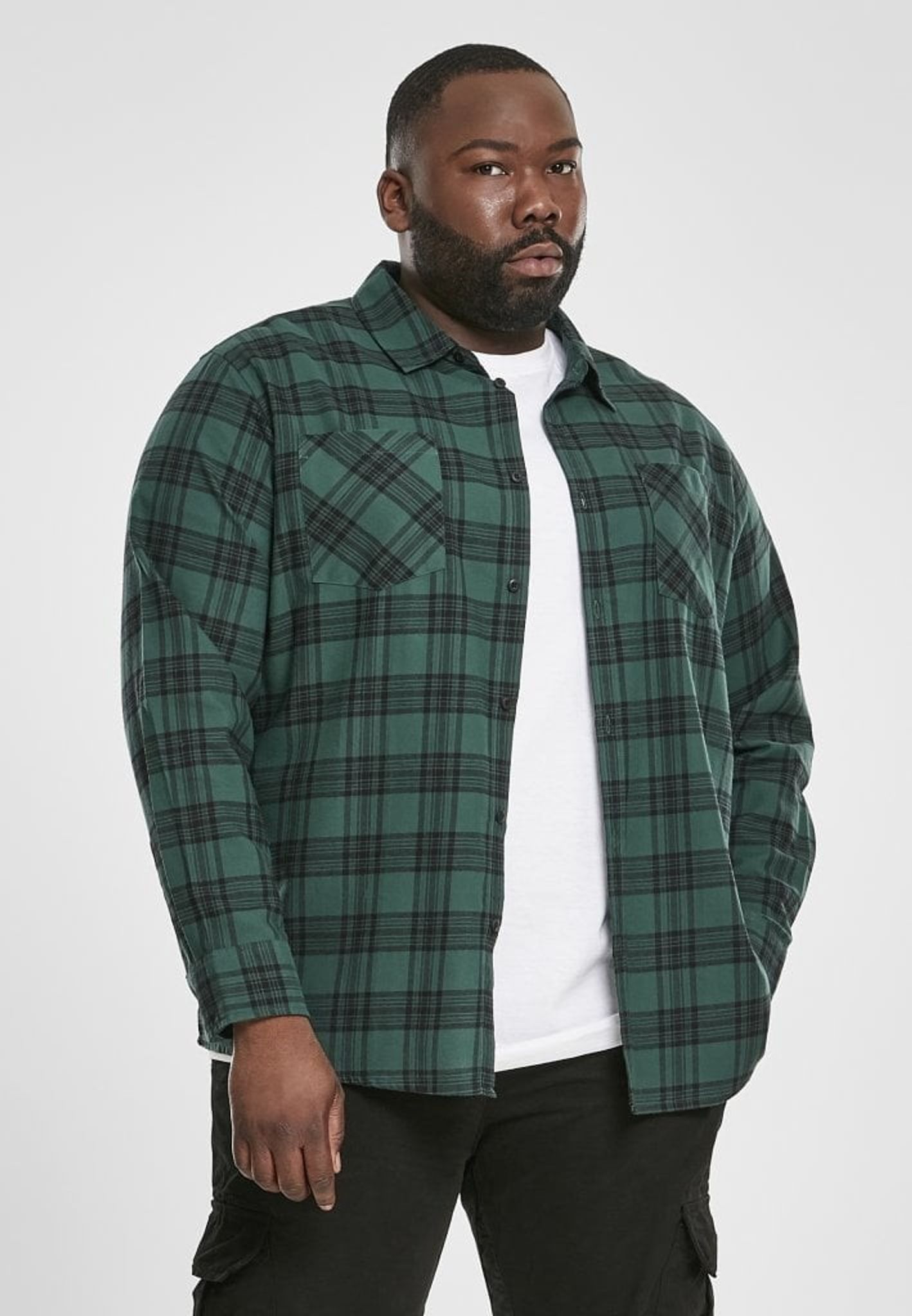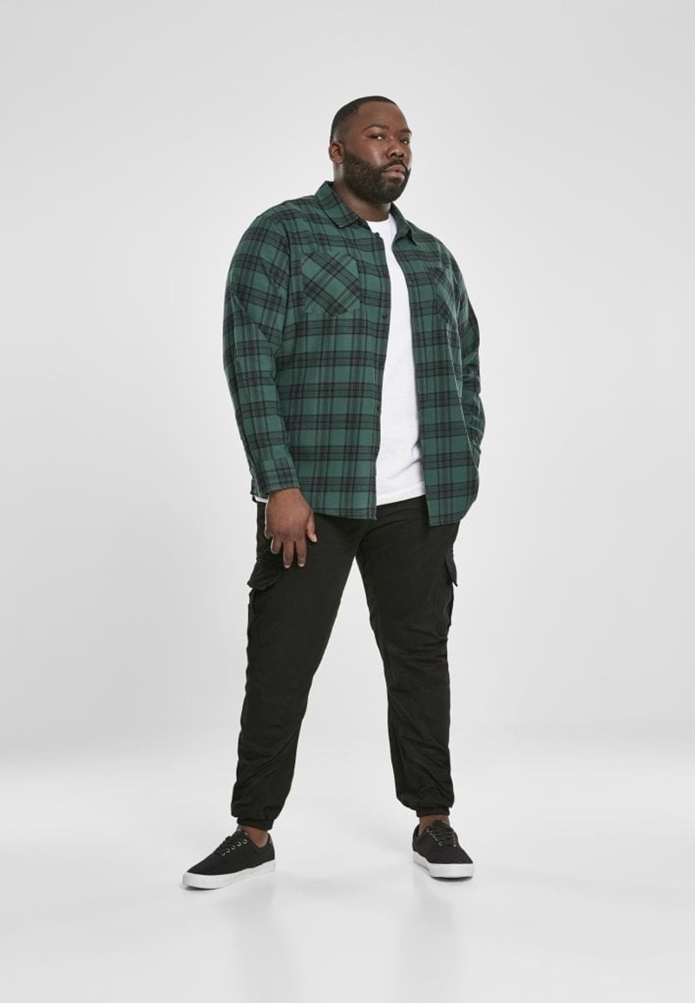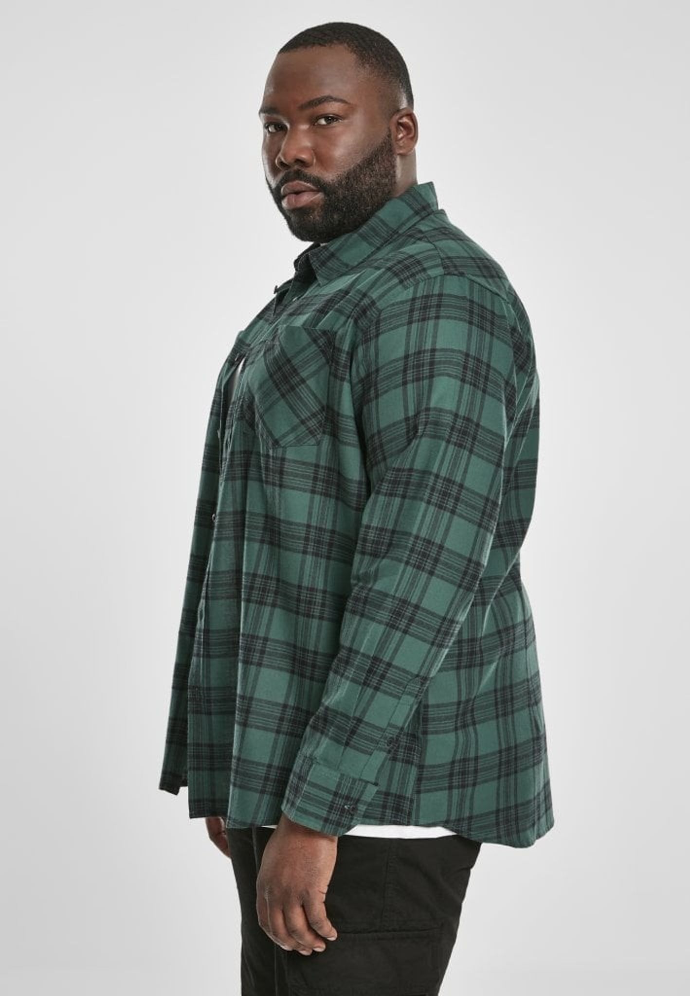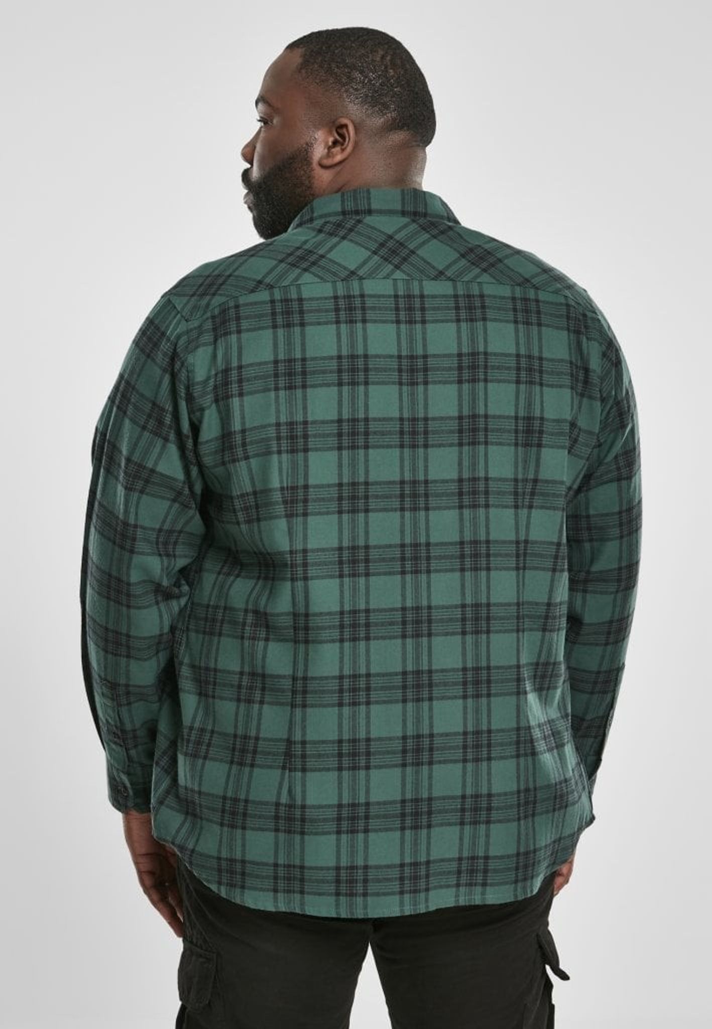 Rutig skjorta tillverkad i mjukt och skönt bomullstyg. Skjortan har en mörkgrön bakgrund och svarta linjer som skapar ett rutmönster.