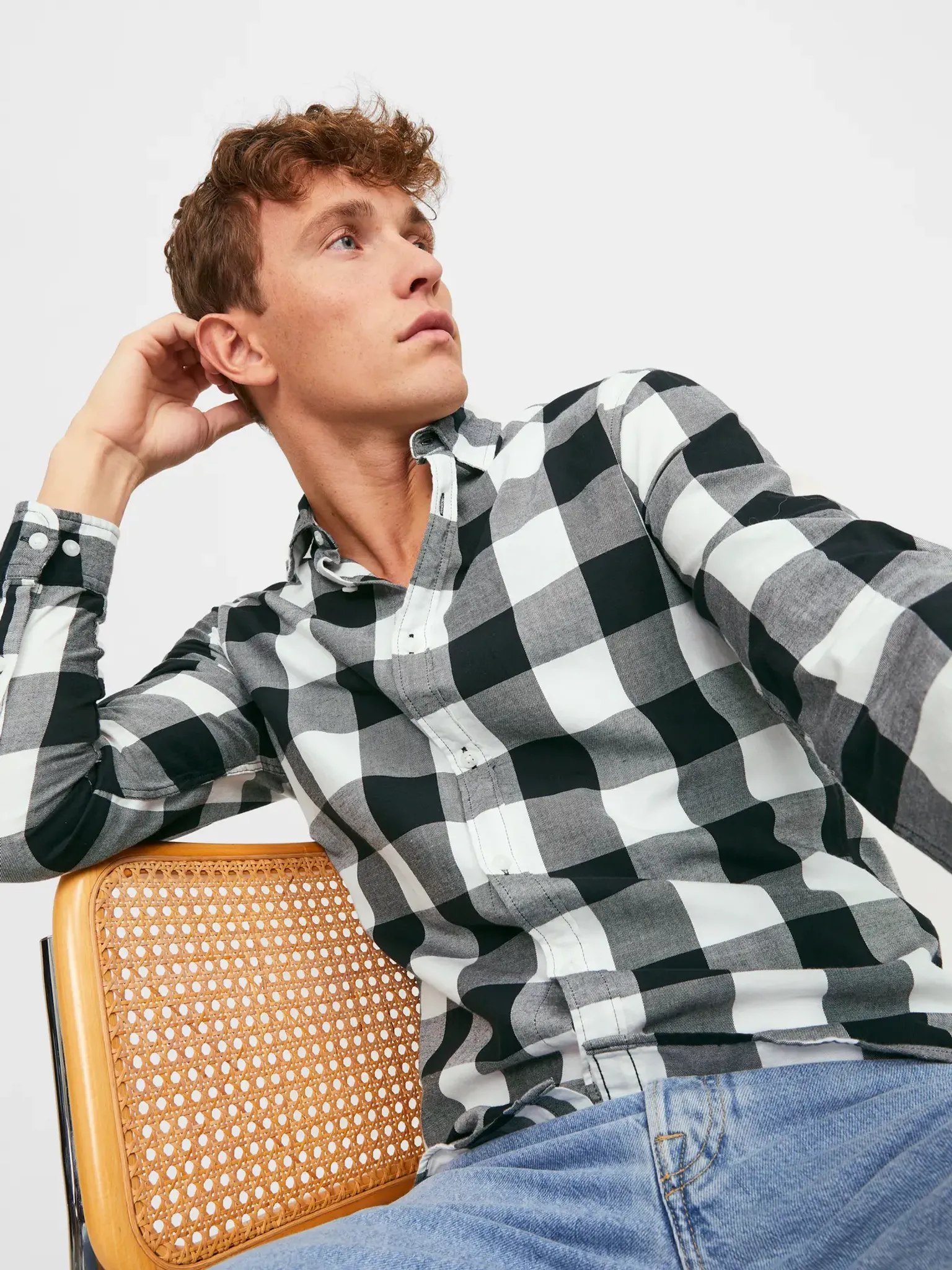Skjortan har en slim fit-passform som framhäver en smal silhuett. De långa ärmarna ger extra täckning och komfort under hela dagen. Den rutiga designen tillför en intressant detalj som gör att skjortan kan bäras både ensam eller som del av en lager-på-lager-look.