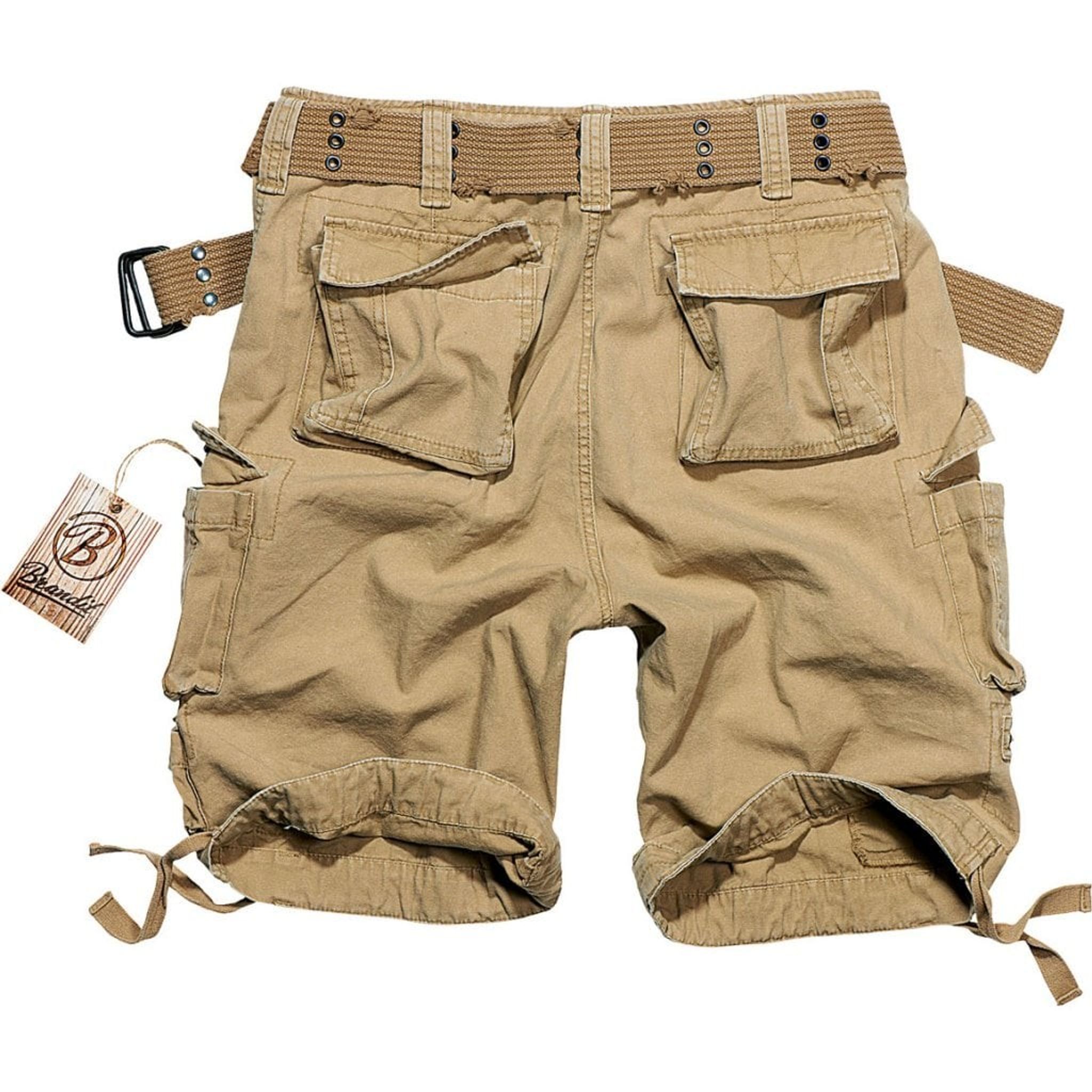 Dessa beiga cargoshorts har en sliten look och benen fyllda av fickor i olika storlekar.