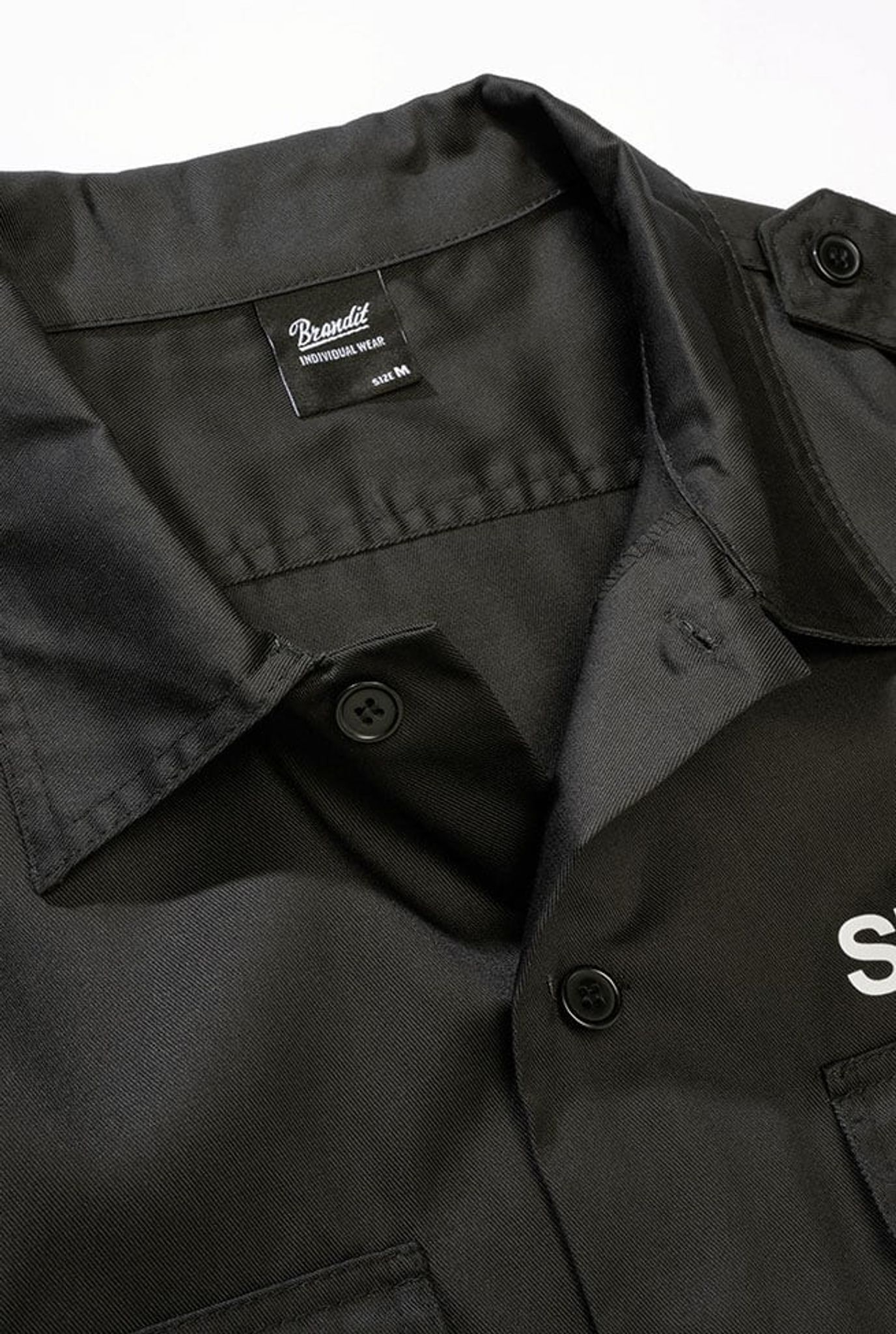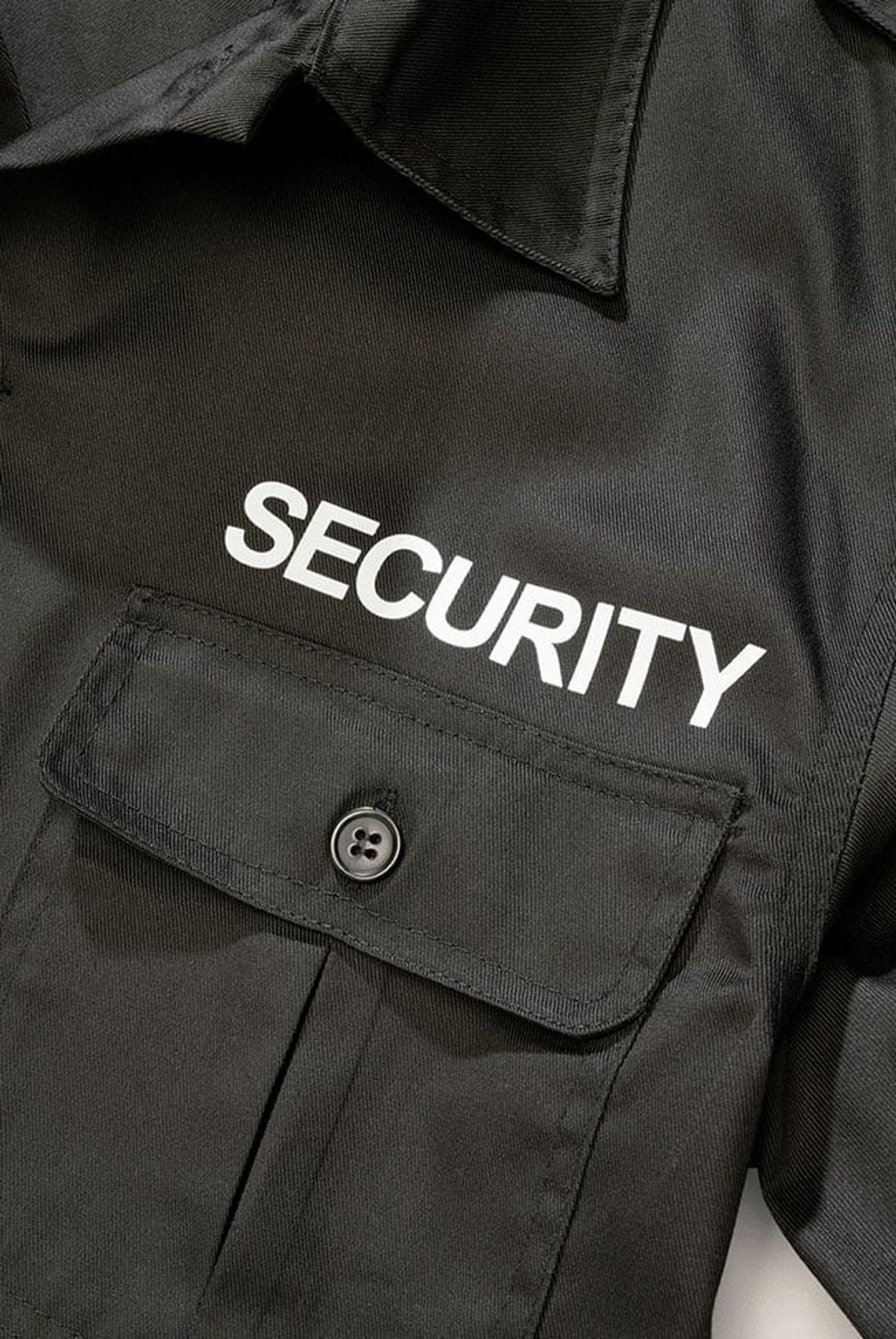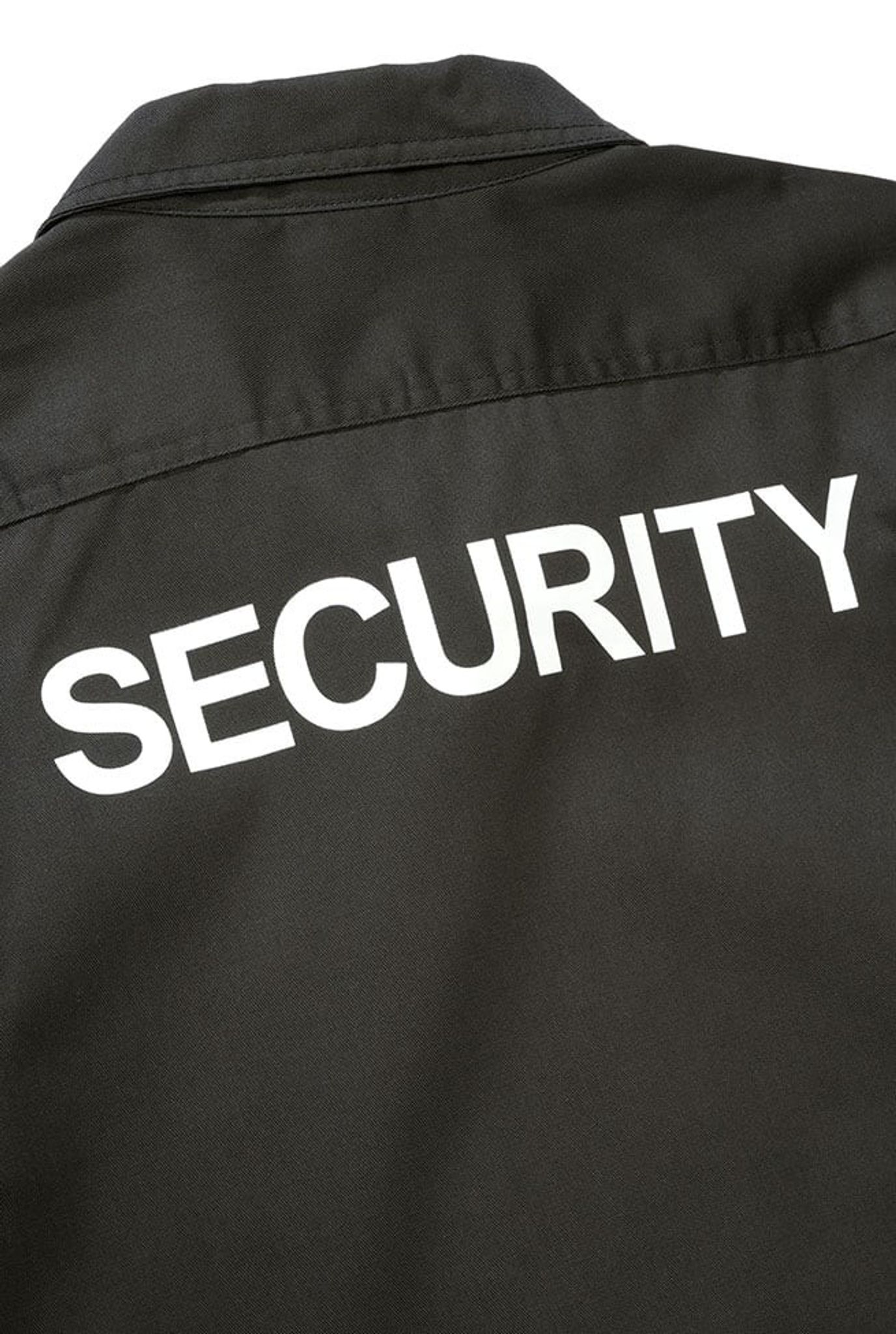 Med en framträdande "Security" tryck på den vänstra bröstfickan och en imponerande stor version av samma tryck på ryggen, är denna skjorta ett tydligt uttryck för auktoritet och professionalism. Varje gång du bär den, bär du med dig en symbol för ansvar och trygghet.