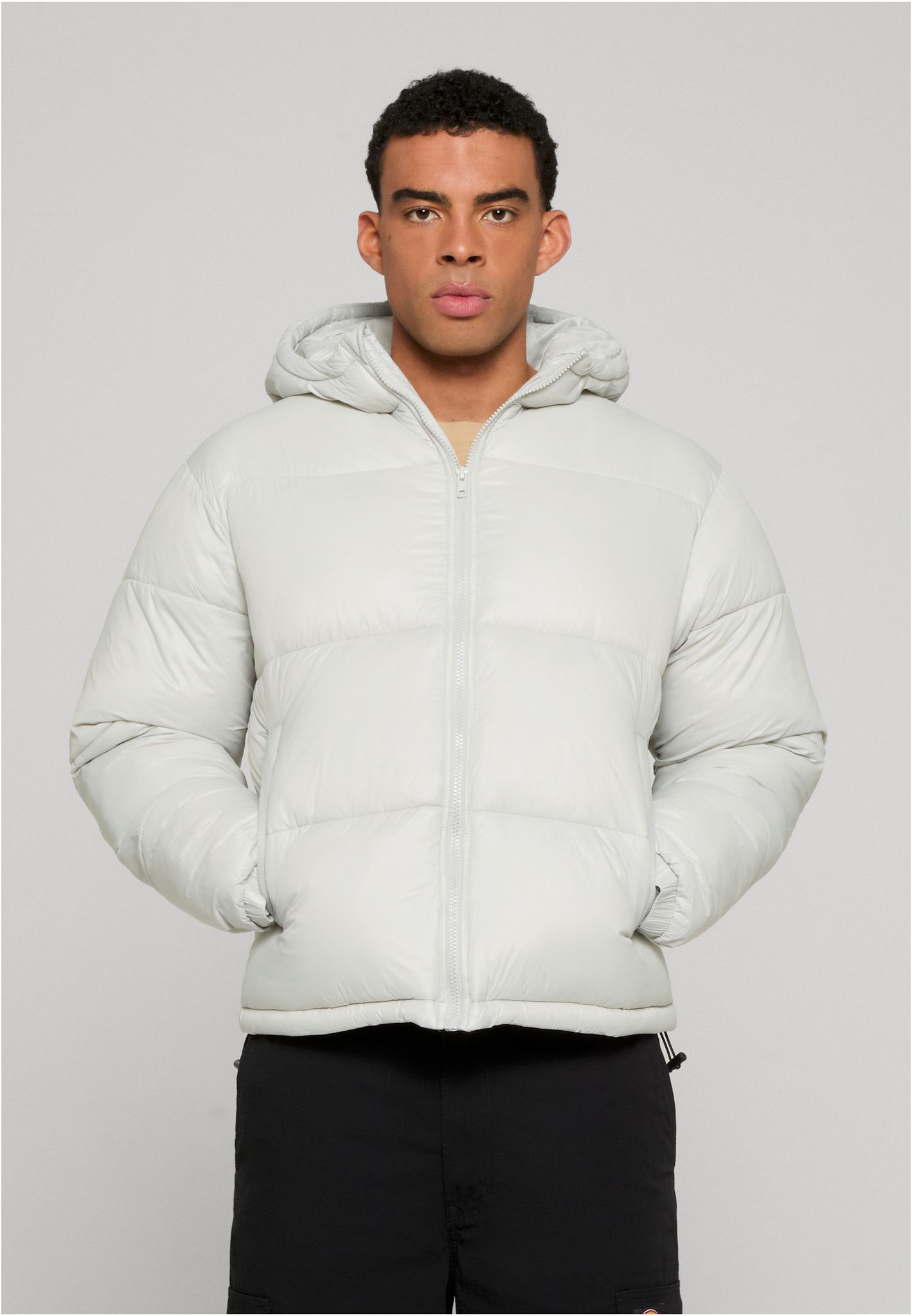 Shiny Puffer Jacket With Hood Jacka för herr – lightasphalt