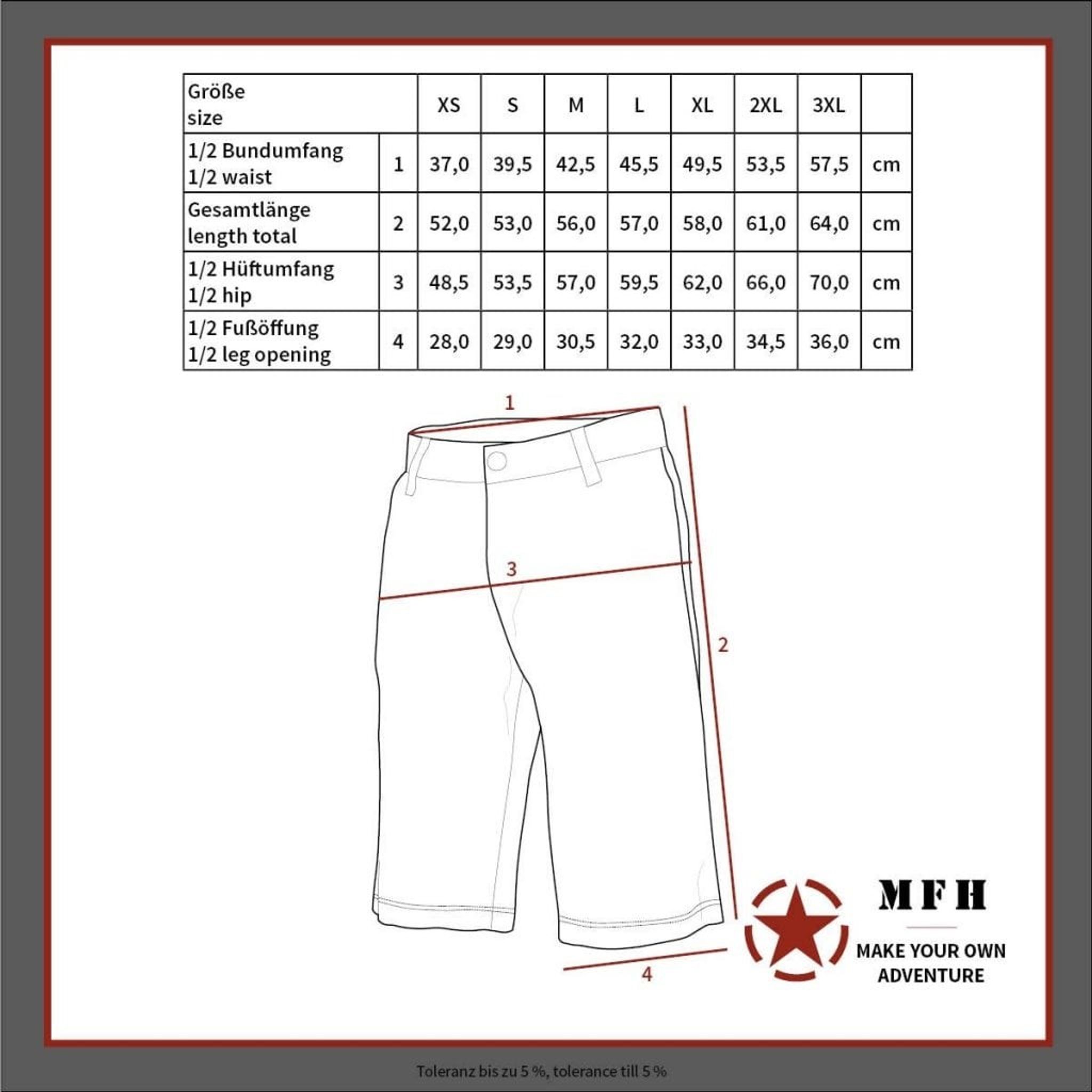 Ett par långa bermuda-shorts med totalt sex stycken fickor. Två byxfickor, två benfickor samt två bakfickor. Både bakfickorna och sidofickorna har lock med knäppning.