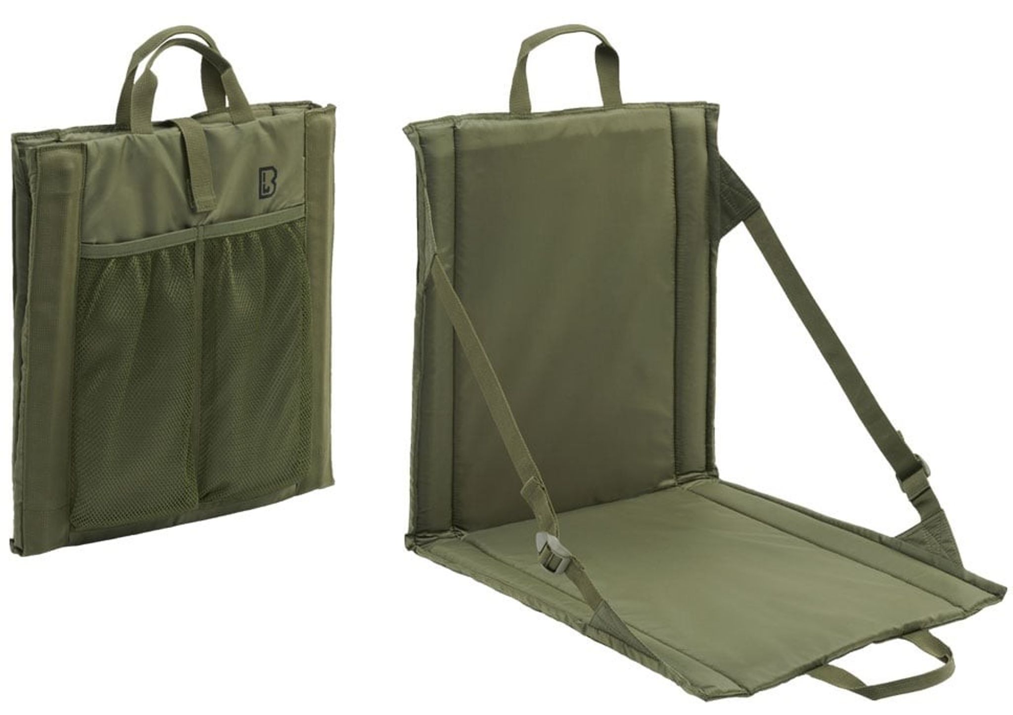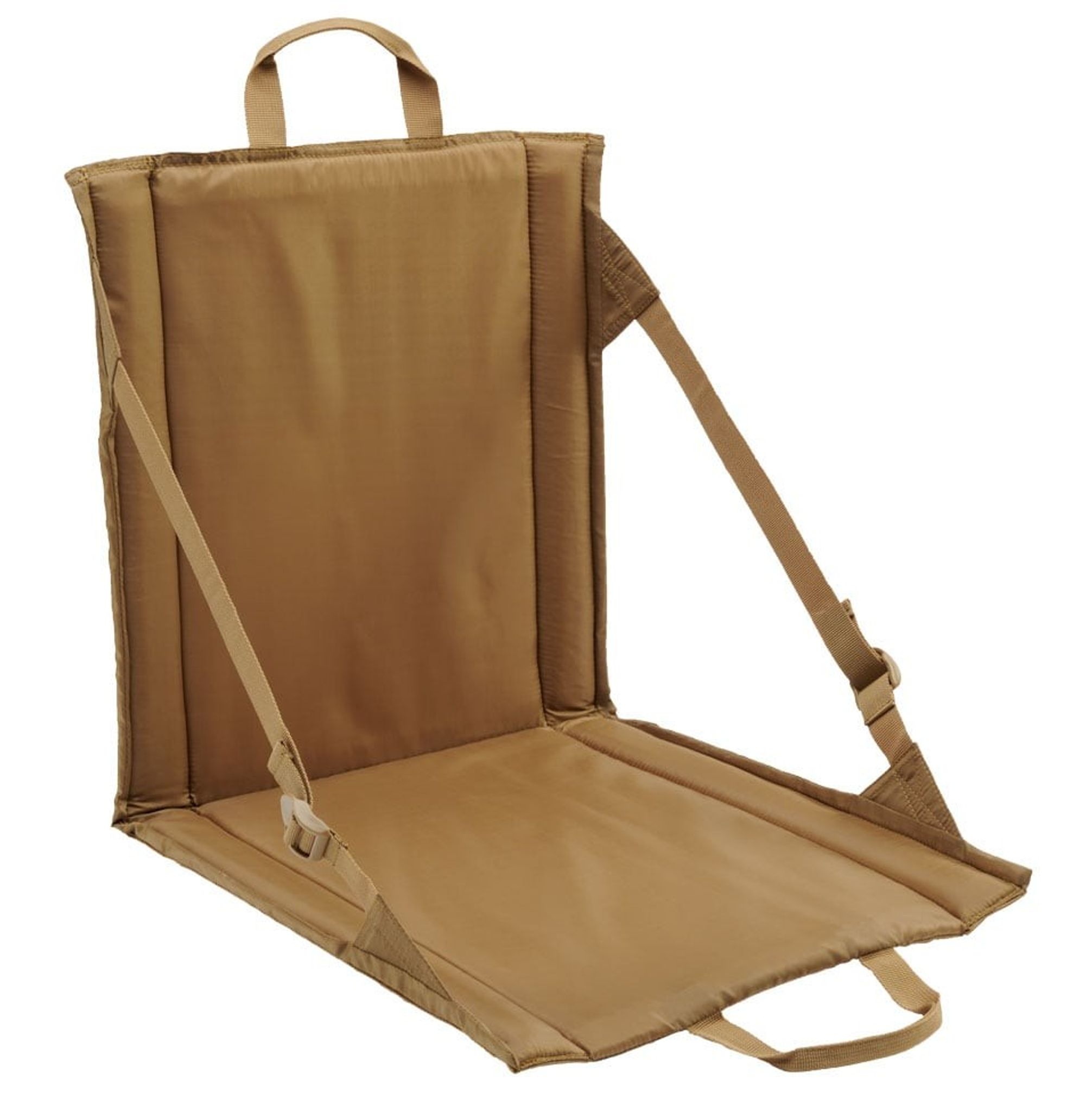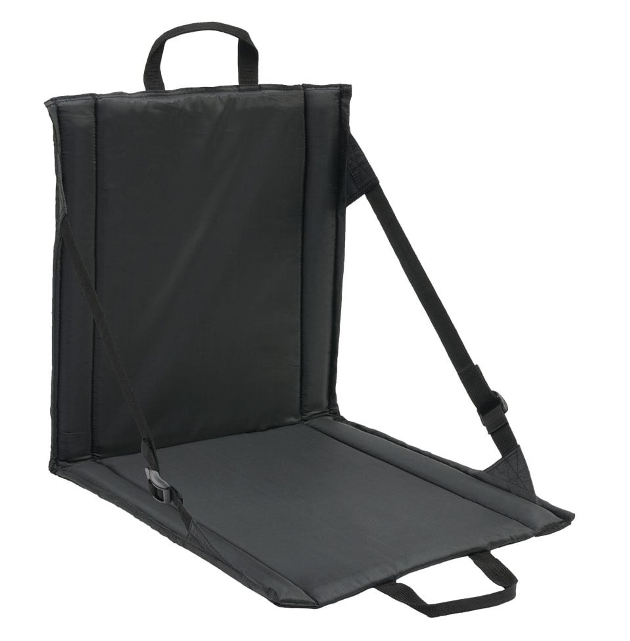 Ett praktiskt sittunderlag som enkelt fälls ut och ger ett ryggstöd. Sittunderlaget är försedd med bärhandtag för att enkelt kunna bäras med.