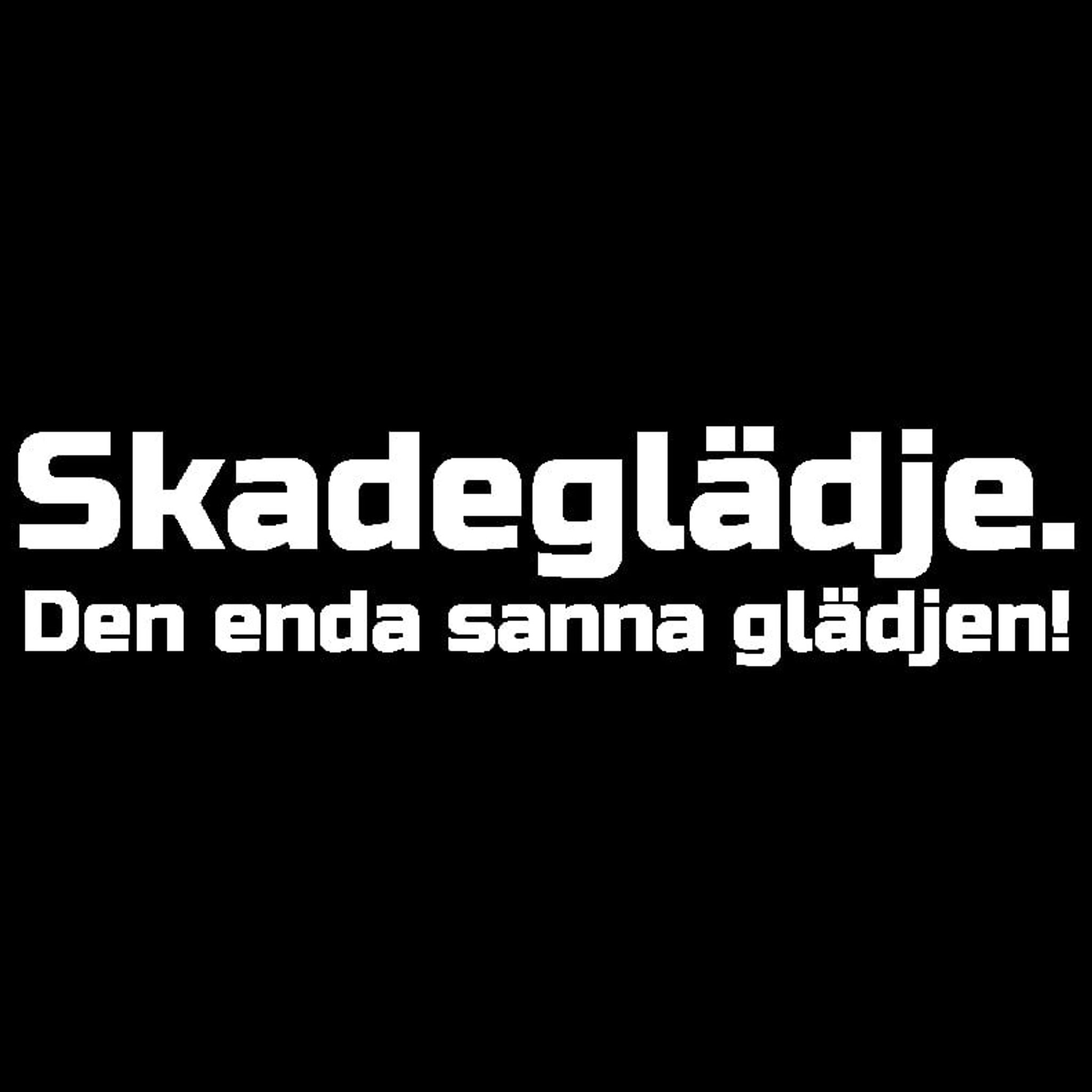 Tryck med texten: Skadeglädje. Den enda sanna glädjen!
