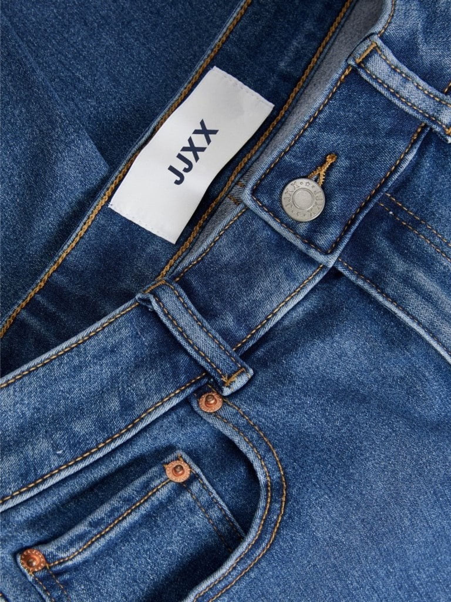 Ett par blå stenvtättade tajta jeans från JJXX i skinny fit modell. Jeansen har dragkedja i gylfen samt ett härligt strechmaterial så du får en extra bärkomfort. Jeansen är av den klassiska 5-ficksmodellen.