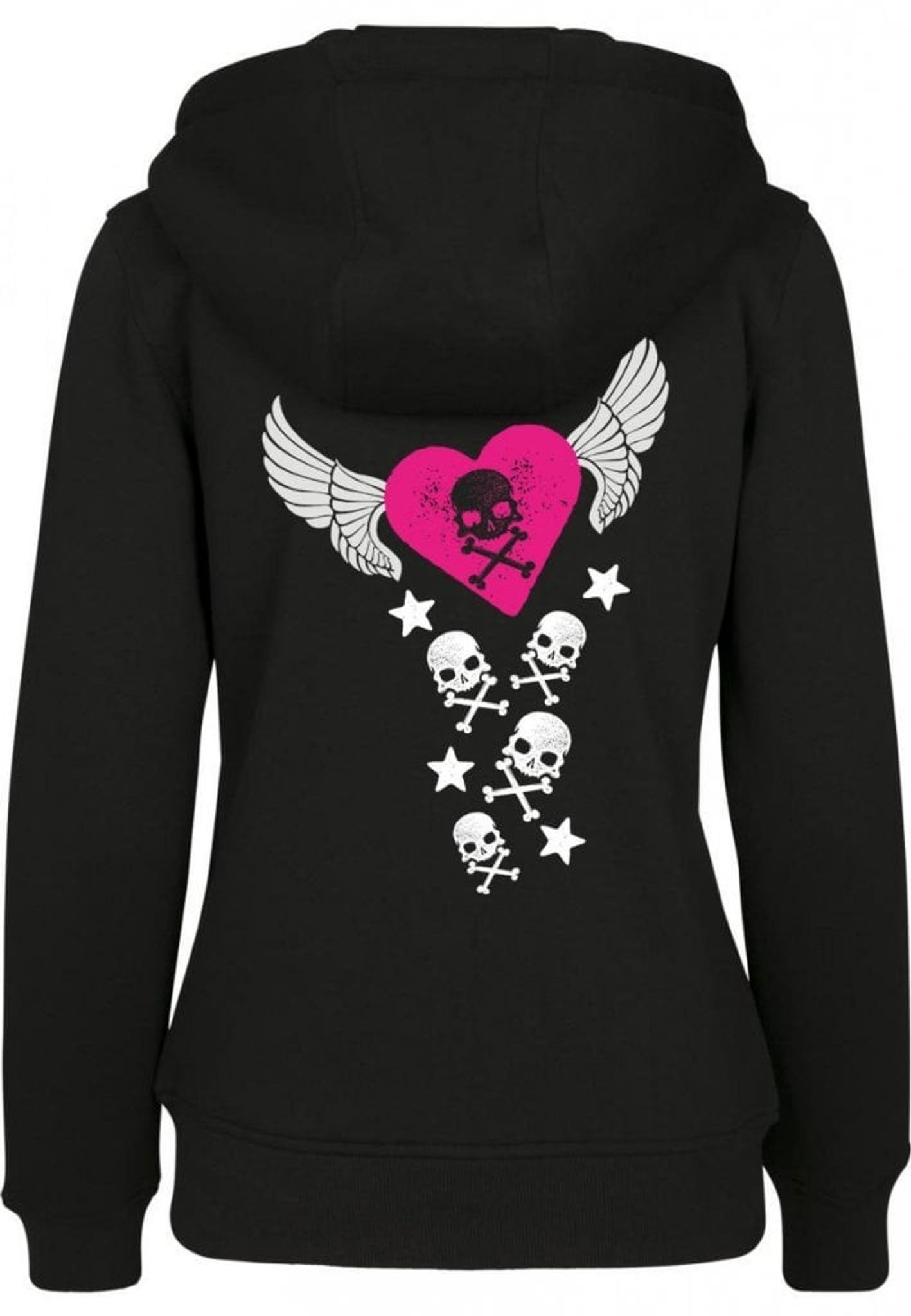 En riktigt härlig hoodie med trycket skulls and heart bak och en snygg döskalle fram på vänster bröst.