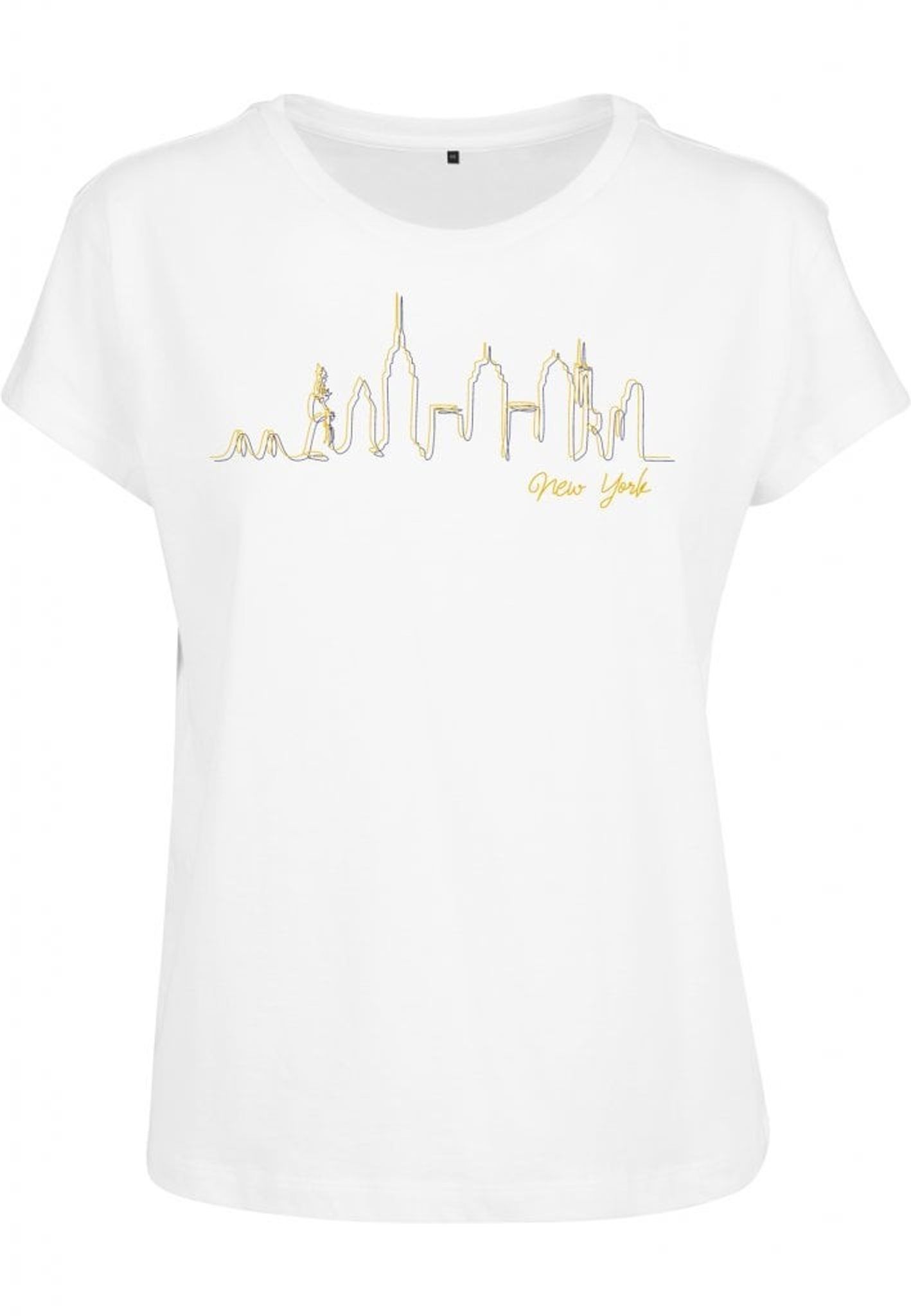 Skyline Box T-shirt dam. En vit T-shirt med silhuetten av en New York i linje över bröstet. Material: 100% bomull