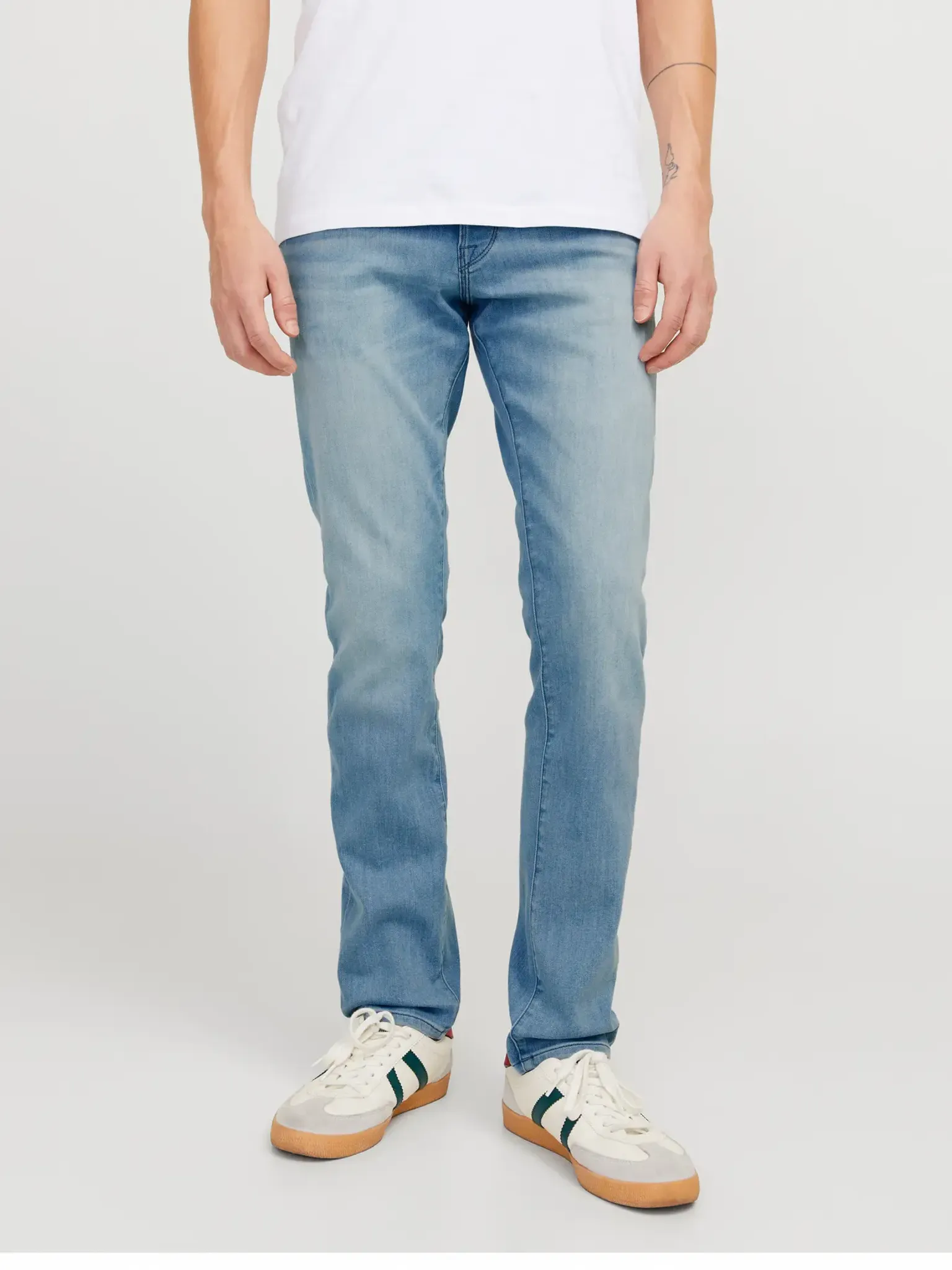 - Passform: Slim fit jeans med låg midja, smal lår, smal knä, tajt benöppning
