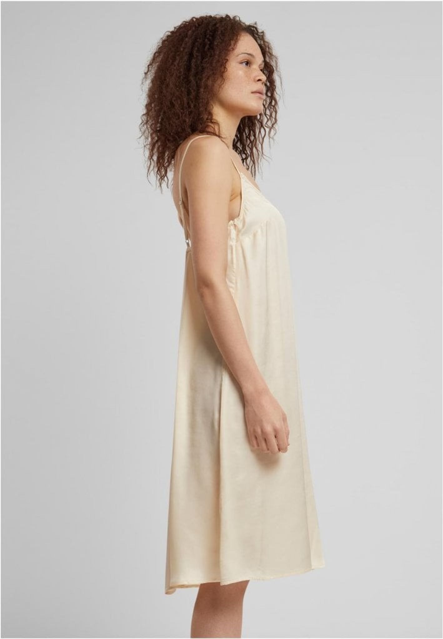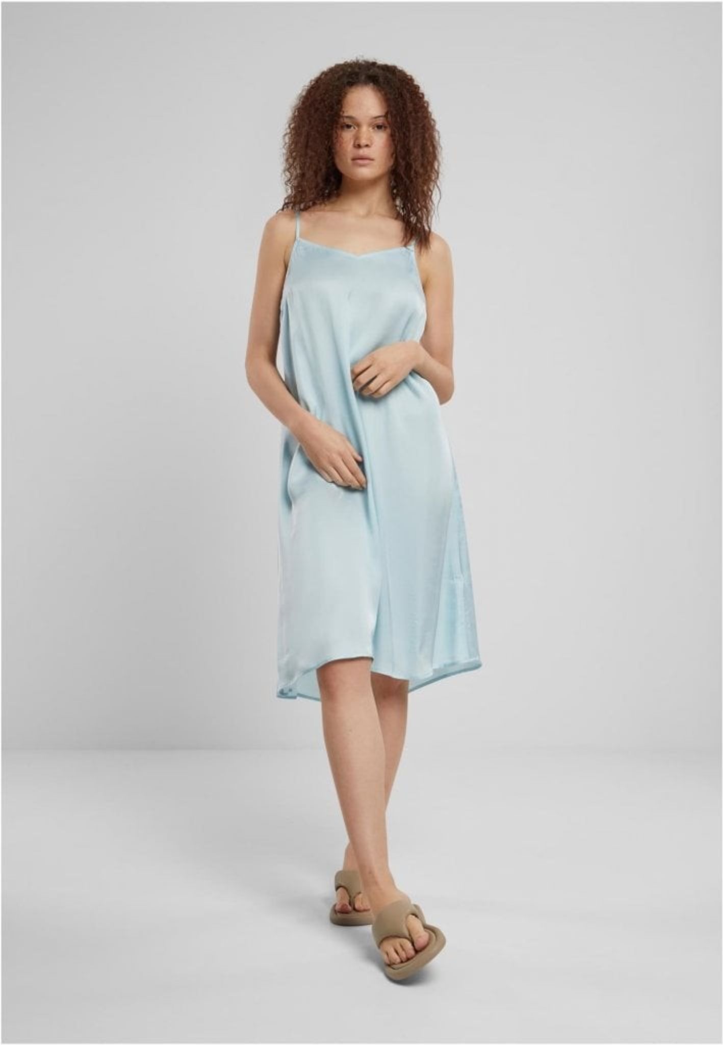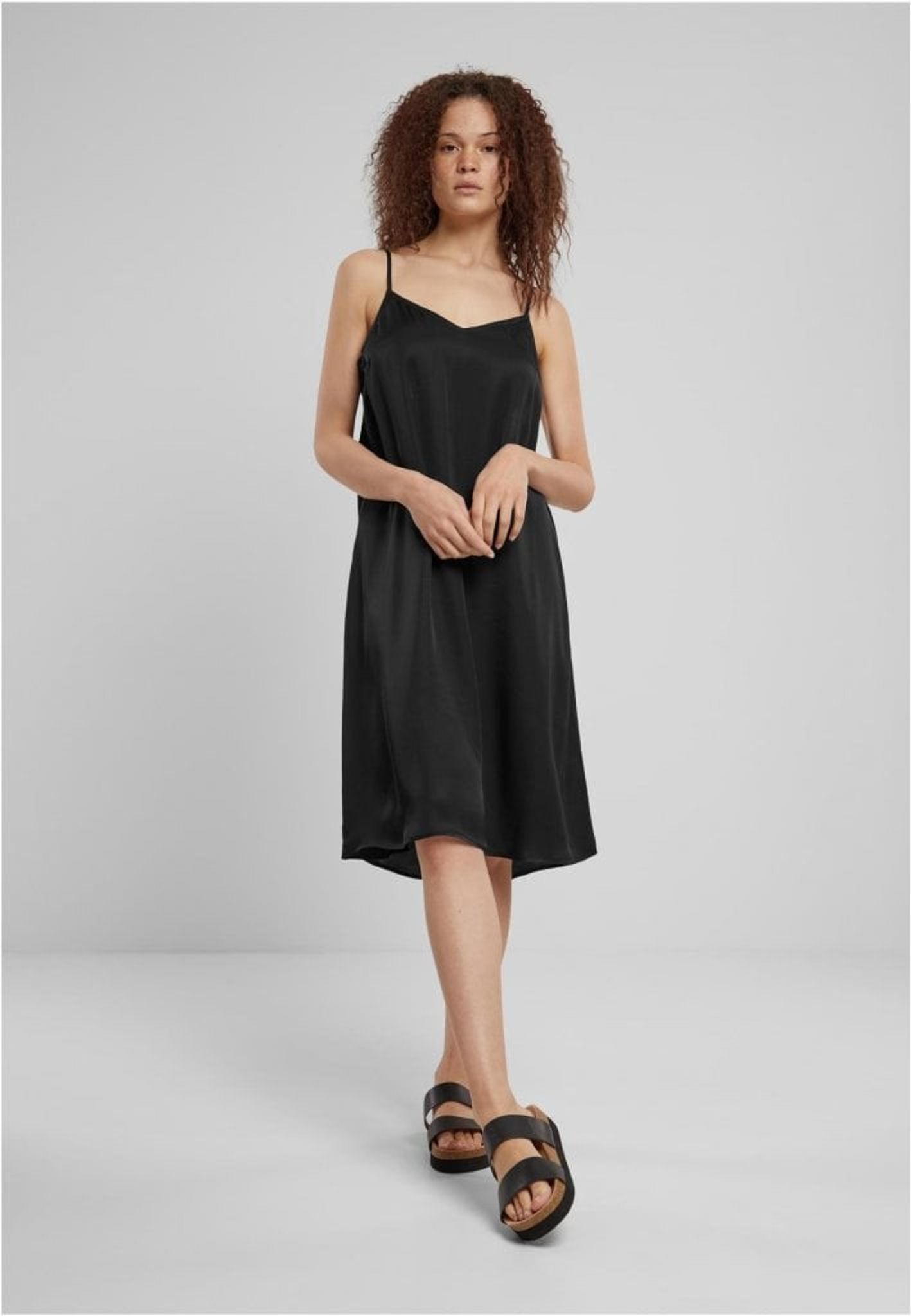 Slipklänningen i viskos satin från Urban Classics kombinerar enkel elegans med exceptionell komfort. Denna ärmlösa klänning, perfekt för avslappnade stunder hemma eller som stilren nattklänning, kännetecknas av sitt mjuka, knälånga design och fina spagettiband. Tillverkad av 100% viskos, smeker den försiktigt kroppen och erbjuder en lyxig känsla mot huden.