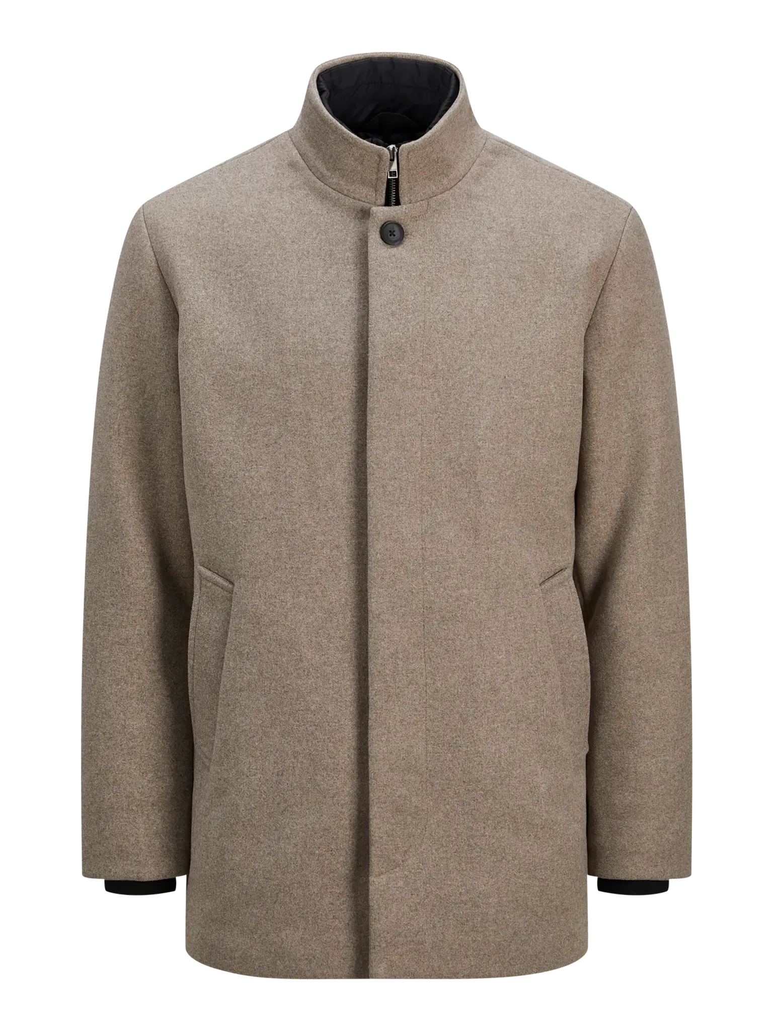 Denna vindtäta ullrock med hög ståkrage är designad för att ge ett smart-casual utseende, oavsett om det är för en kväll ute eller för vardagliga aktiviteter.