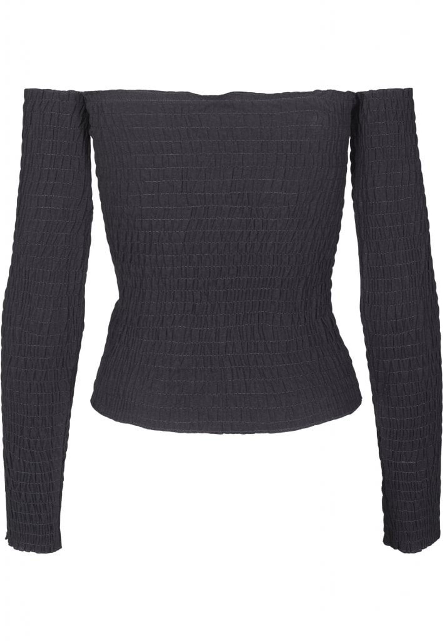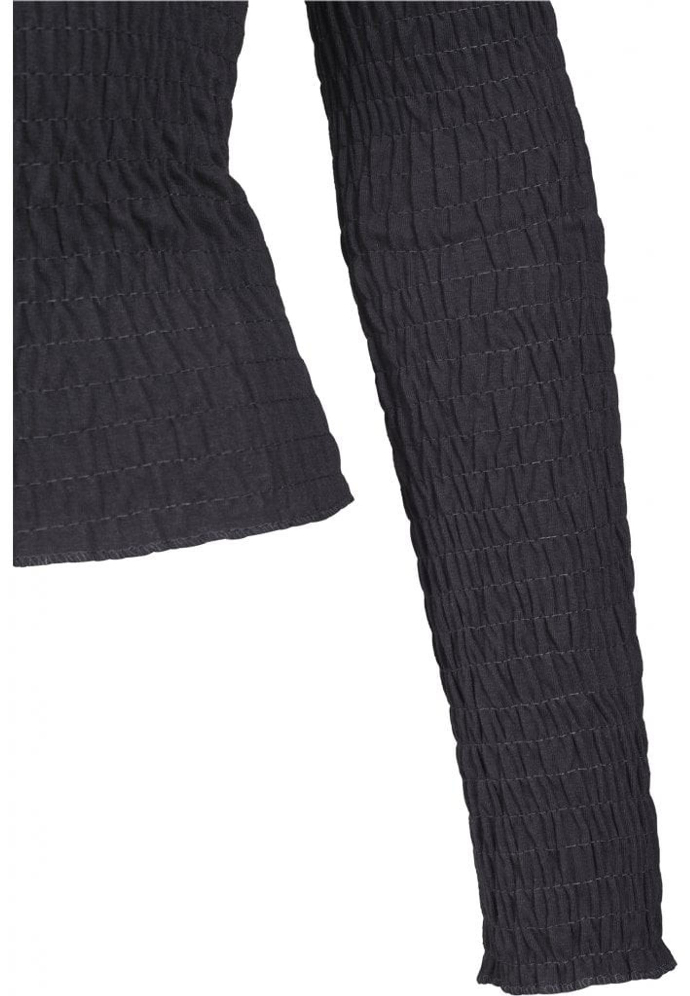 En långarmad topp helt sydd i smock i krinklat tyg.