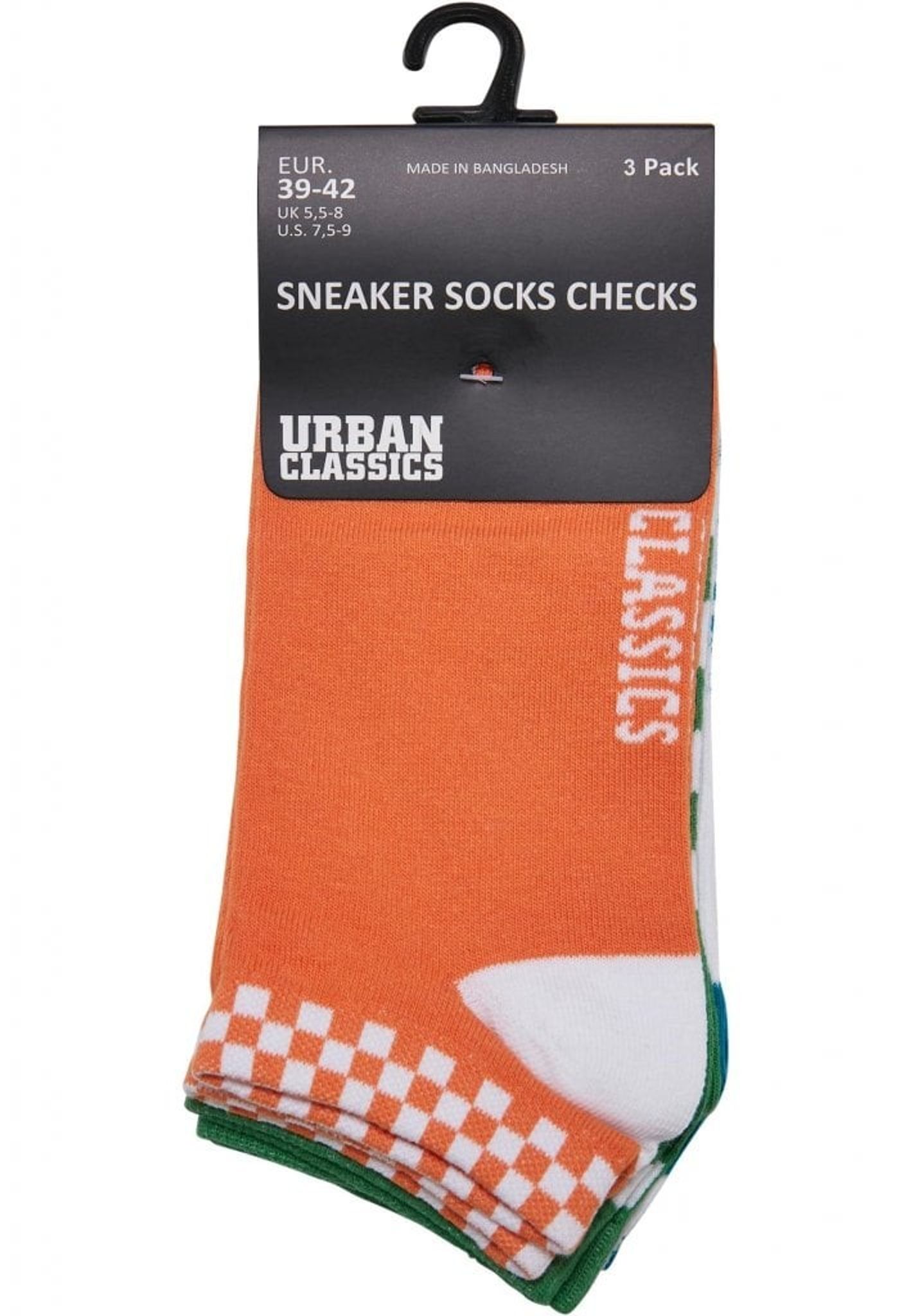 Dessa trendiga sneakerstrumpor är extra låga och når precis under ankeln. De kommer i en pack om tre par i färgerna svart och vitt, kryddade med stilsäkra designvarianter som det trendiga rutiga mönstret och Urban Classics logotypen vid hälen. Det använda materialet av bomull och en fin mängd spandex erbjuder idealiskt bärkomfort.