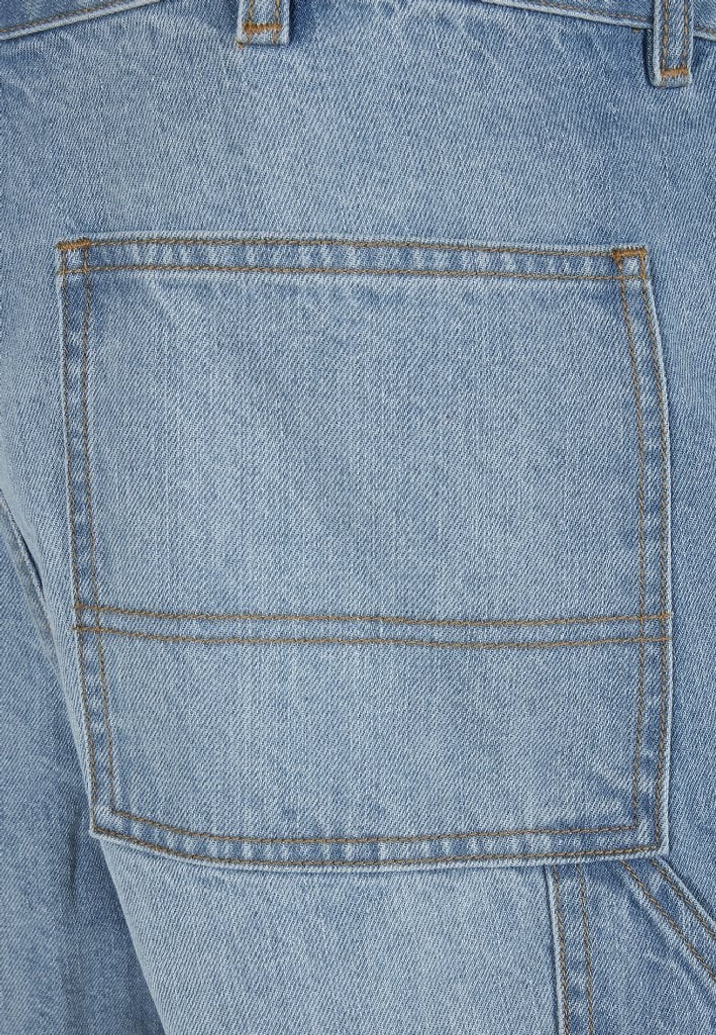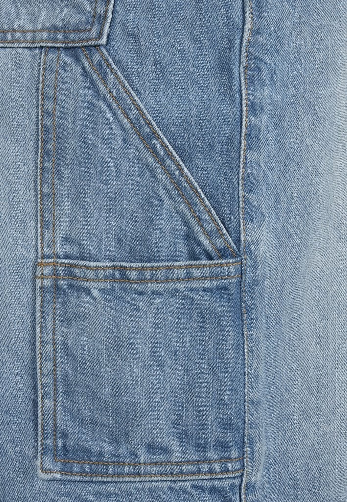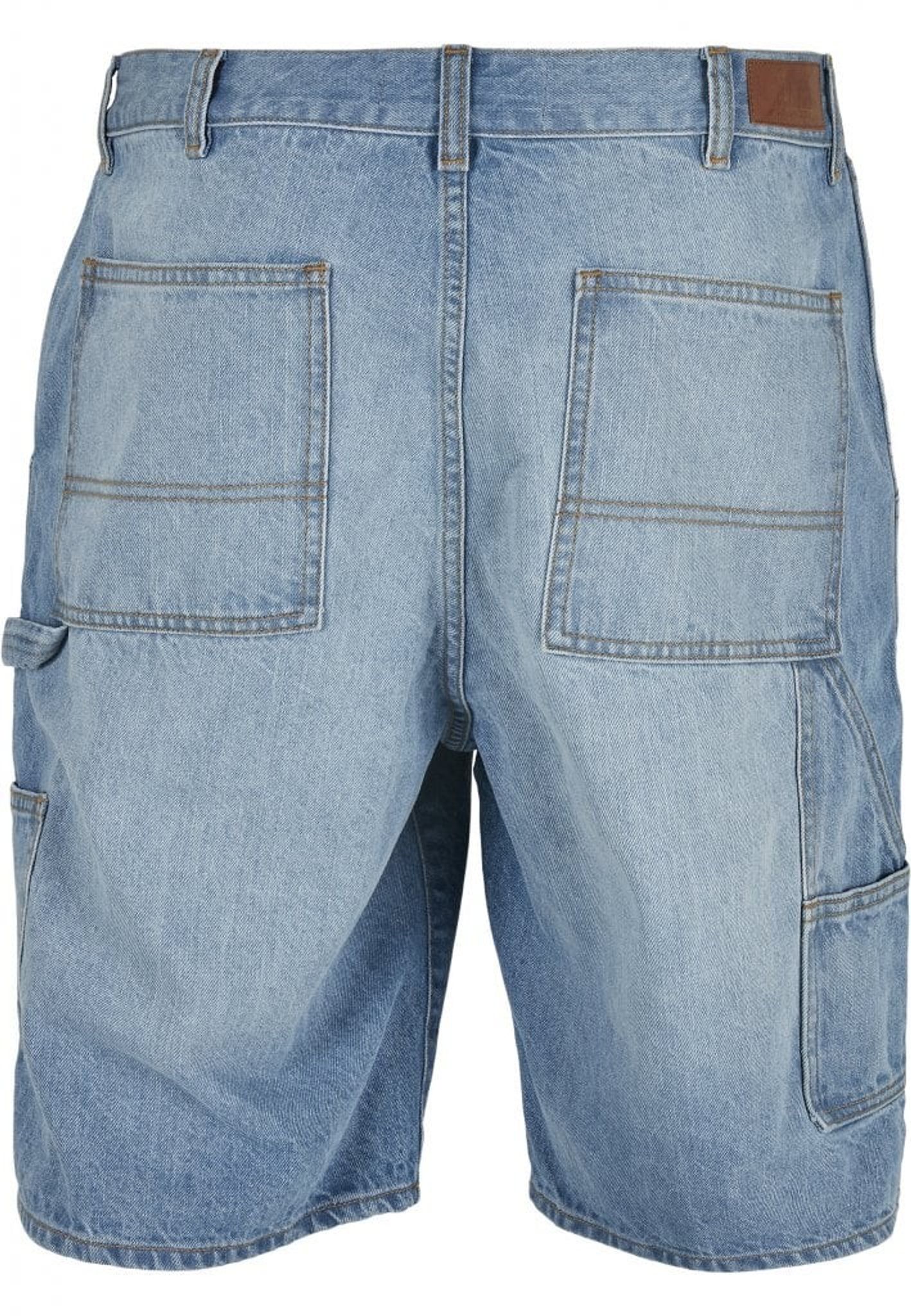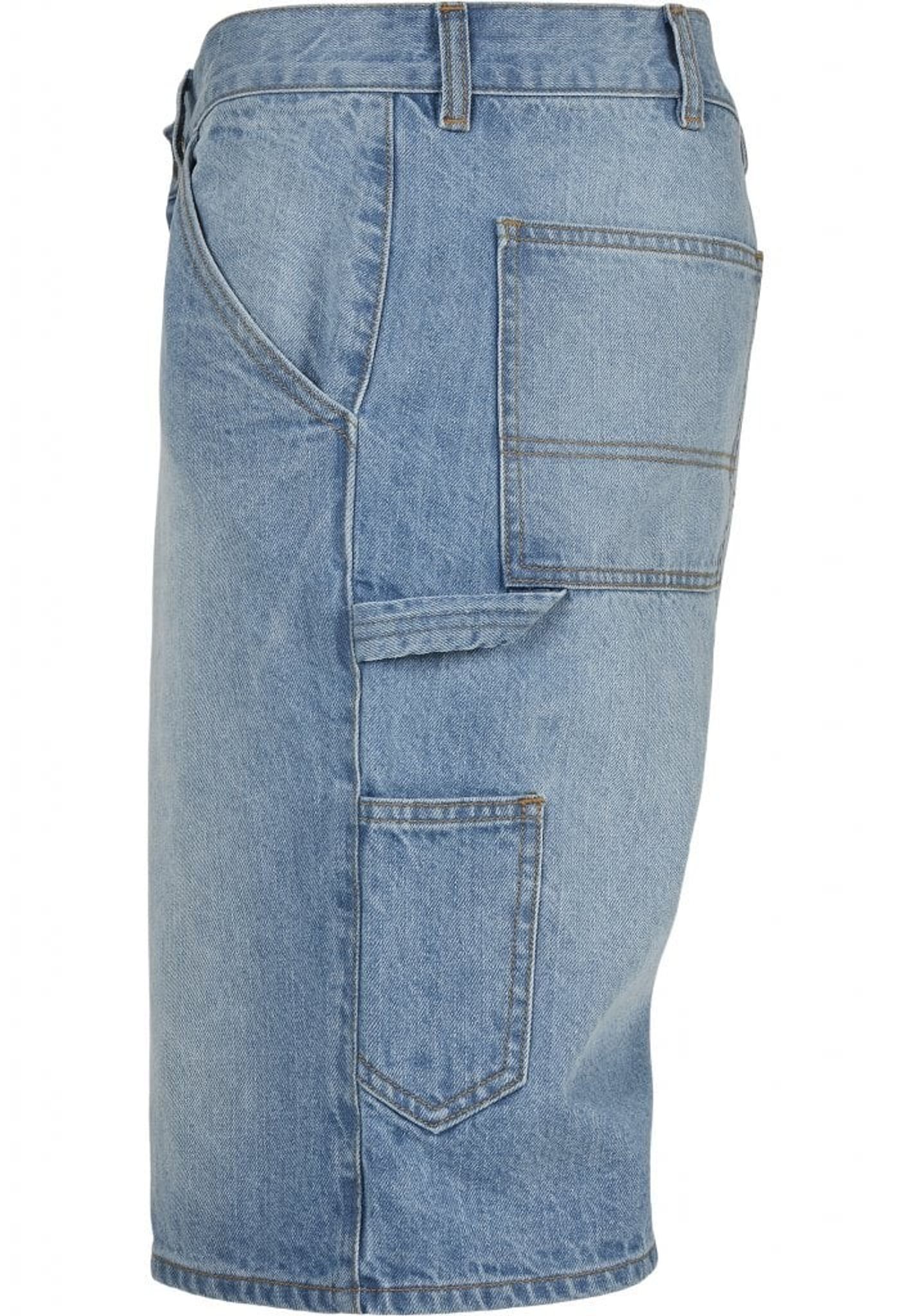 Ett par knälånga jeansshorts med loose fit. Shortsen har flertal fickor och ögla för hammare.