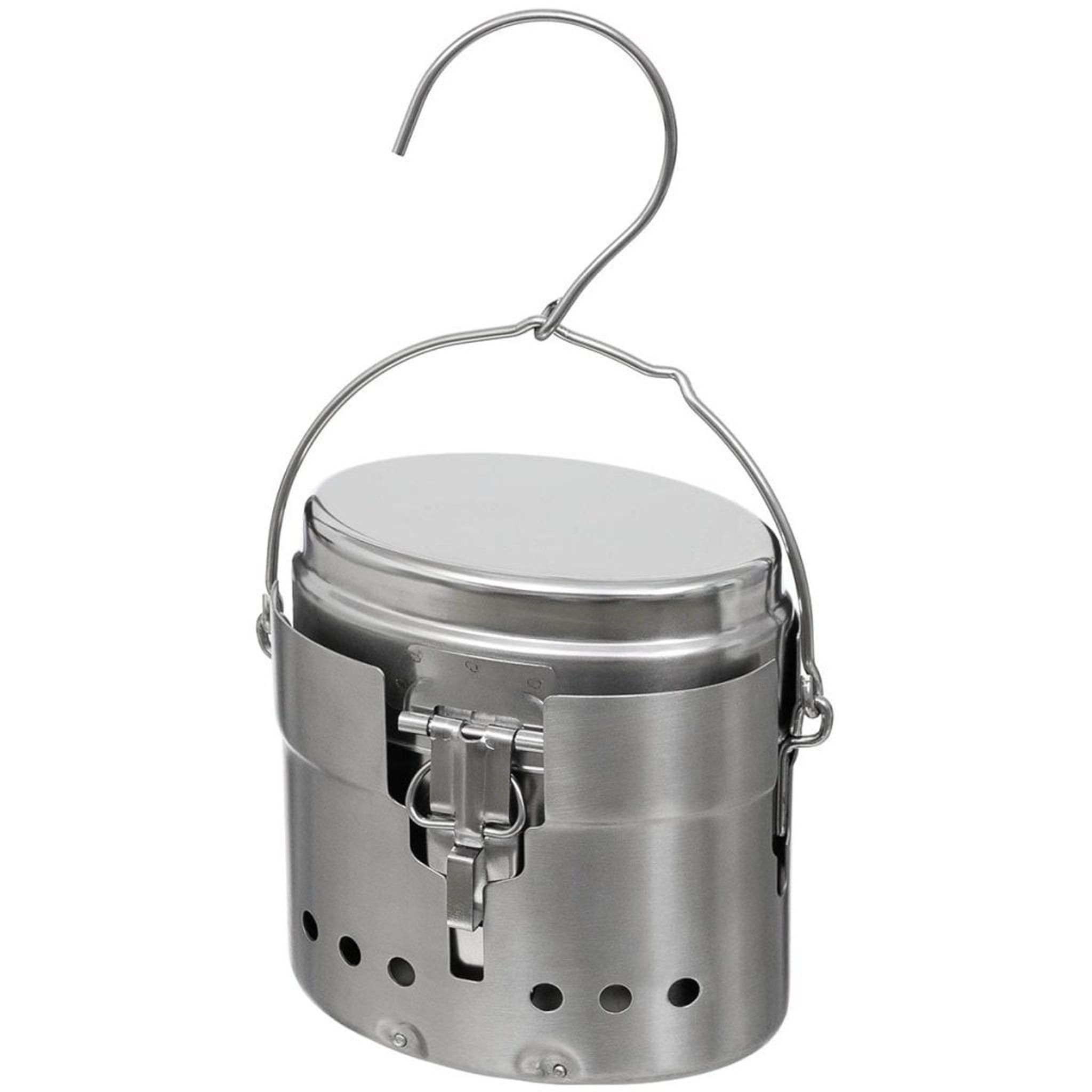 Den robusta konstruktionen i rostfritt stål säkerställer att kokkärlet klarar av både den direkta värmen från en flamma och de generella påfrestningarna av friluftsliv. Den rena och stilrena designen tillför även en estetisk aspekt till din utrustning, vilket speglar en kombination av praktisk funktionalitet och enkel elegans. Att det är stackbart gör det ännu mer lämpligt för packning och förvaring.
