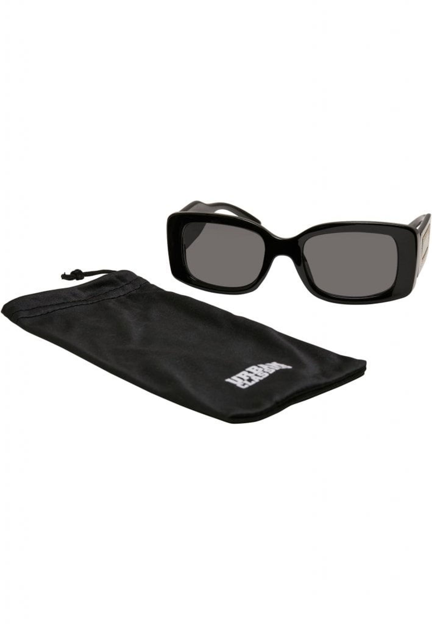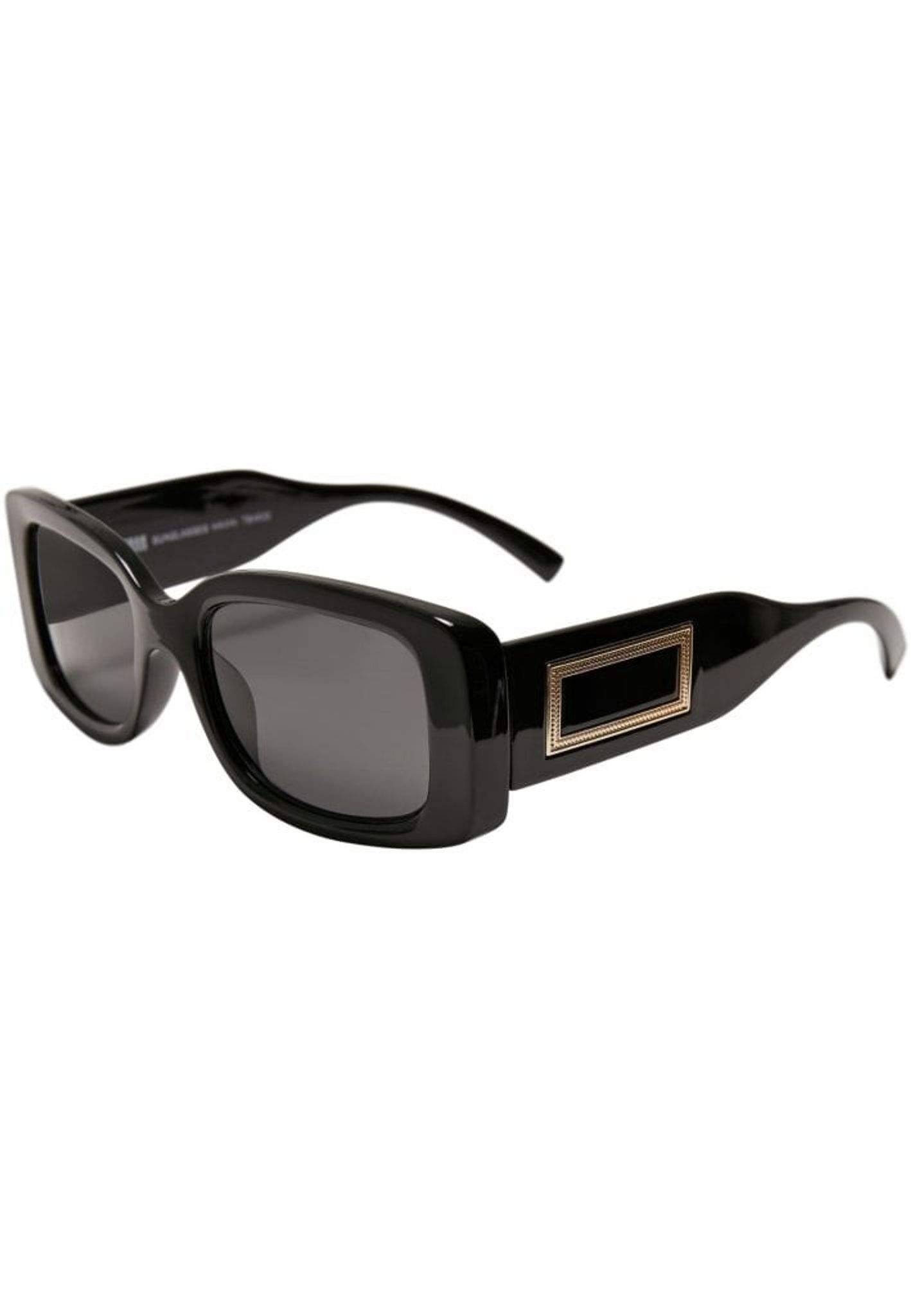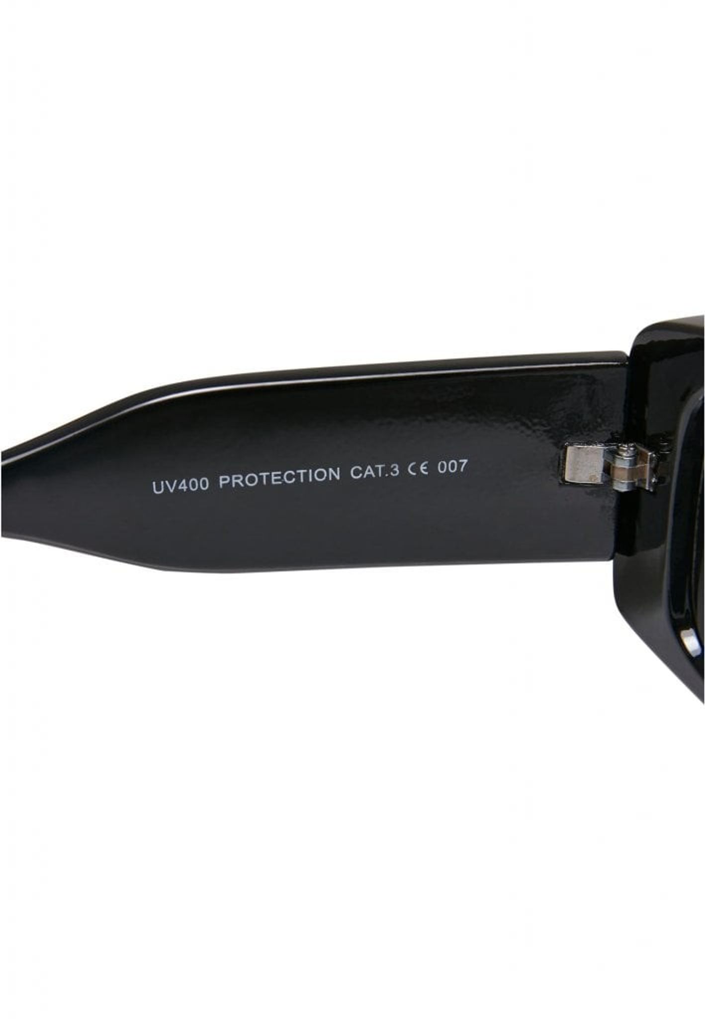 Ett par solglasögon från Urban Classics. Dessa solglasögon har en bred, runtomgående båge med extra breda, raka skalmar, vilket ger dem en elegant och edgy look. De tonade glasen har en rektangulär form, vilket ger en elegant och modern estetik.