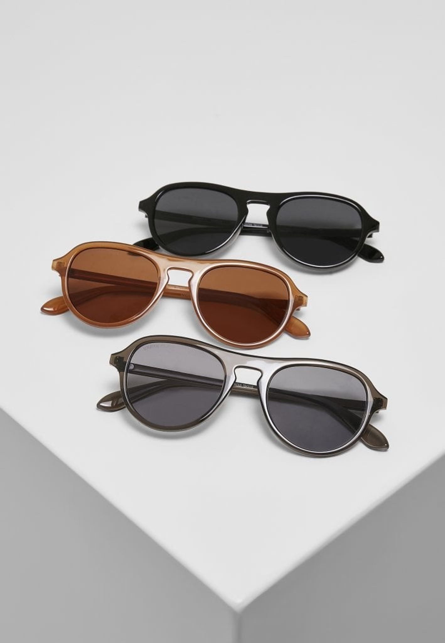 I paketet finns tre glasögon i tre olika färger, brun, grå och svart.