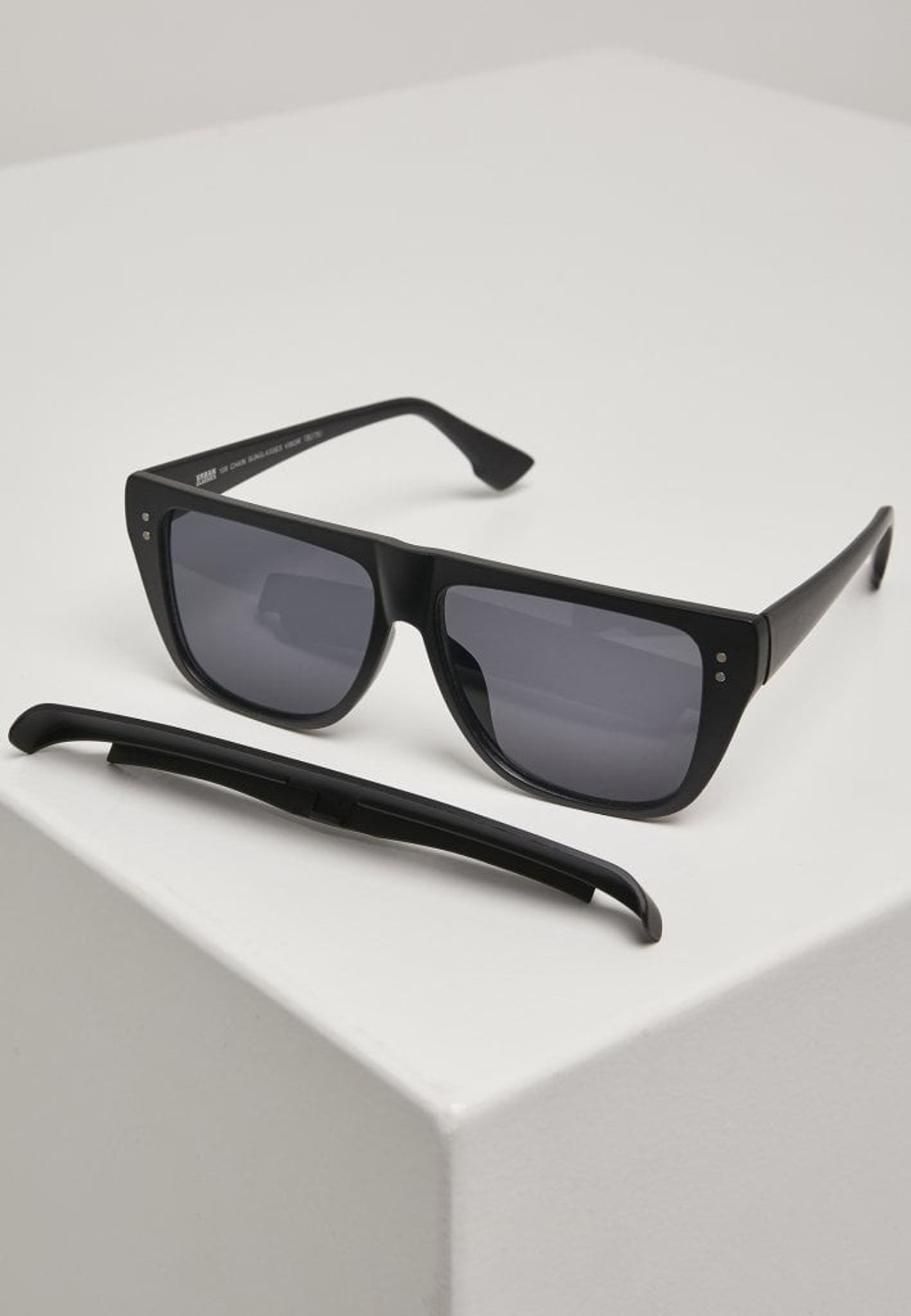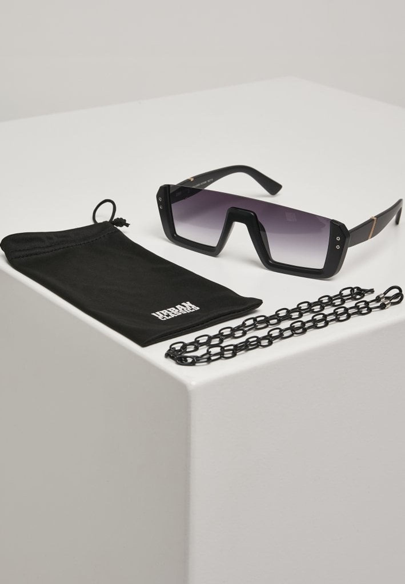 Tillsammans med solglasögonen levereras en kedja (s k senilsnöre) och en påse att förvara glasögonen i.