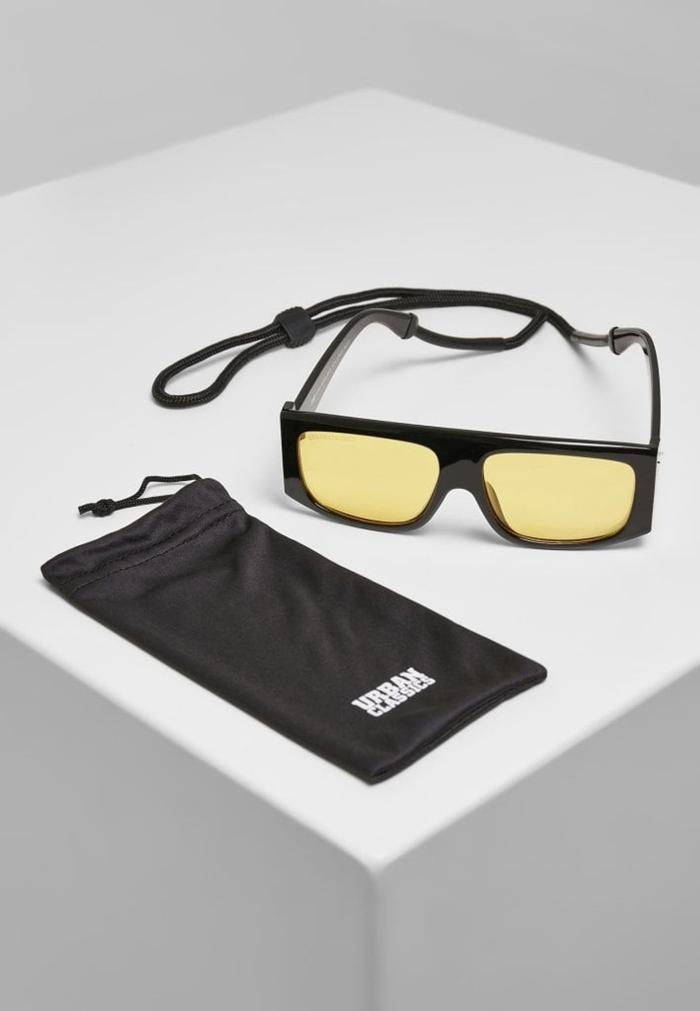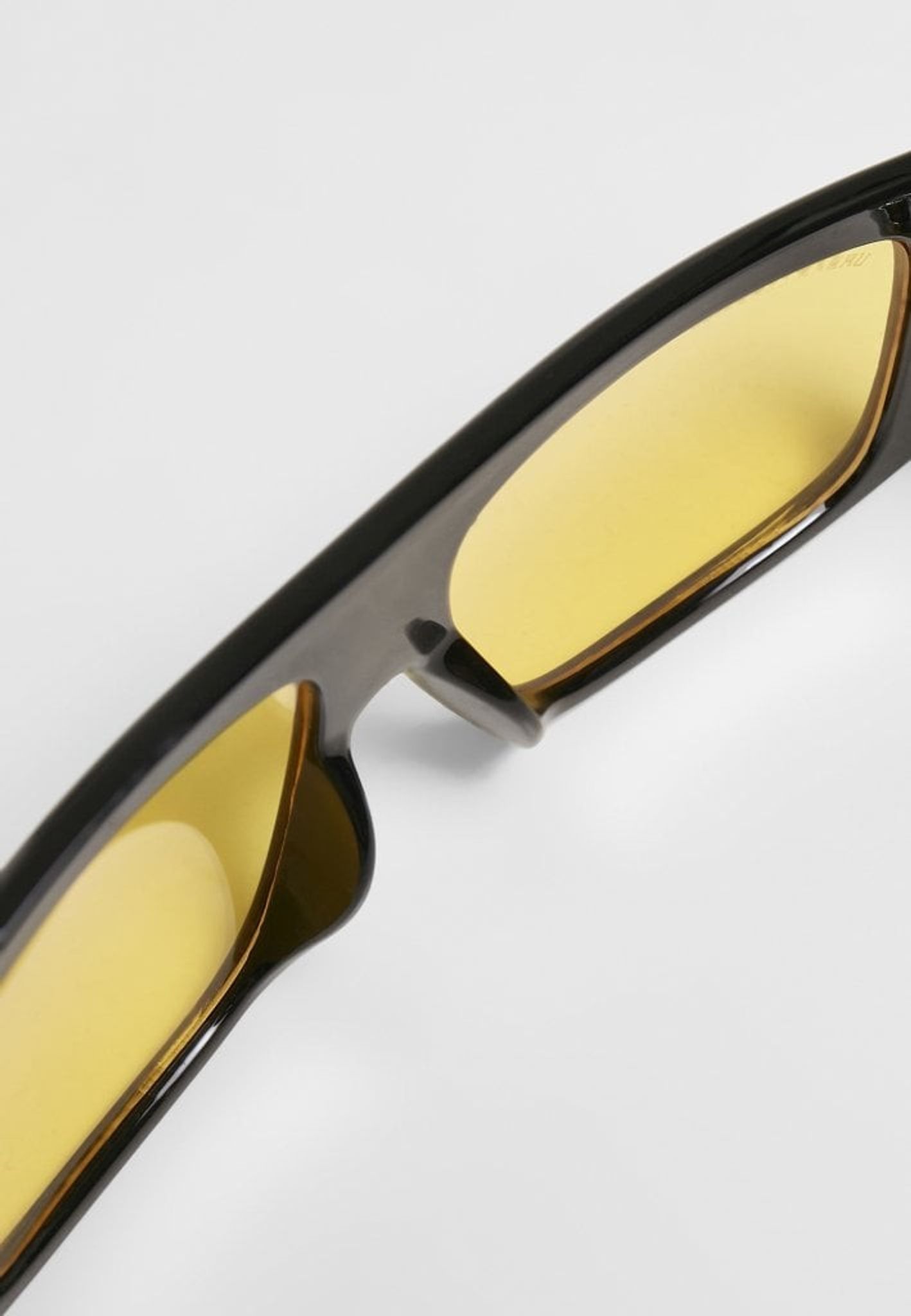 Dessa svarta solglasögonen har gultonade glas.