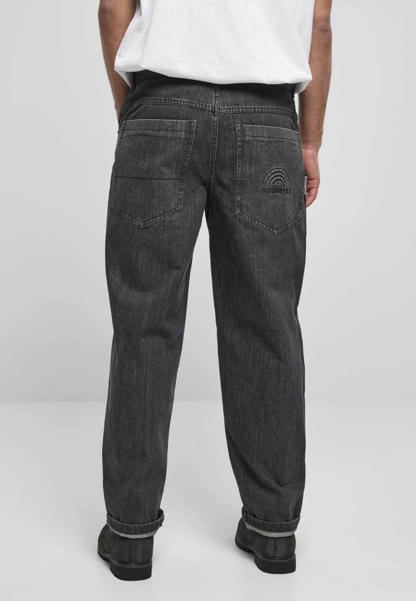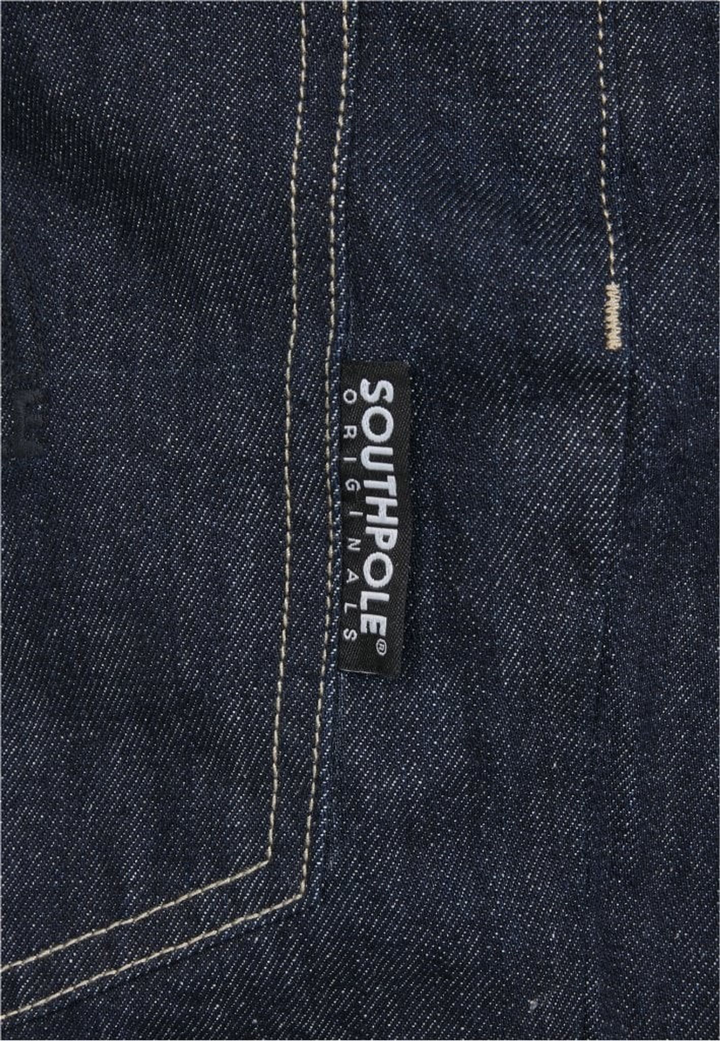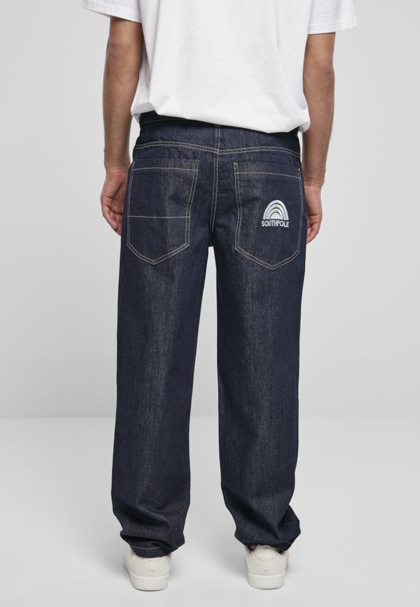 De vida skurna jeansen med raka ben och stora bakfickor, varav en är broderad med den berömda Southpole-logotypen, är ett viktigt streetwear. Denimen för män är utrustad med ett vanligt midjeband med bälteshällor och två sidfickor. Materialet är pålitlig denimbomull.