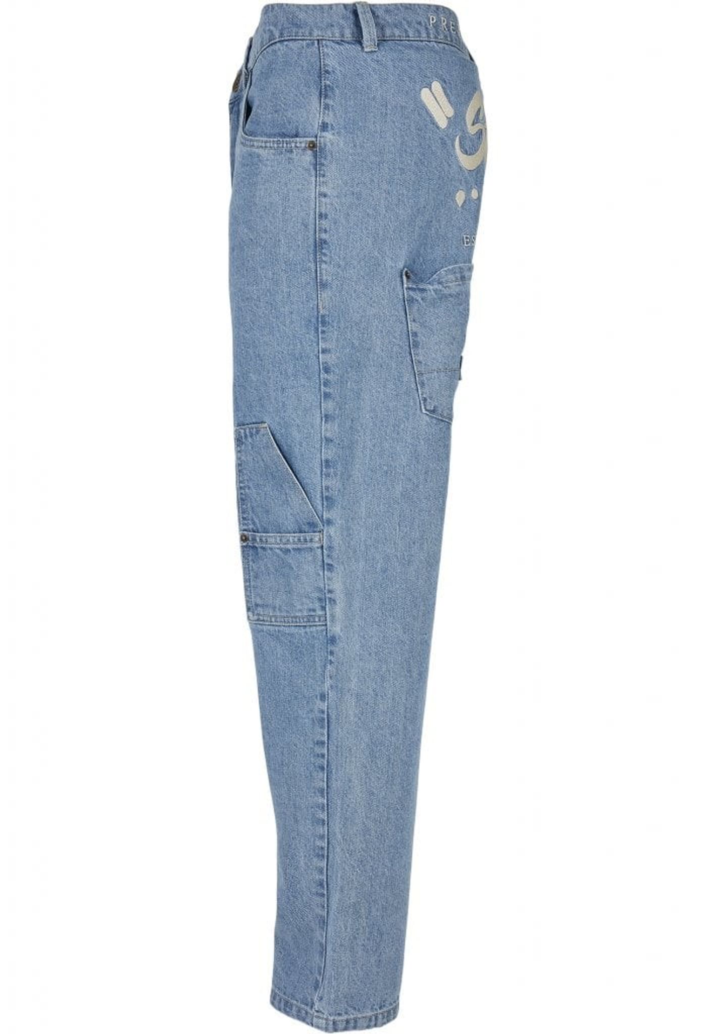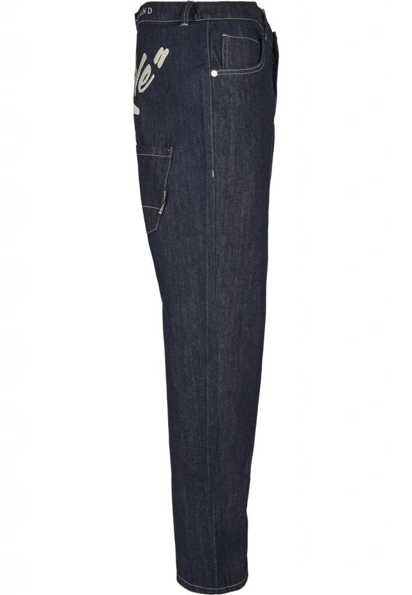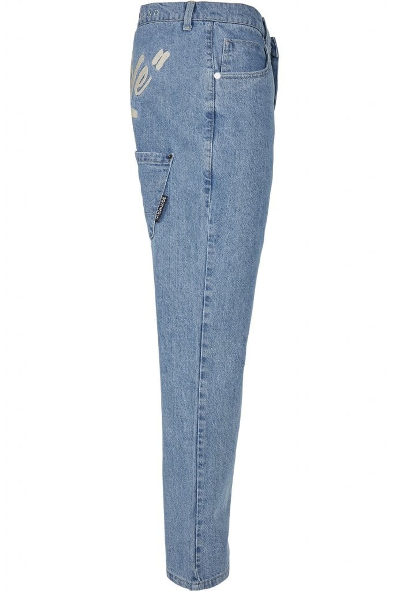 Ett par loosefit jeans som är lite utöver det vanliga med sidoficka och tryckt logga över rumpan.
