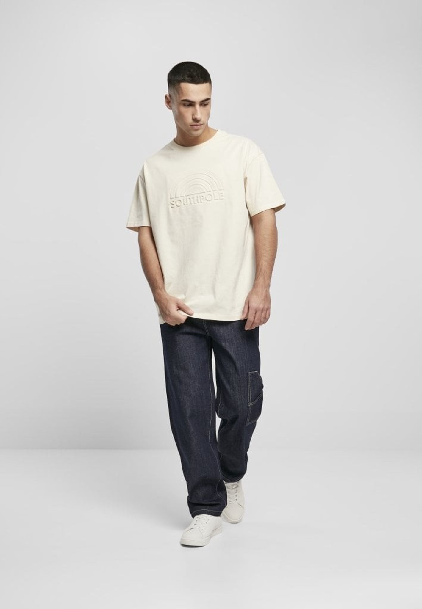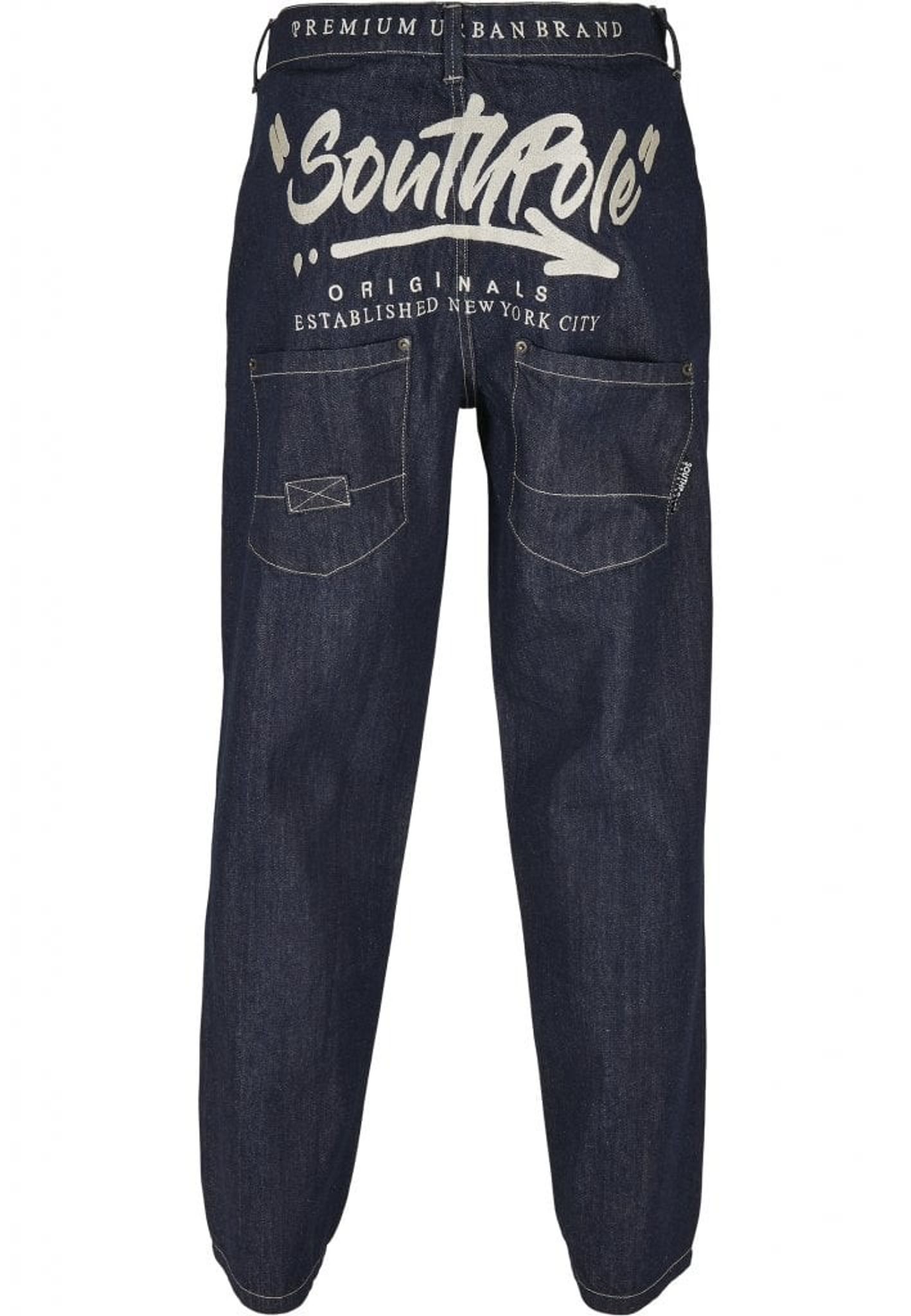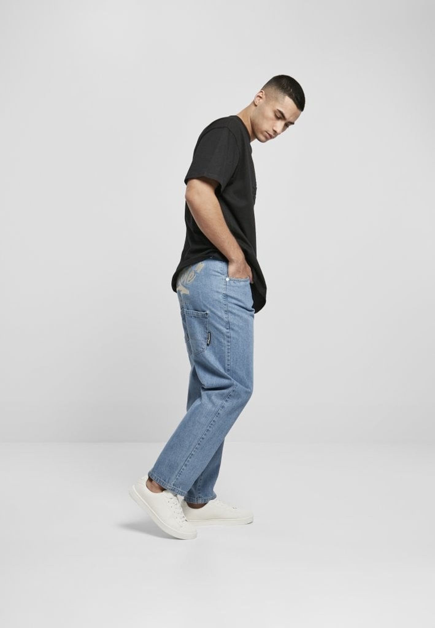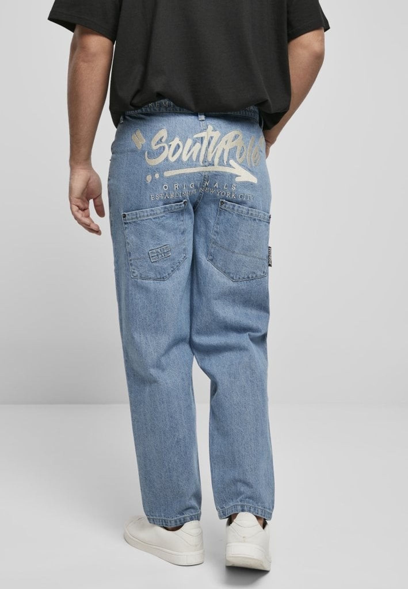 Ett par loosefit jeans som är lite utöver det vanliga med sidoficka och tryckt logga över rumpan.