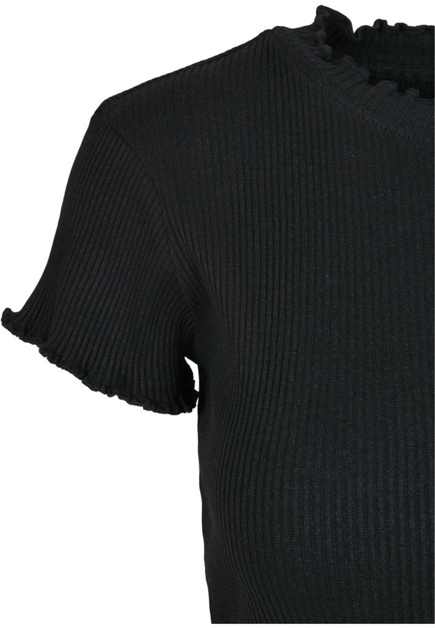Tyget är ribbat bomull och alla kanter är vågiga, armslut, nederkanten och den runda halsen.