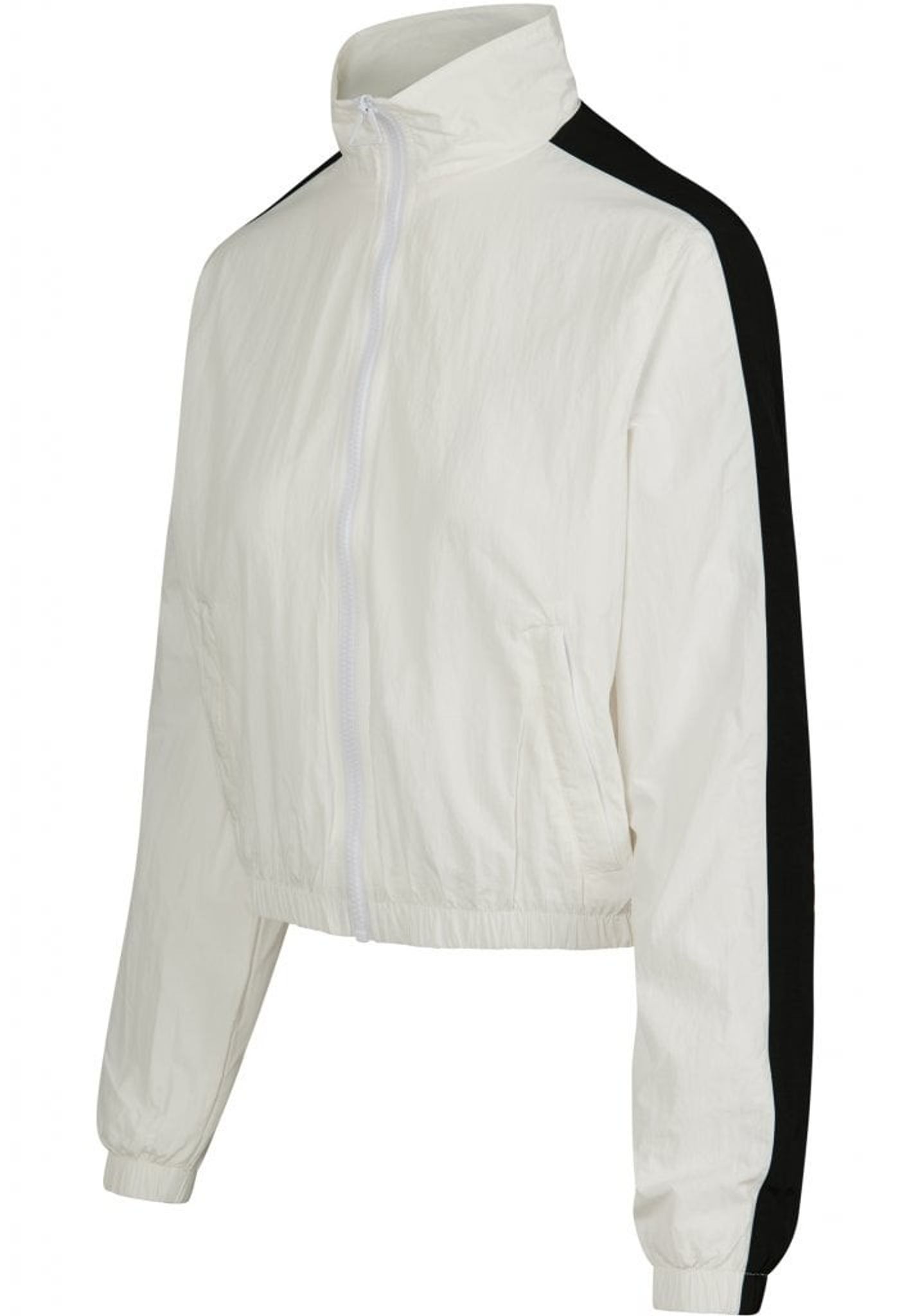 Jackan har en stå upp krage och dragkedjan går upp i halsen. Fram på sidorna finns två fickor med dragkedja.