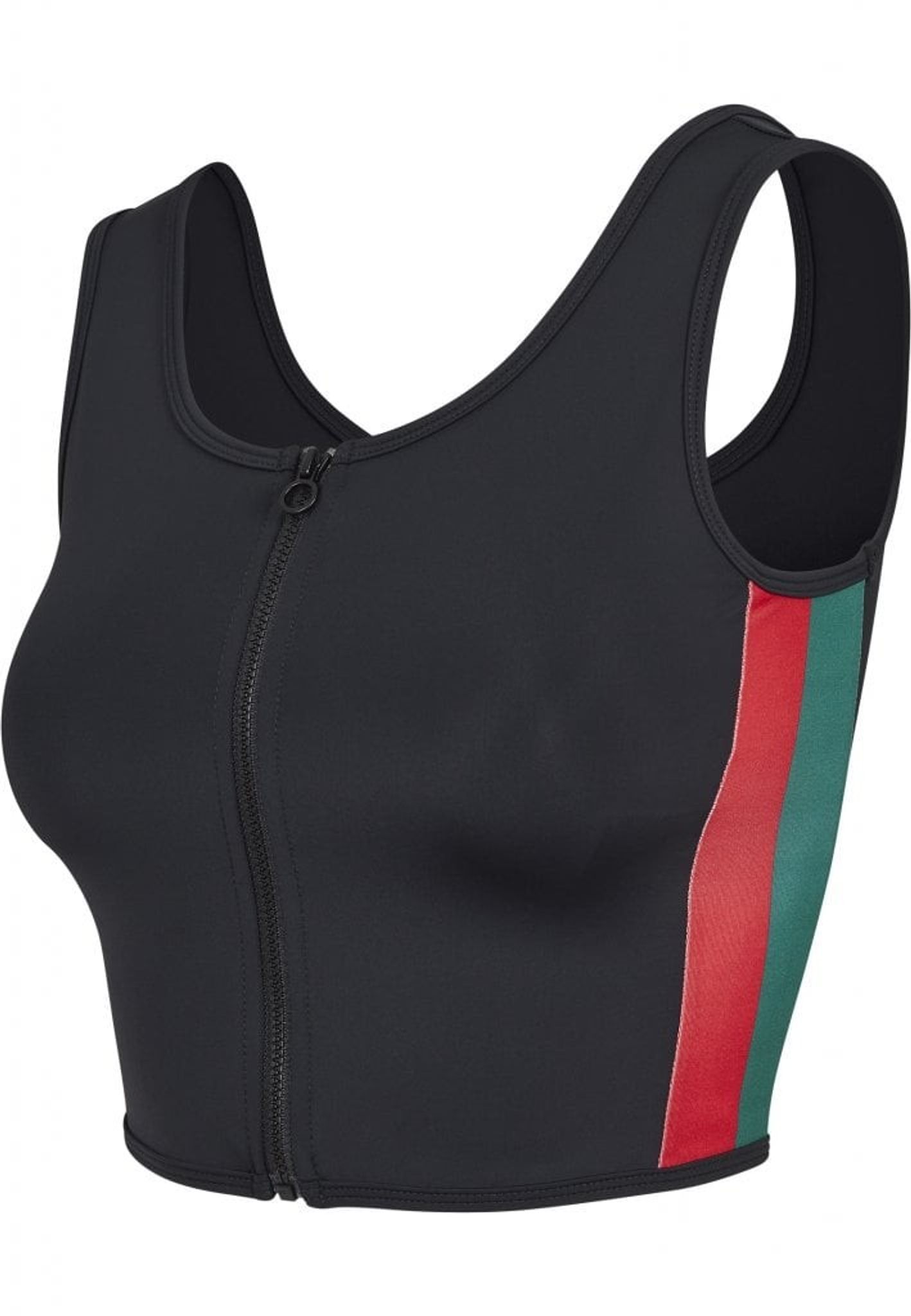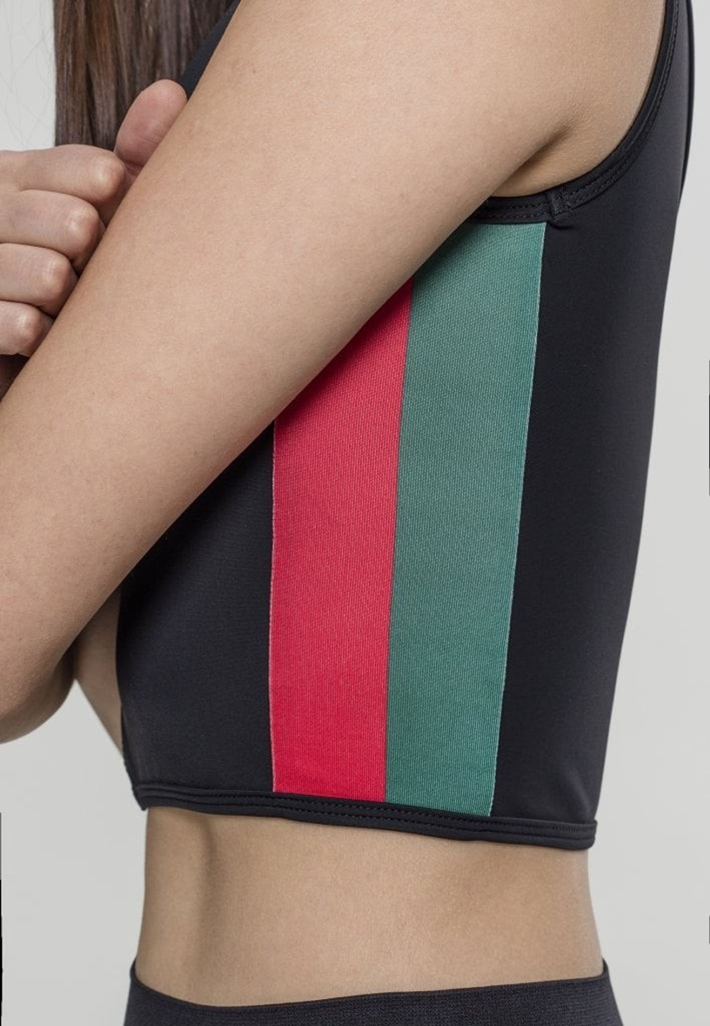 En mycket kort topp som nästan är en bh med kontrastrand i sidan.