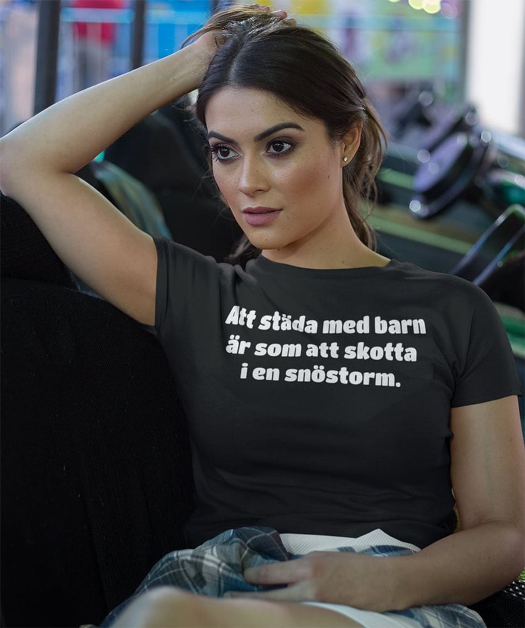 Denna svarta T-shirt är inte bara ett måste för trötta mammor och pappor som behöver ett gott skratt efter en lång dag, utan även för alla som någonsin har upplevt utmaningen med att städa upp efter lekfulla barn. Och vi vet alla hur det känns att skotta snö i en snöstorm, eller hur?