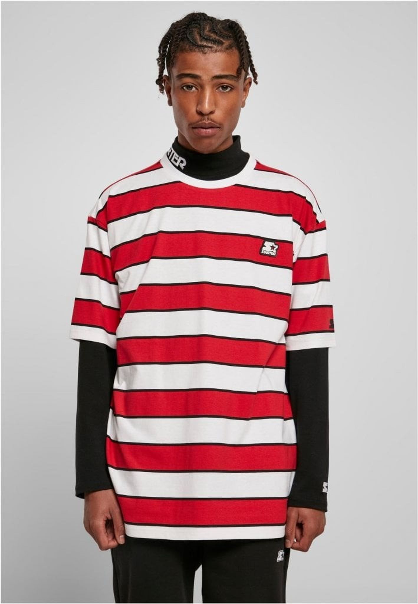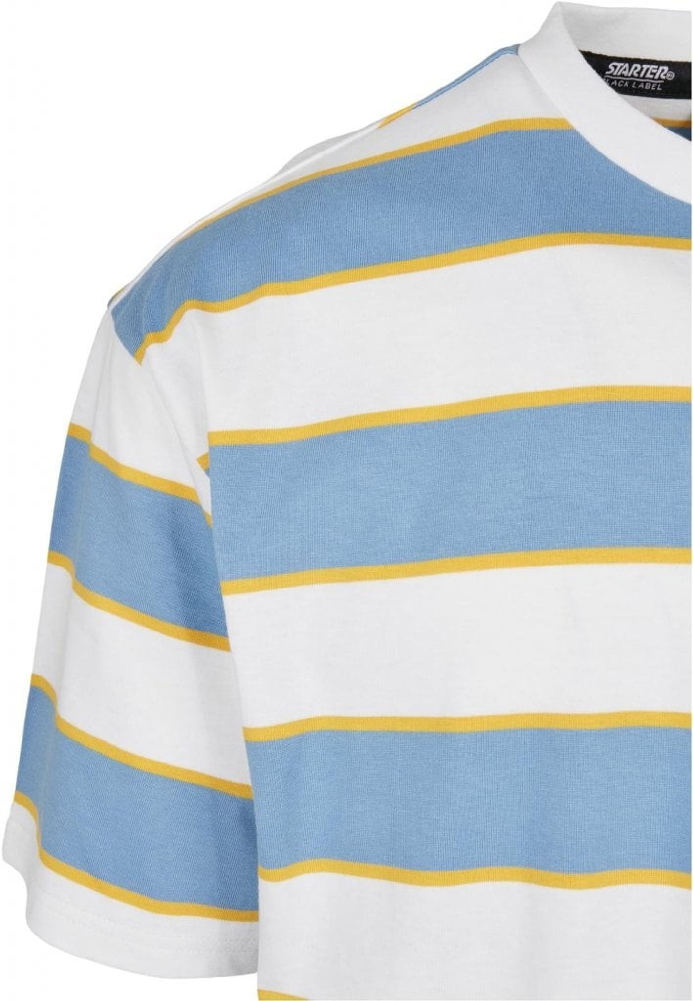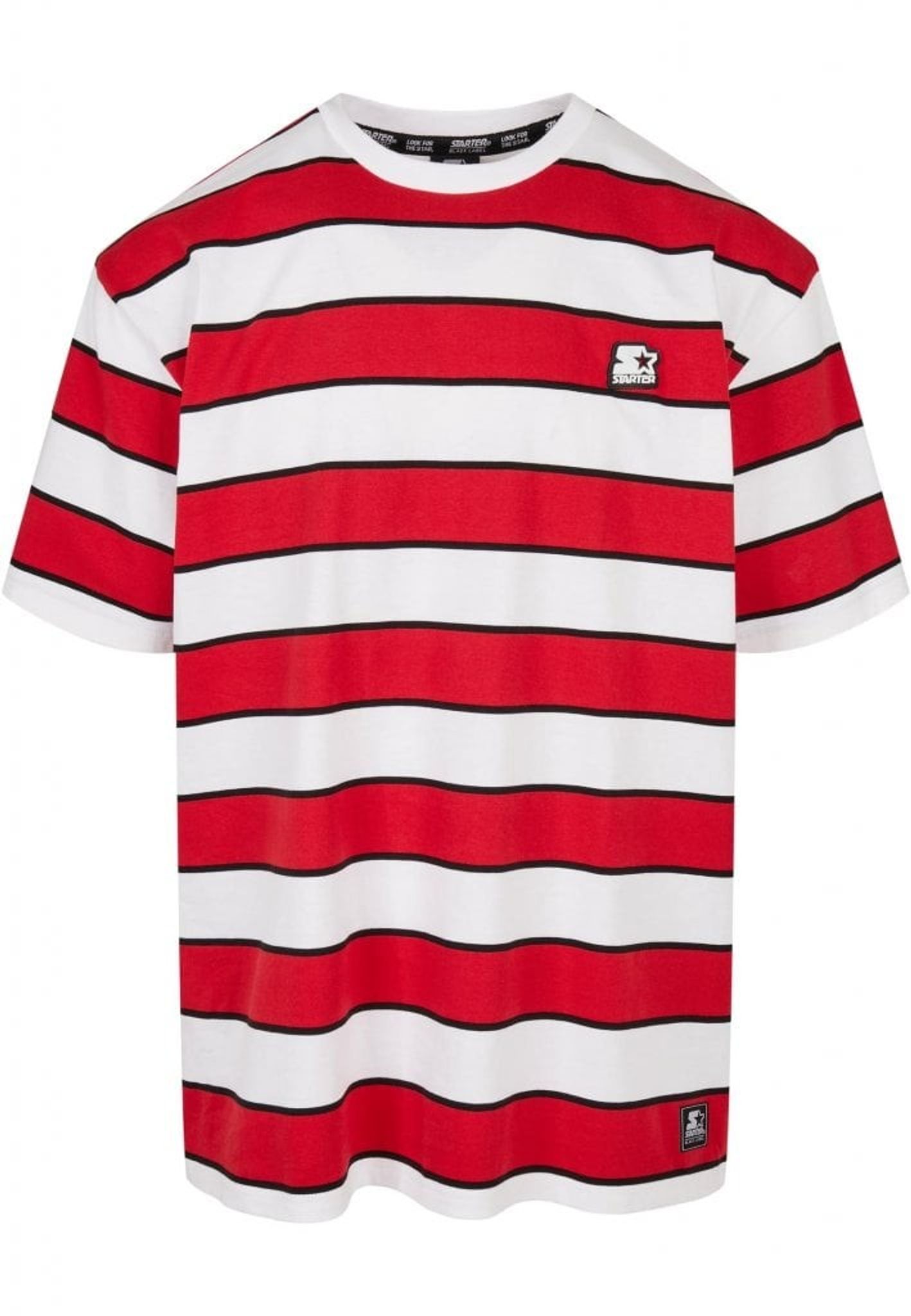 En oversize T-shirt med breda och smala ränder som går om varandra. T-shirten är försedd med en Starter-logotyp i grummi fastsydd på bröstet samt en logotyp broderad på ärmen.