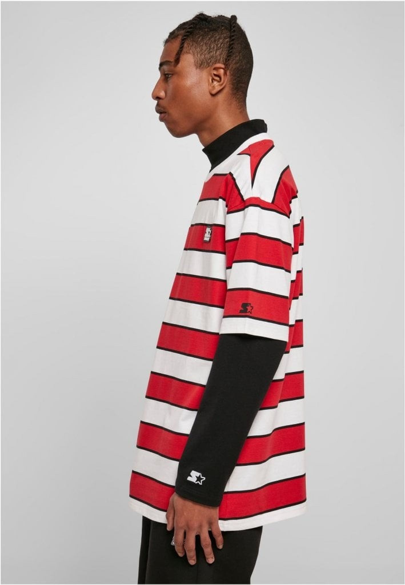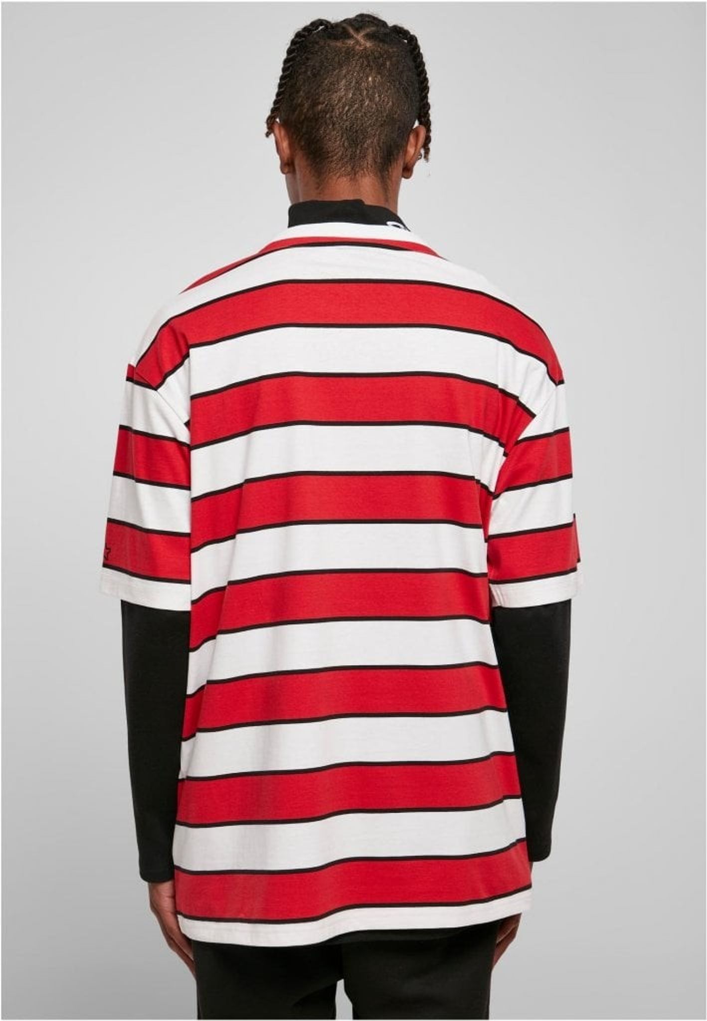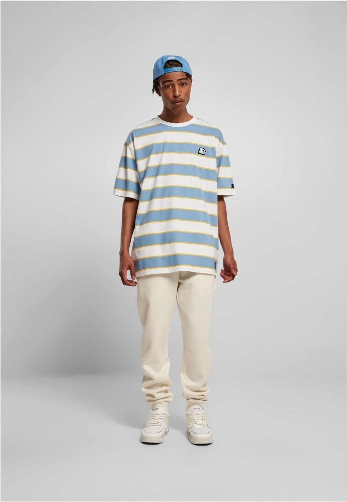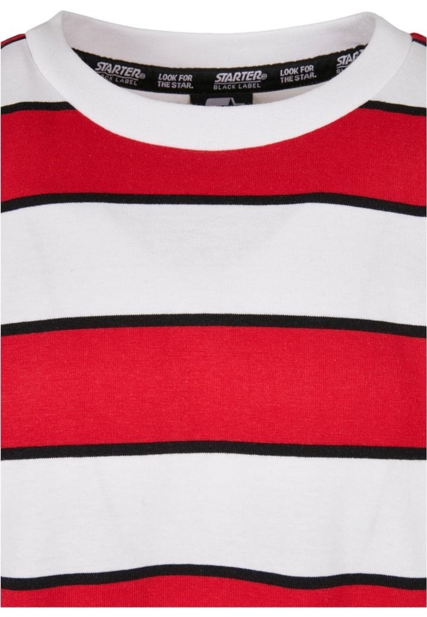 En oversize T-shirt med breda och smala ränder som går om varandra. T-shirten är försedd med en Starter-logotyp i grummi fastsydd på bröstet samt en logotyp broderad på ärmen.