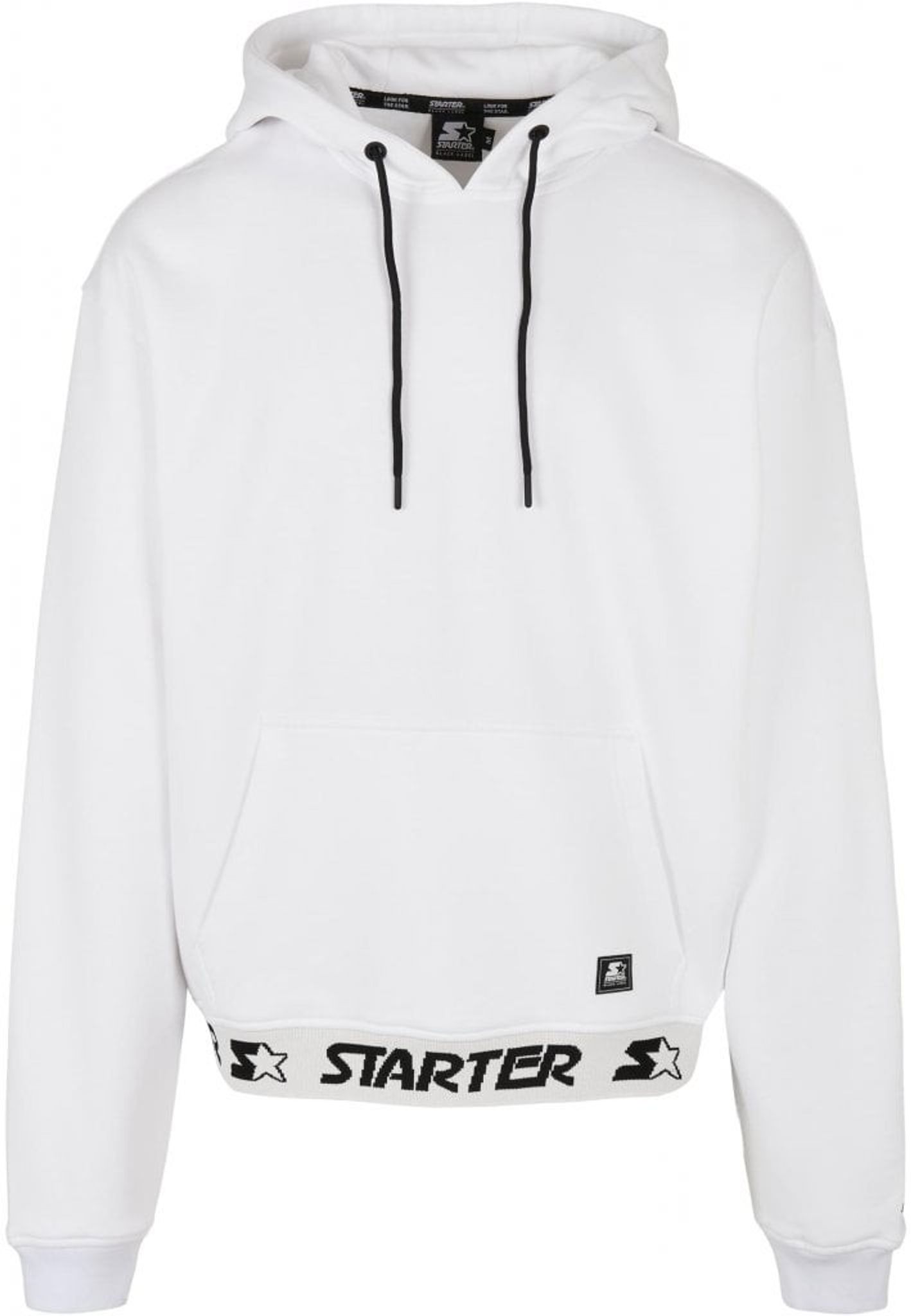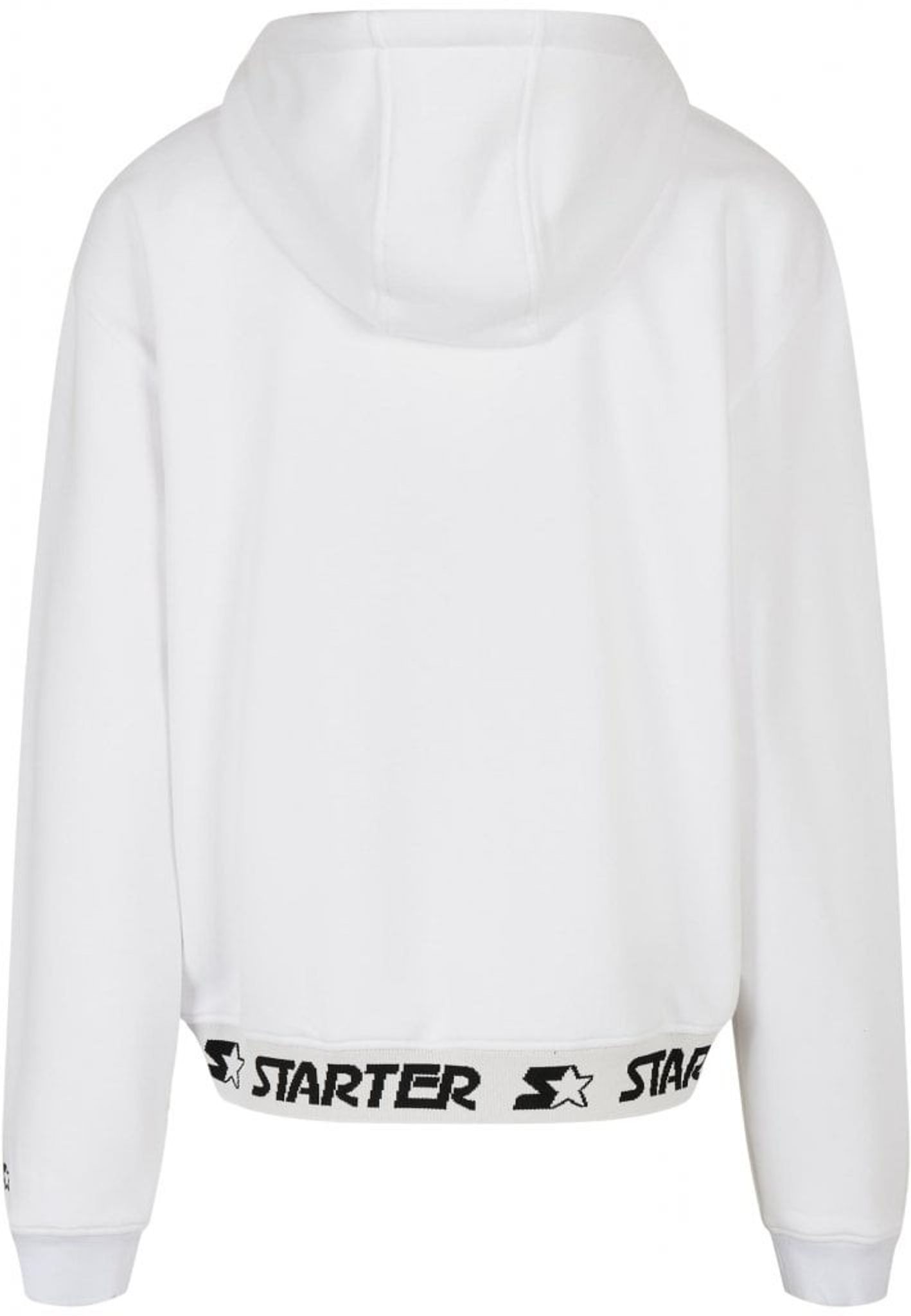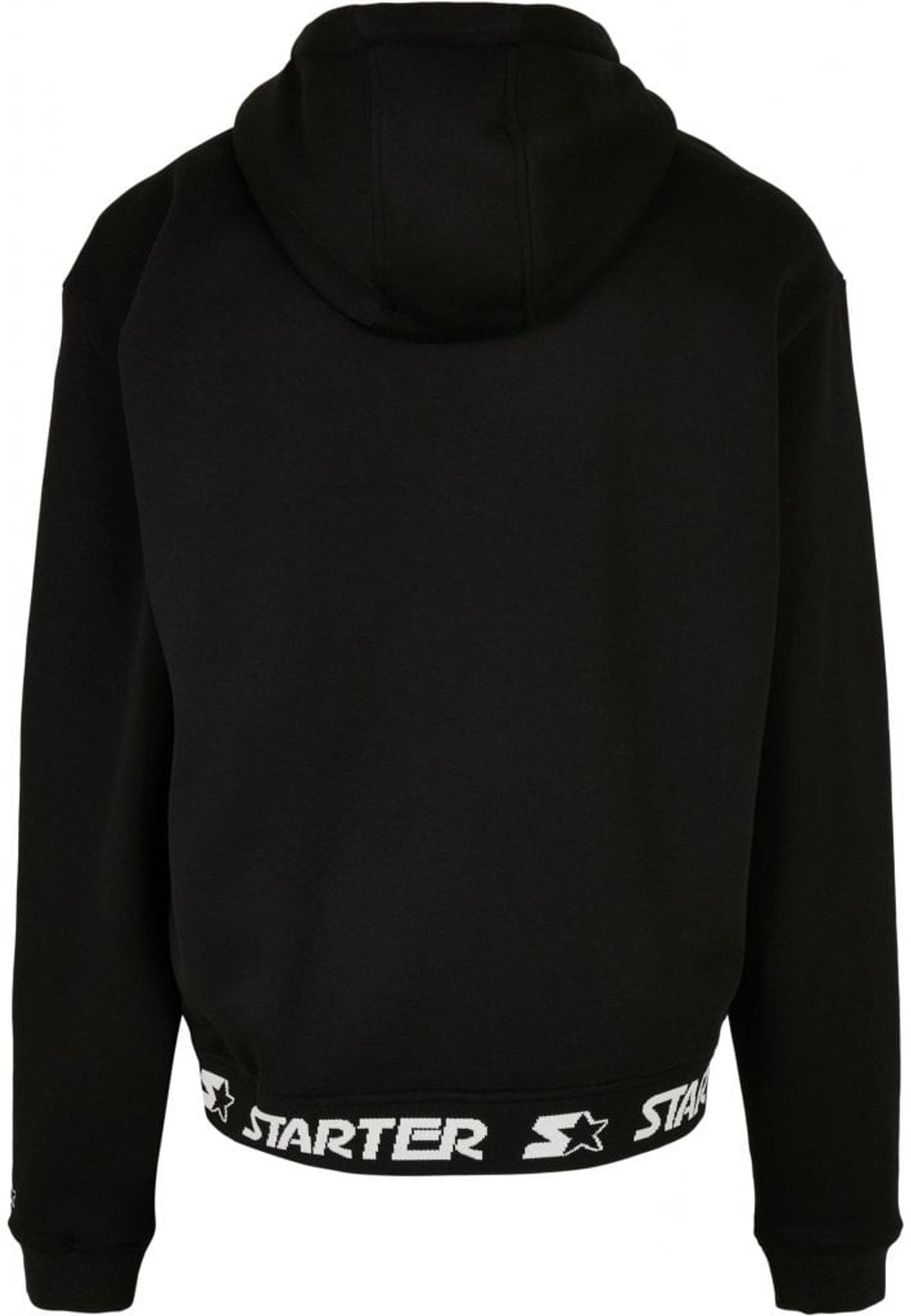 En klassisk modell av hoodie med den lilja detaljen att Starter har låtit trycka sina logotyper runtom på den elastiska mudden i midjan.