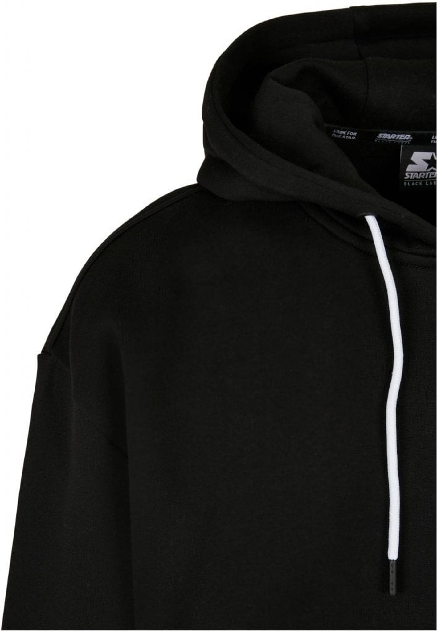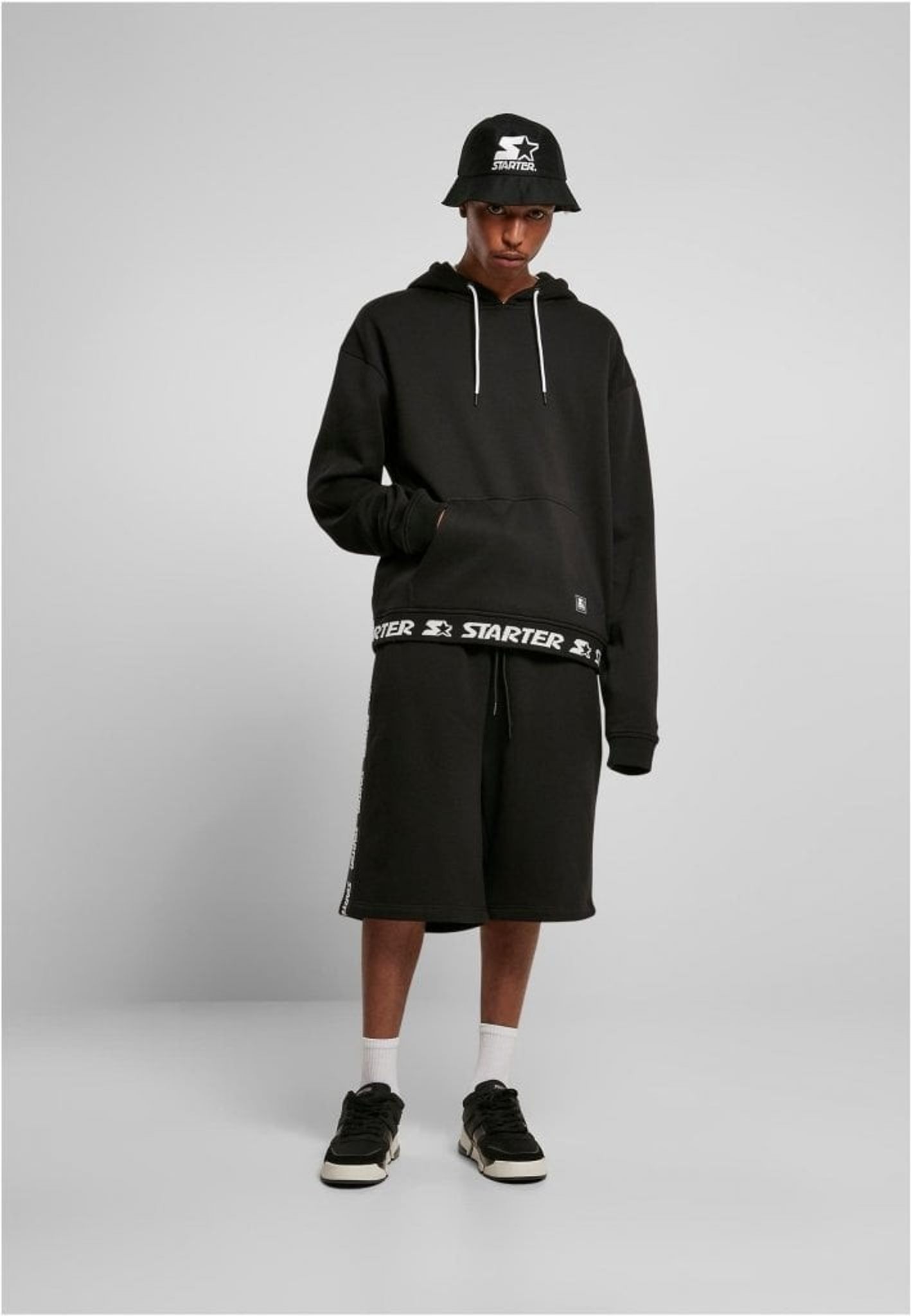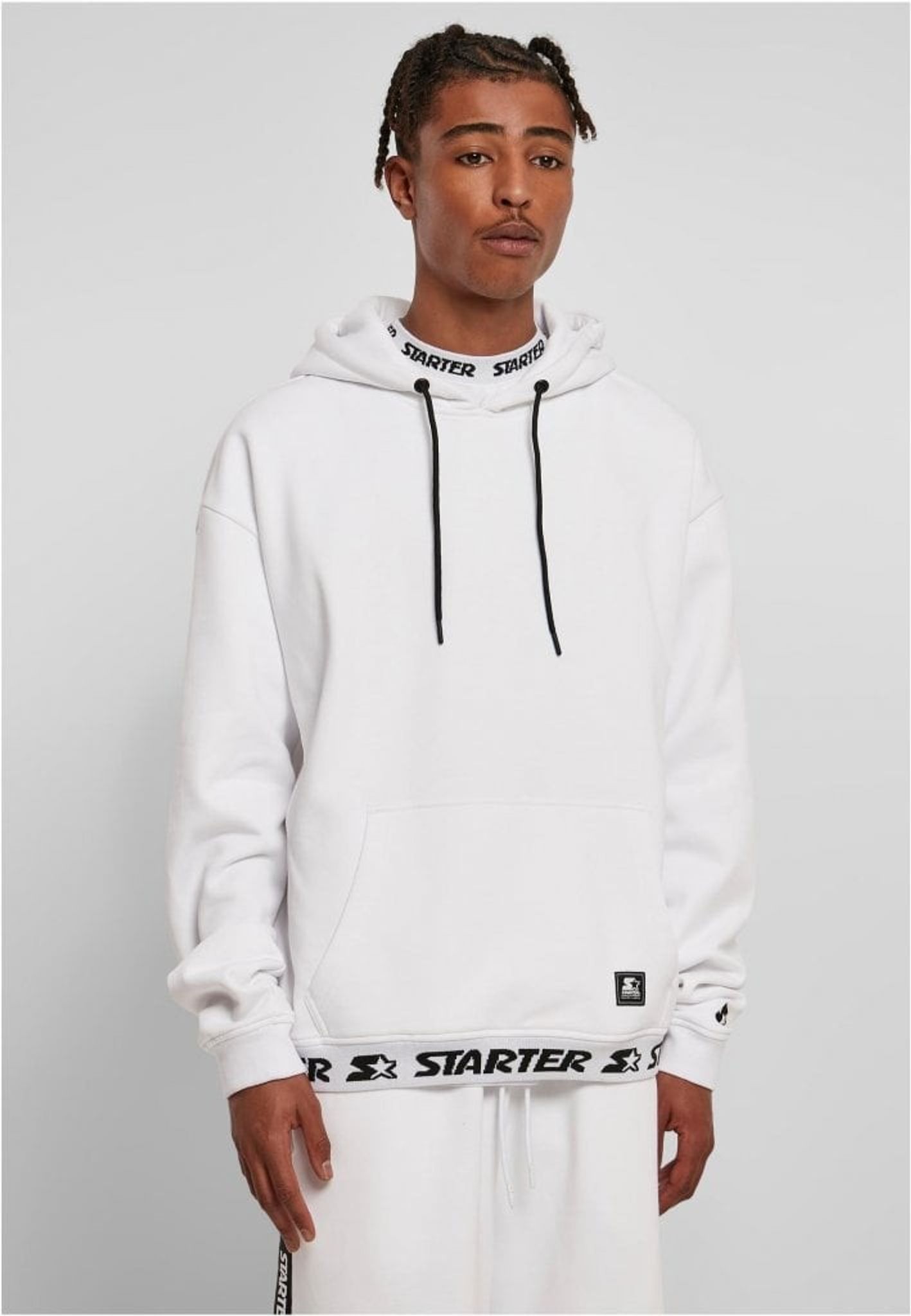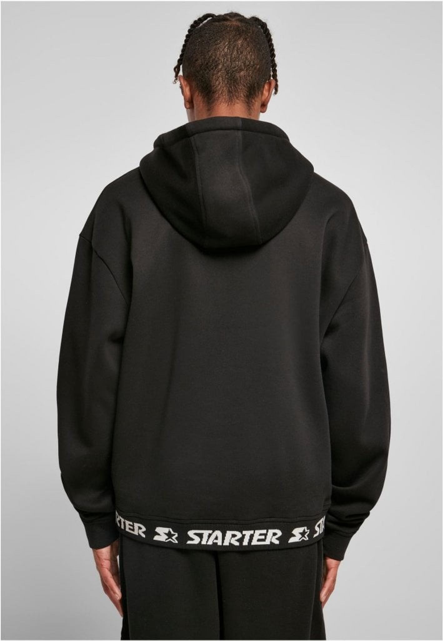 En klassisk modell av hoodie med den lilja detaljen att Starter har låtit trycka sina logotyper runtom på den elastiska mudden i midjan.