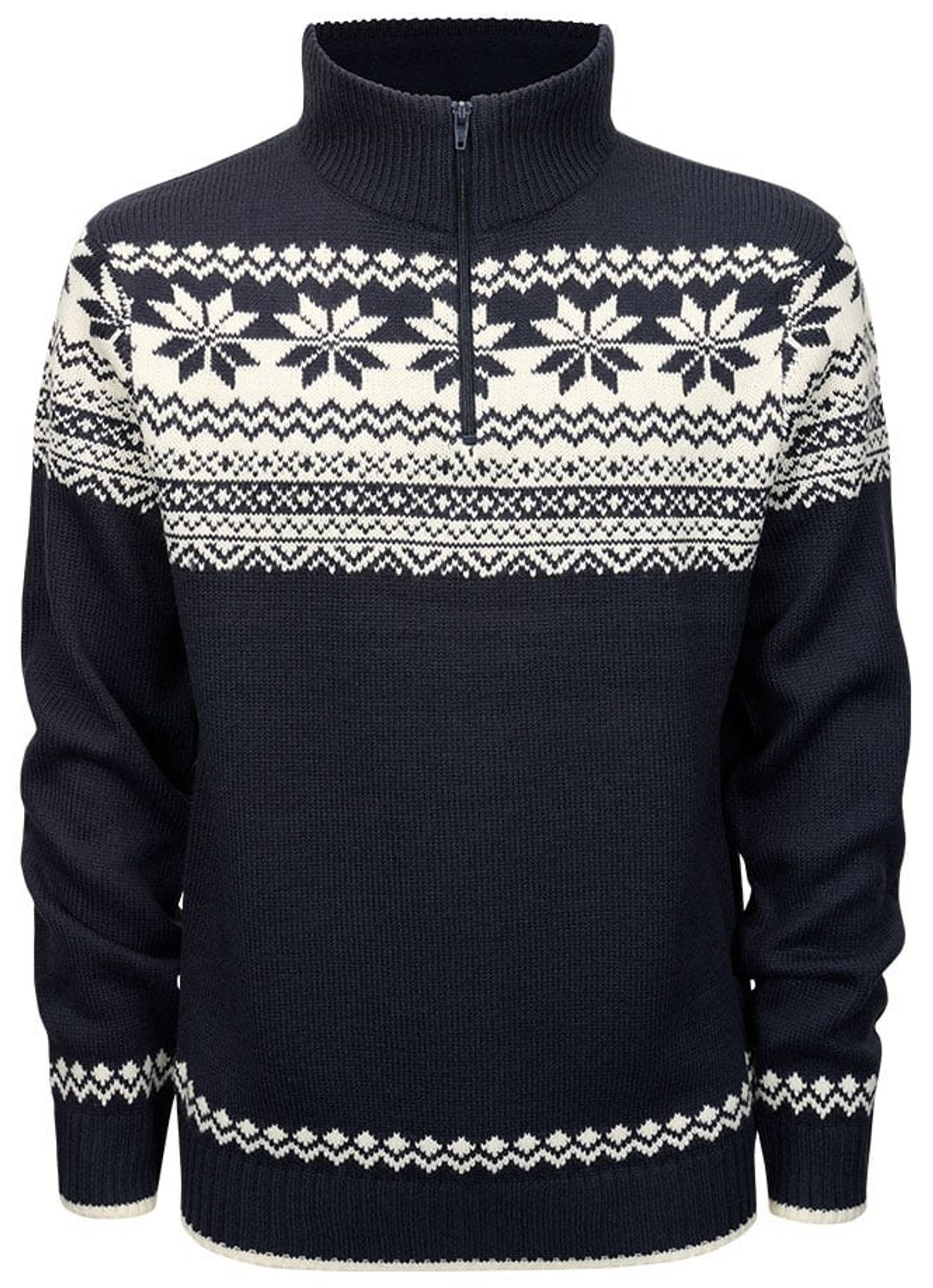 En tidlös stickad pullover som fått inspiration från den norska Lusekoftan och dess mönster. Insidan av kragen är klädd i mjukt och varm fleecetyg.