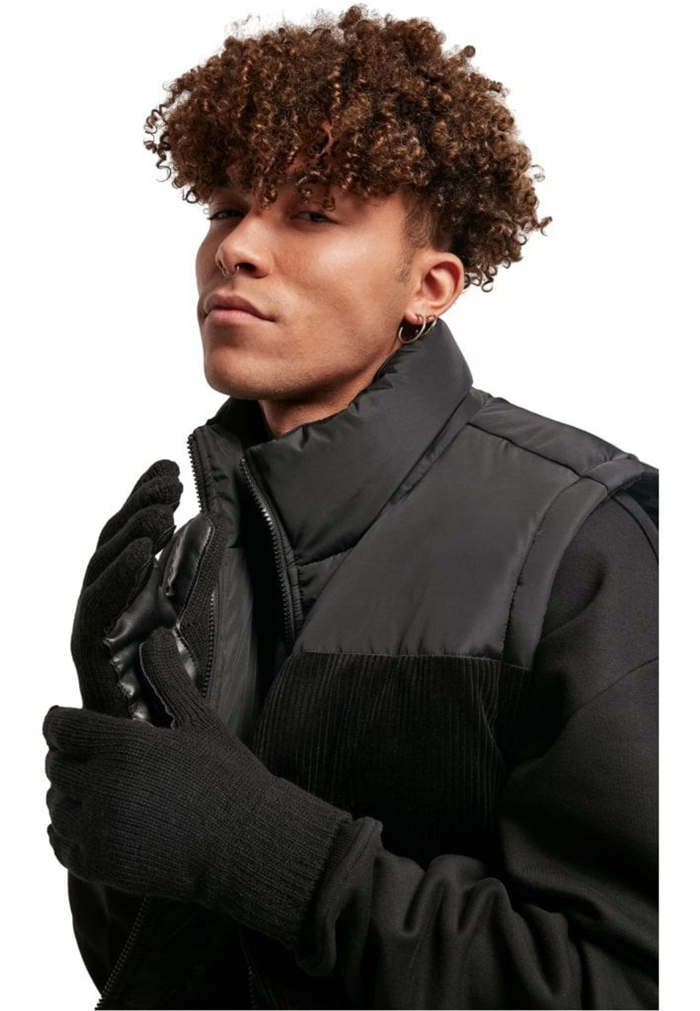Stickade vantar med syntetiskt läder.