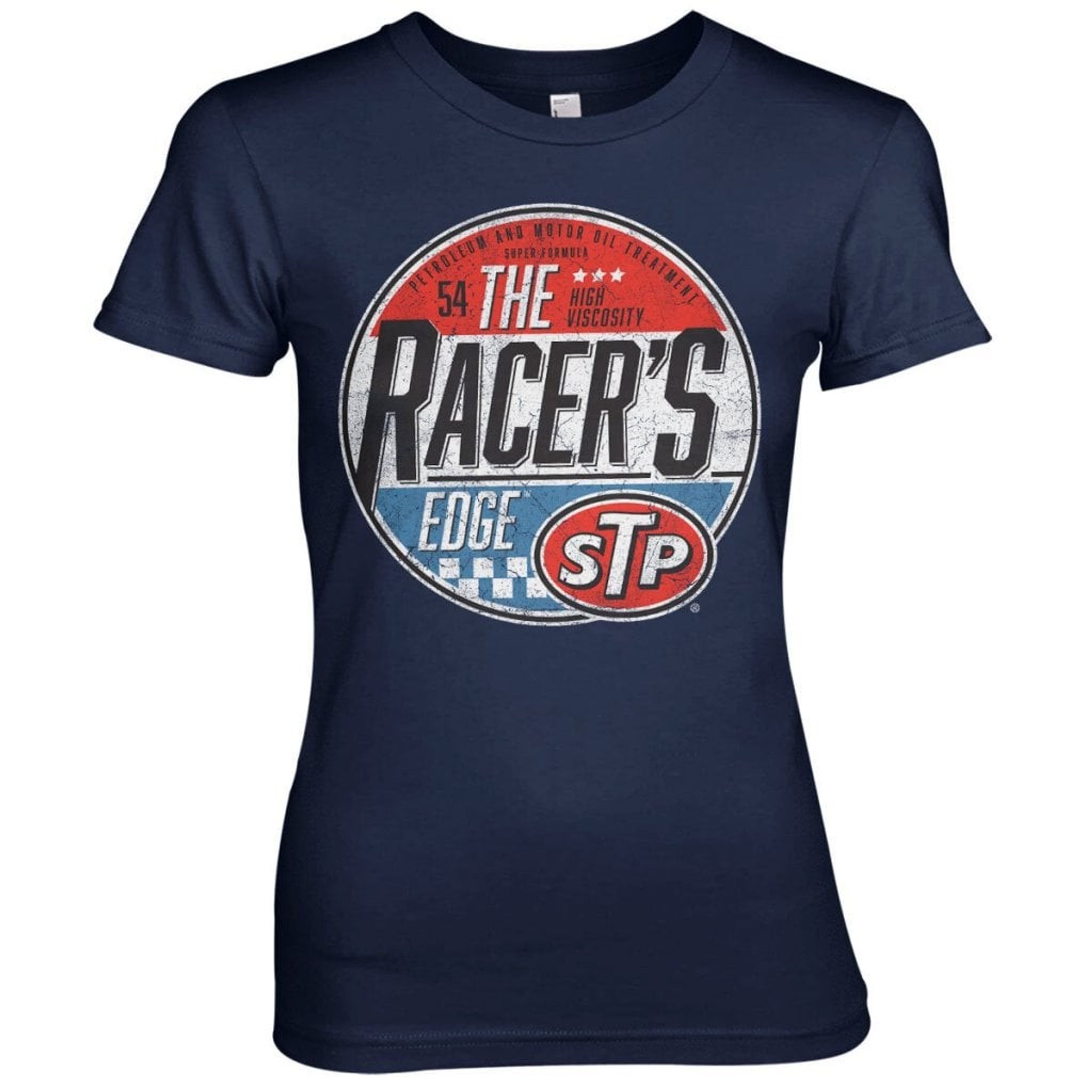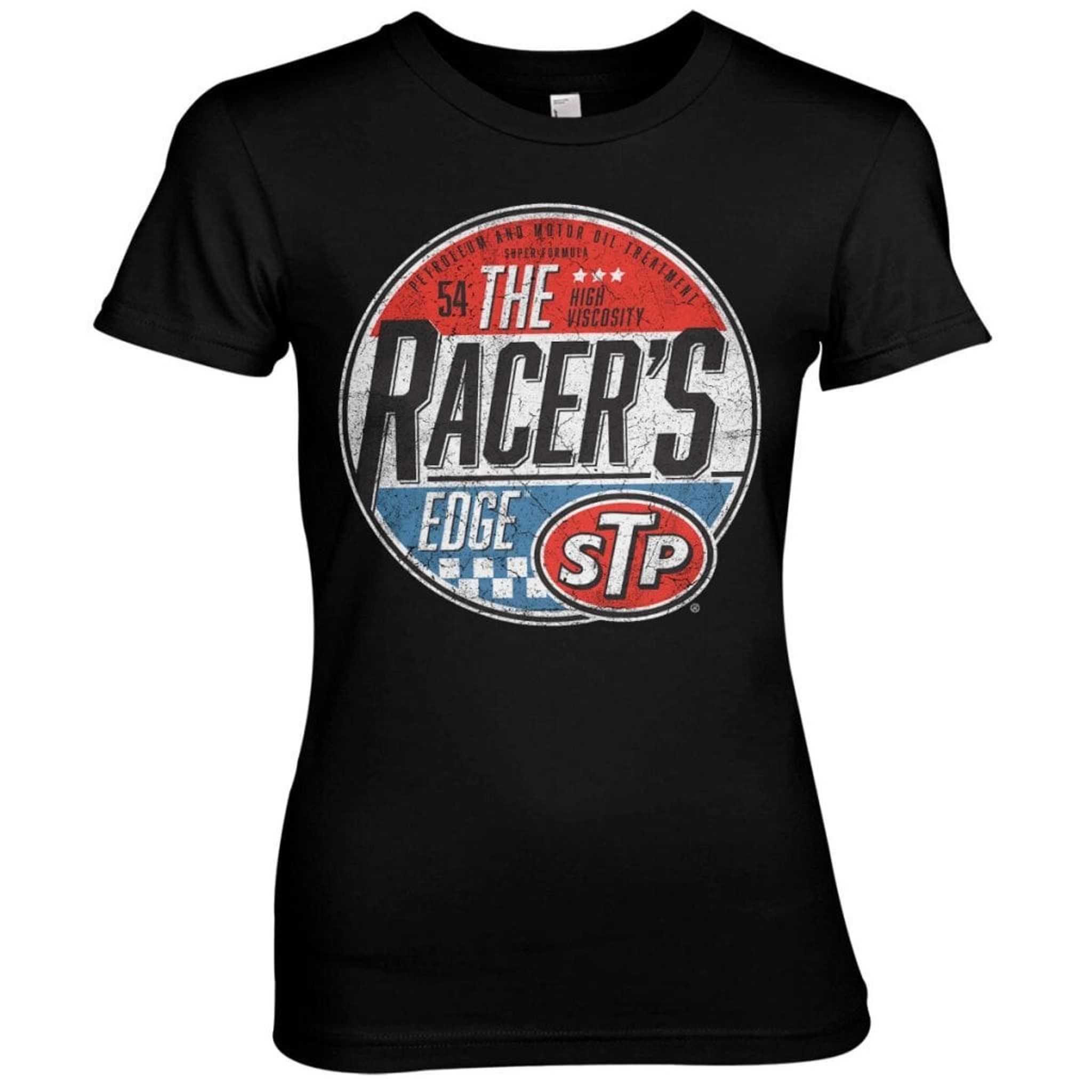 Den här Tjej T-shirten är precis vad en riktig racing-fan behöver i sin garderob! Med en cirkelformad design som hyllar STP varumärket, inklusive den ikoniska logotypen och sloganen "The Racer's Edge", är detta plagget ett måste för alla motorsportentusiaster.