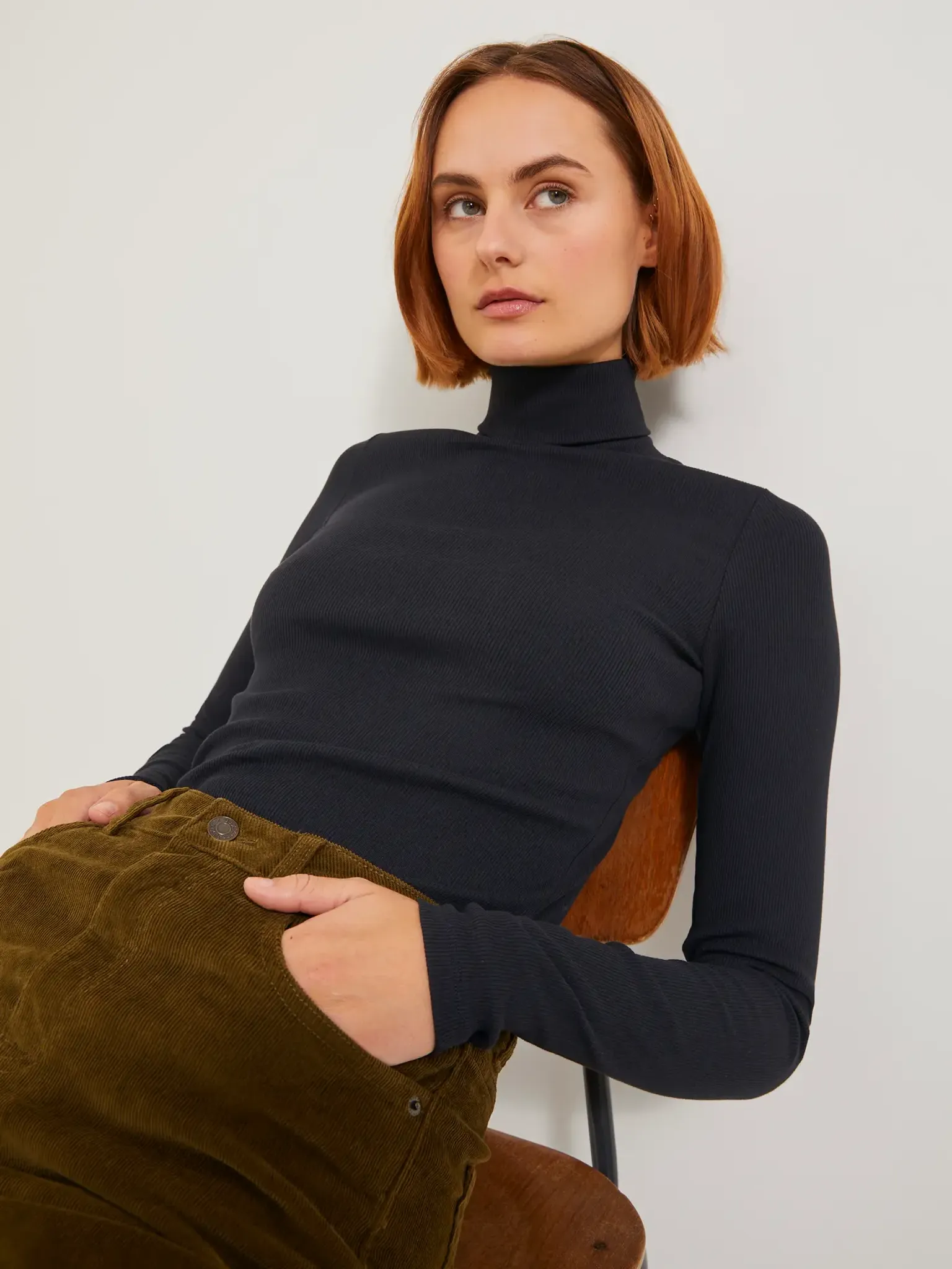 Denna T-shirt har en stilren rullhalsdesign som ger en elegant och modern look. Med långa ärmar passar den utmärkt för både vardag och mer formella tillfällen.