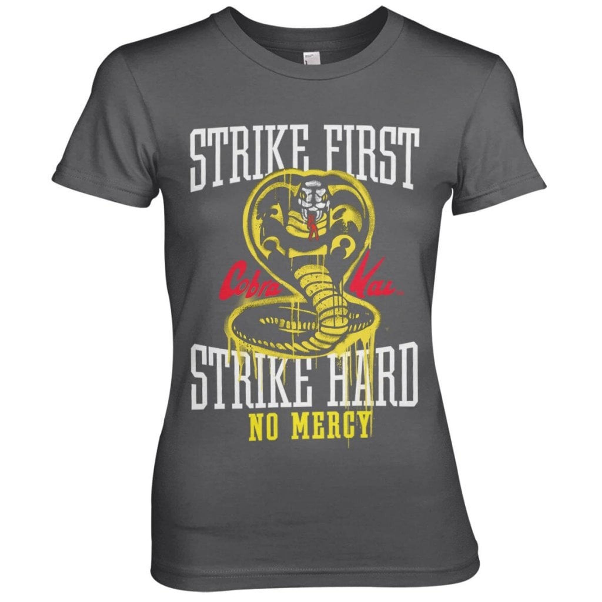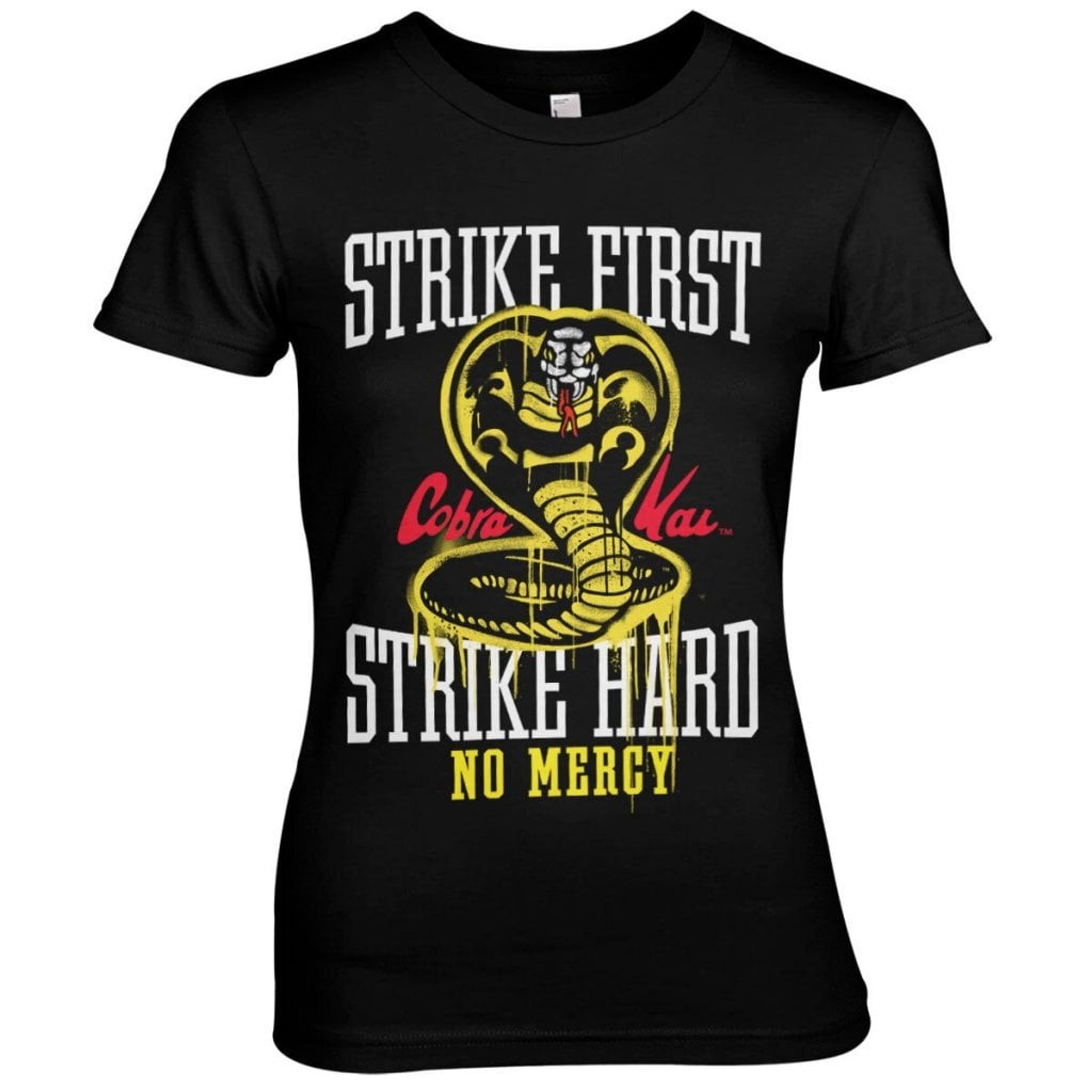 Letar du efter den perfekta t-shirten för att visa upp din inre kämparglöd? Då har vi den perfekta produkten för dig! Den här "Strike First - Strike Hard - No Mercy" girly teeter officiellt licenserad av Cobra Kai - Karate Kid, så du kan vara säker på att du fått kvalitet och autenticitet.