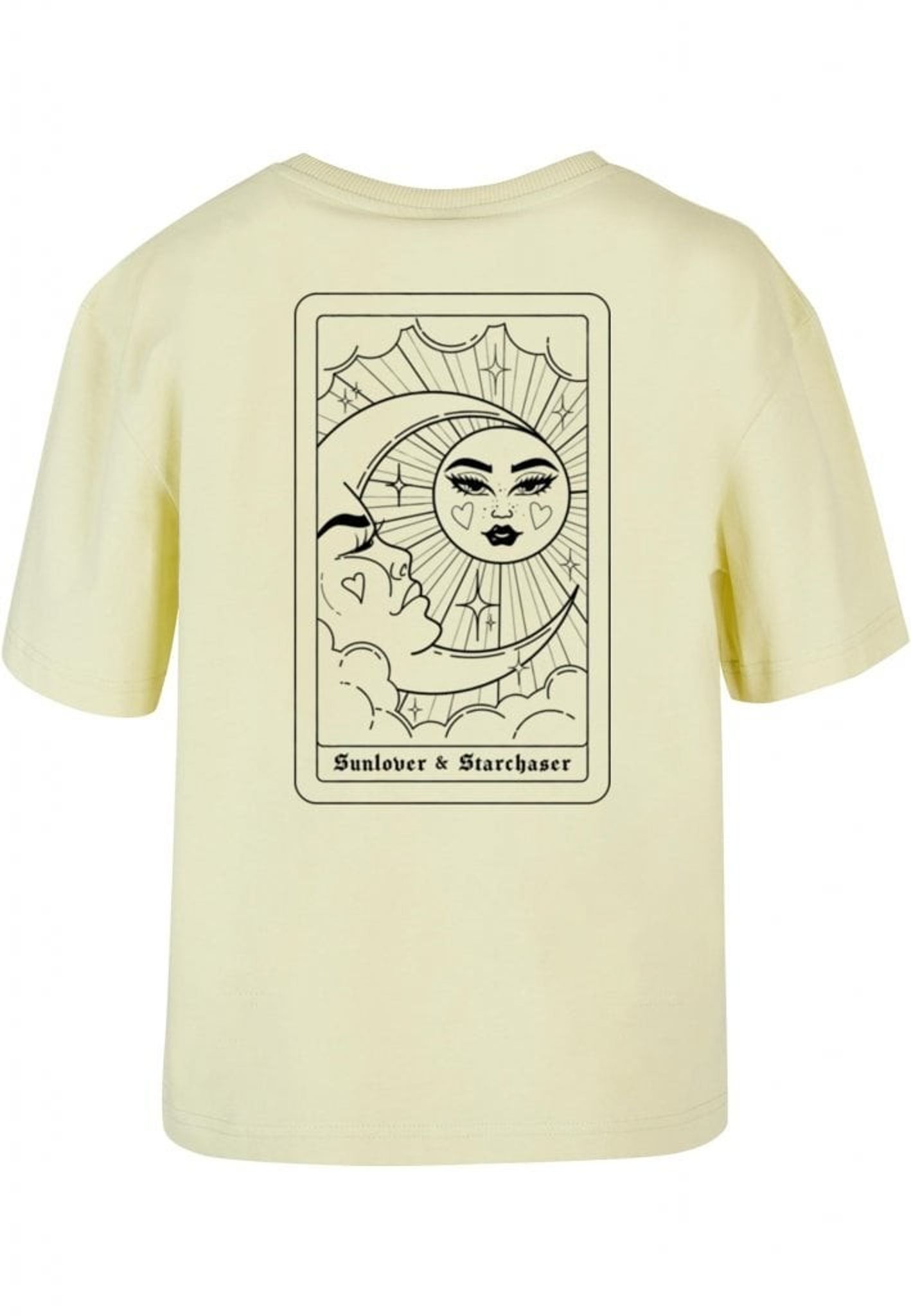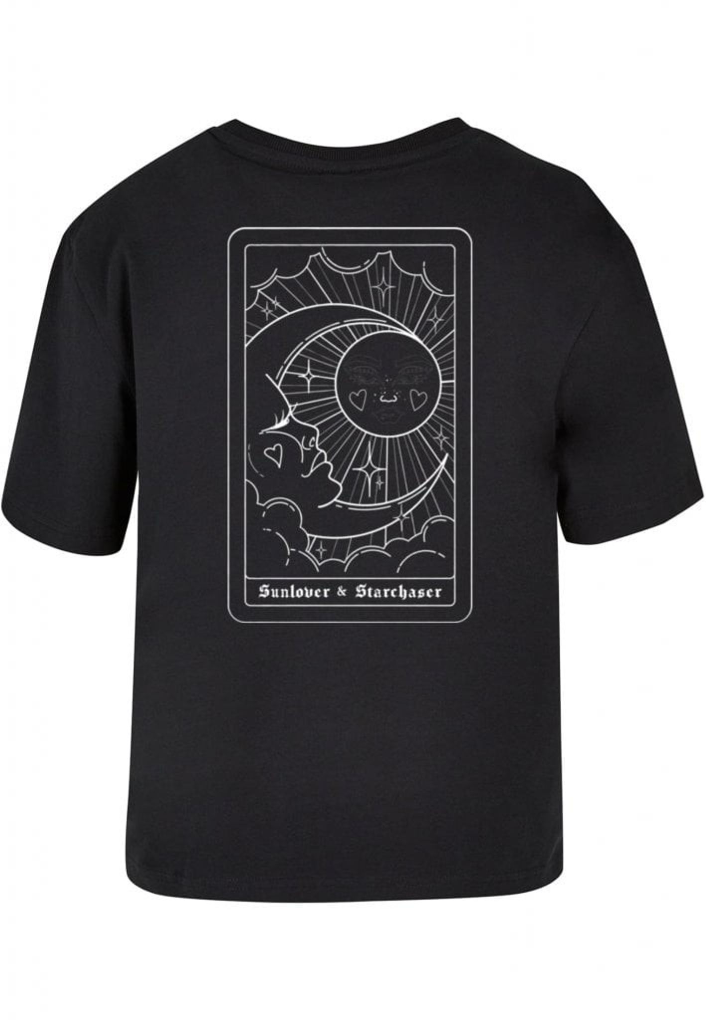 Är du en solälskare eller en stjärnjägare? Denna T-shirt är perfekt för dig! Med en konstnärlig tolkning av solen och månen, inramade som ett tarotkort, kommer du att känna dig som en del av den kosmiska harmonin. Solen och månen har hjärtformade kinder och omges av strålande solstrålar och gnistrande stjärnor. Under motivet står texten "Sunlover & Starchaser", som förstärker den magiska och drömska känslan av designen. En balans mellan dag och natt, ljus och mörker.