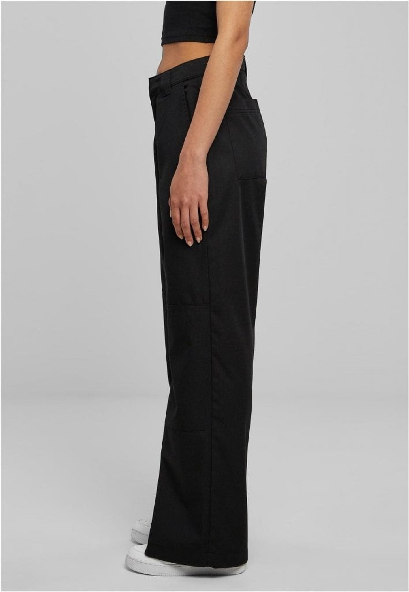 Dessa dambyxor är designade med långa, raka ben och en detaljerad midjeband, som börjar över höften, inkluderar breda bältesöglor och stängs med blixtlås, krok och hak.