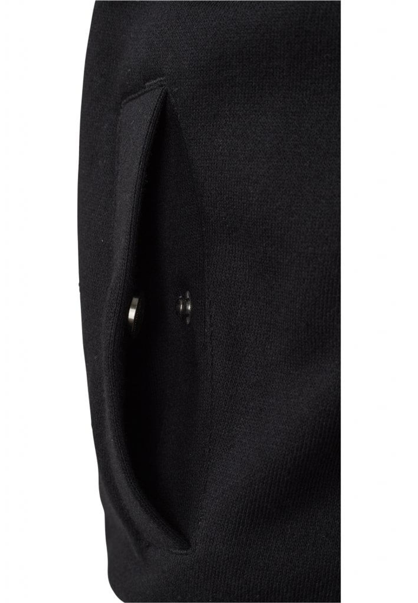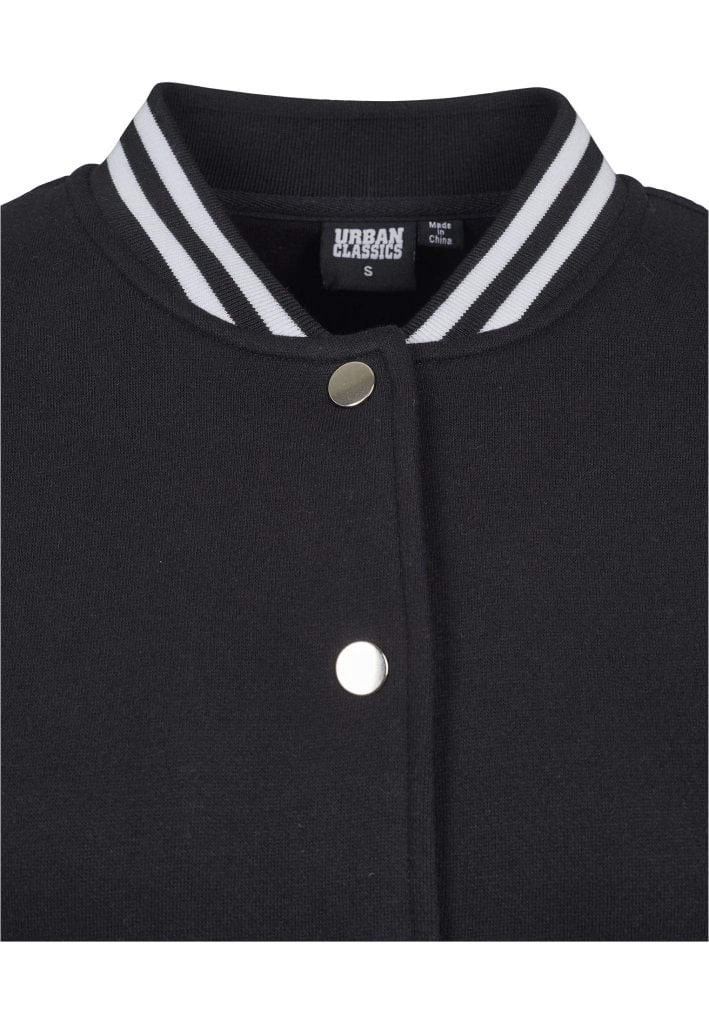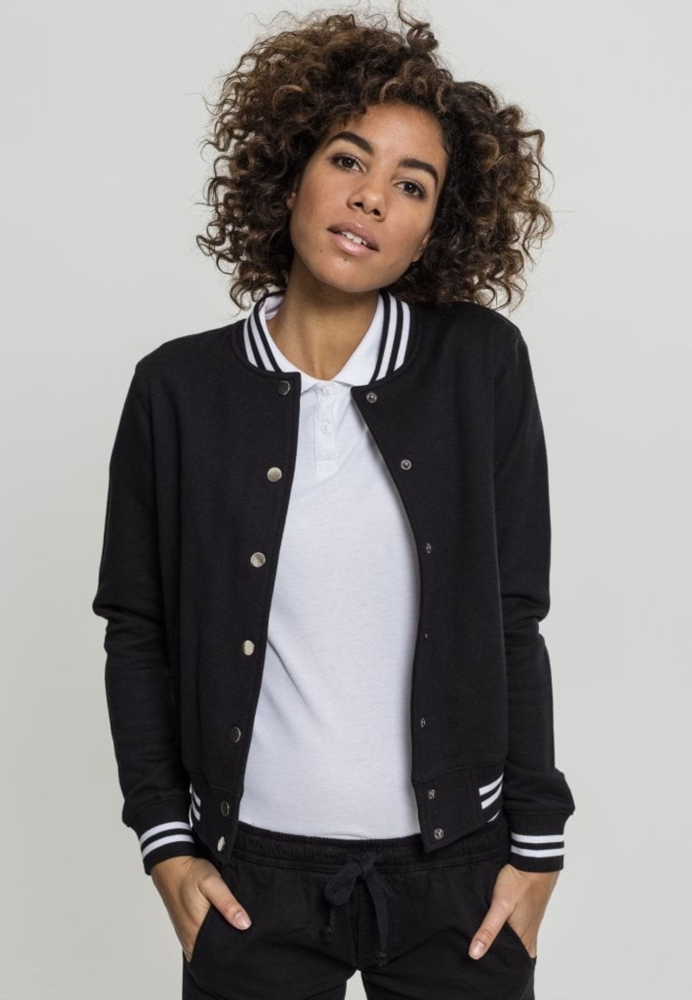 Detta är en jacka i klassisk collegestil med svart och vit randiga muddar.