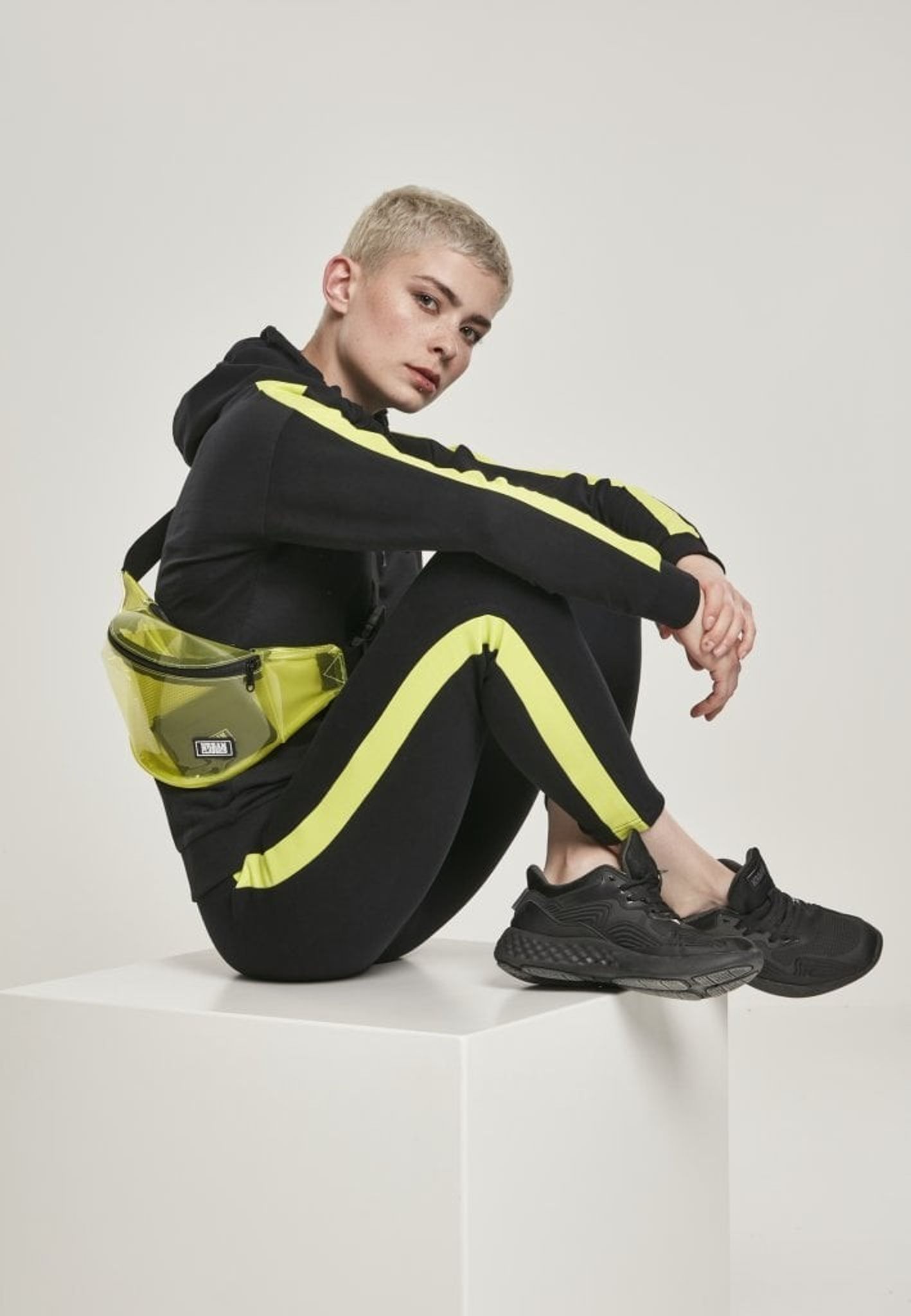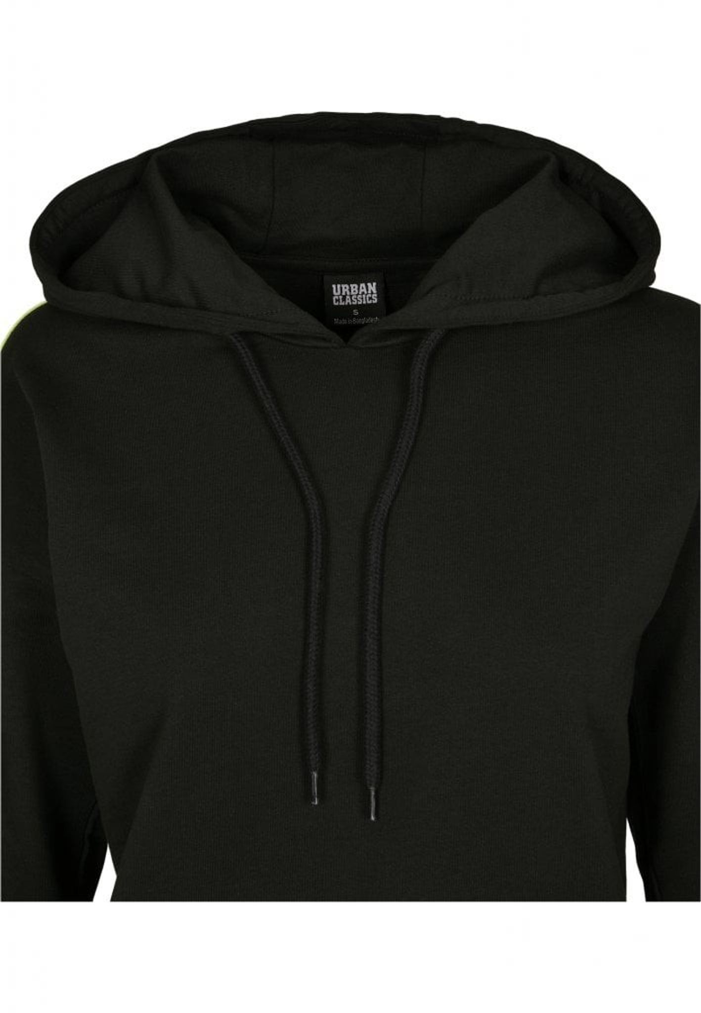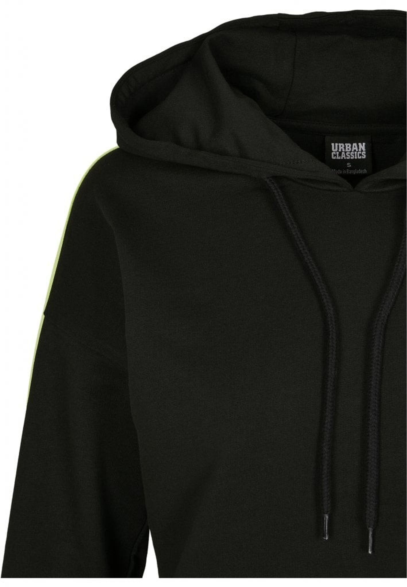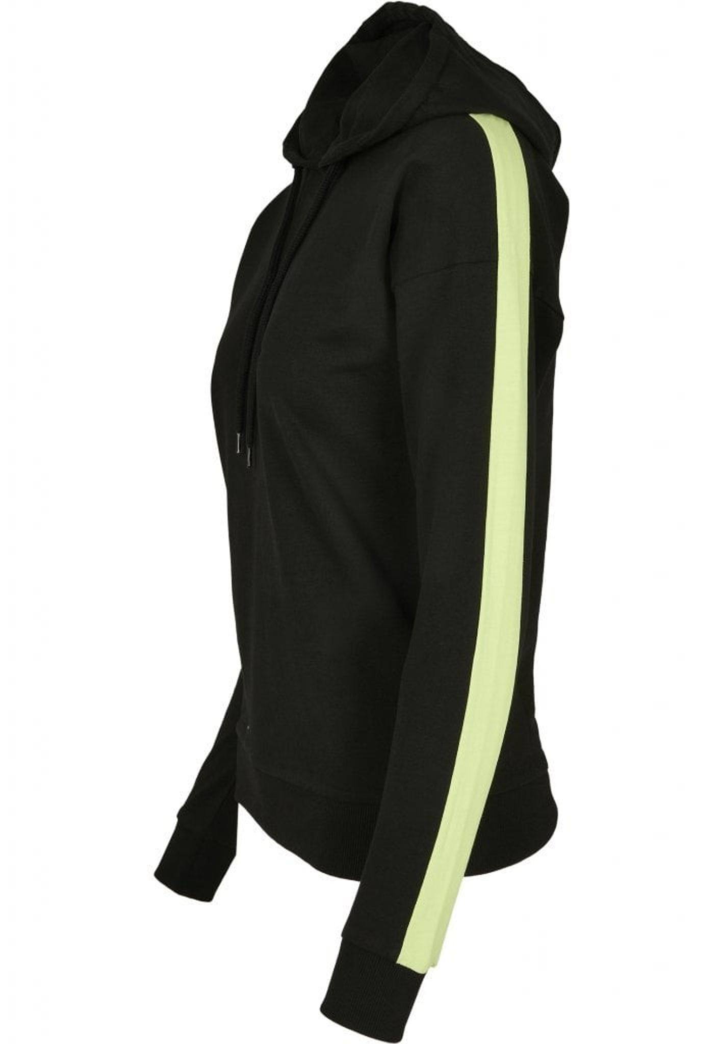 En svart luvtröja med en limefärgad rand i neon på armarna.