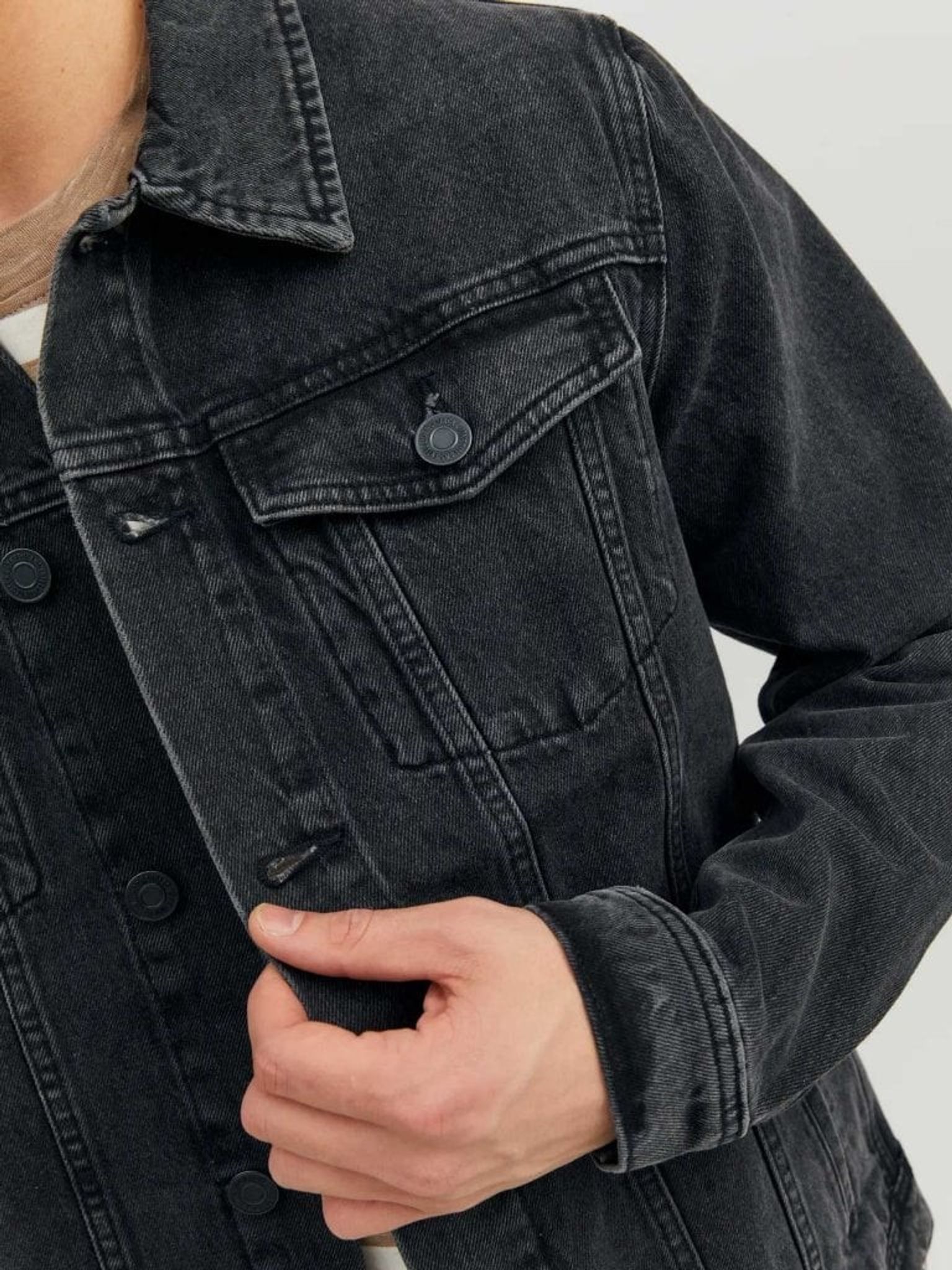 Upptäck vår svarta jeansjacka för herr, designad för att skydda mot vinden med stil.