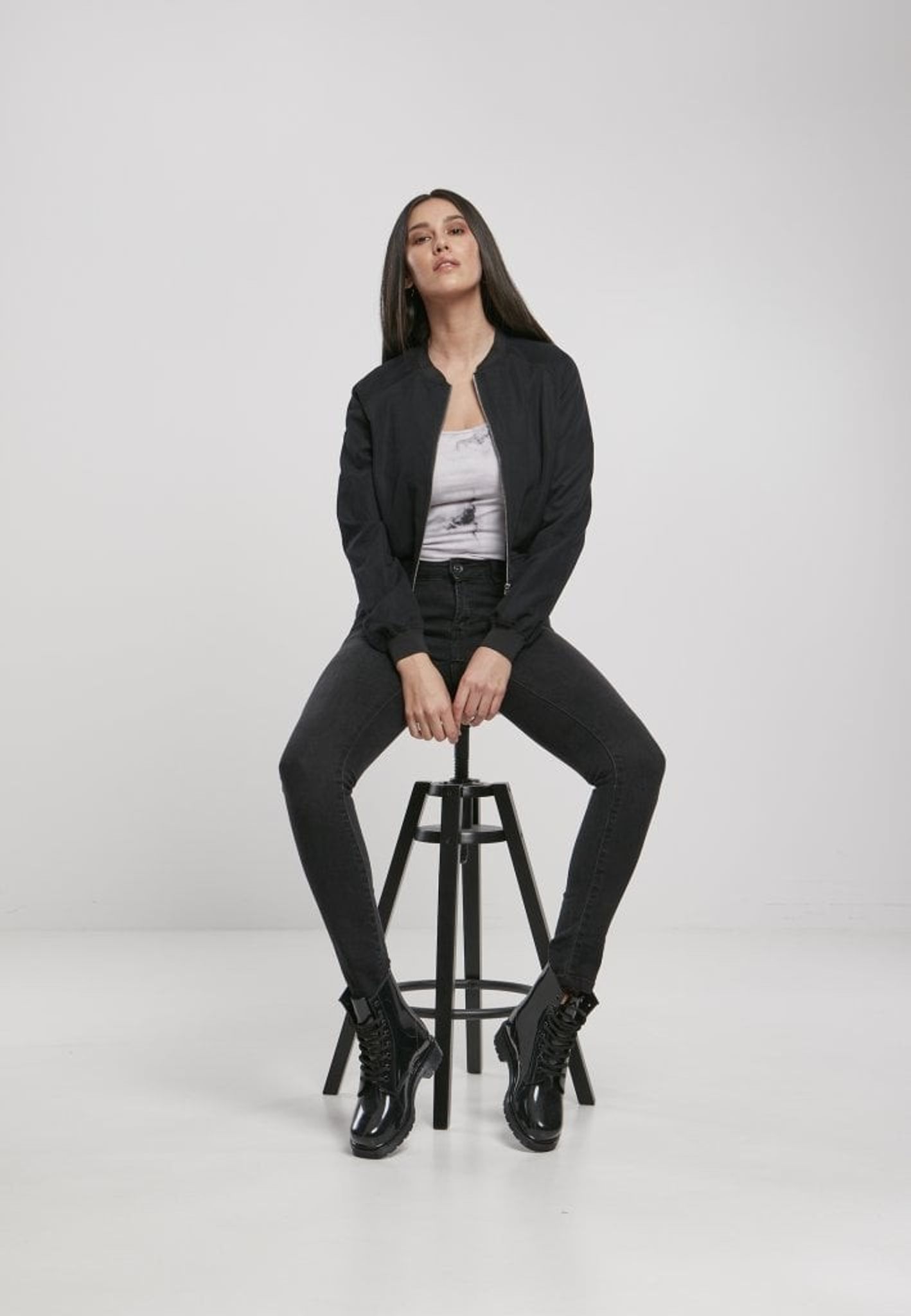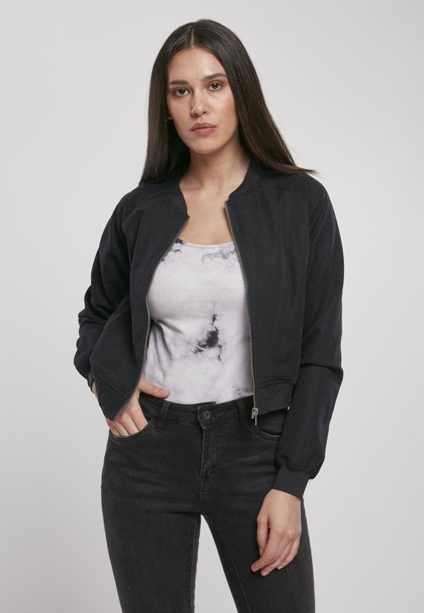 En midjekort jacka med mudd i hals och som stängs med en dragkedja fram.