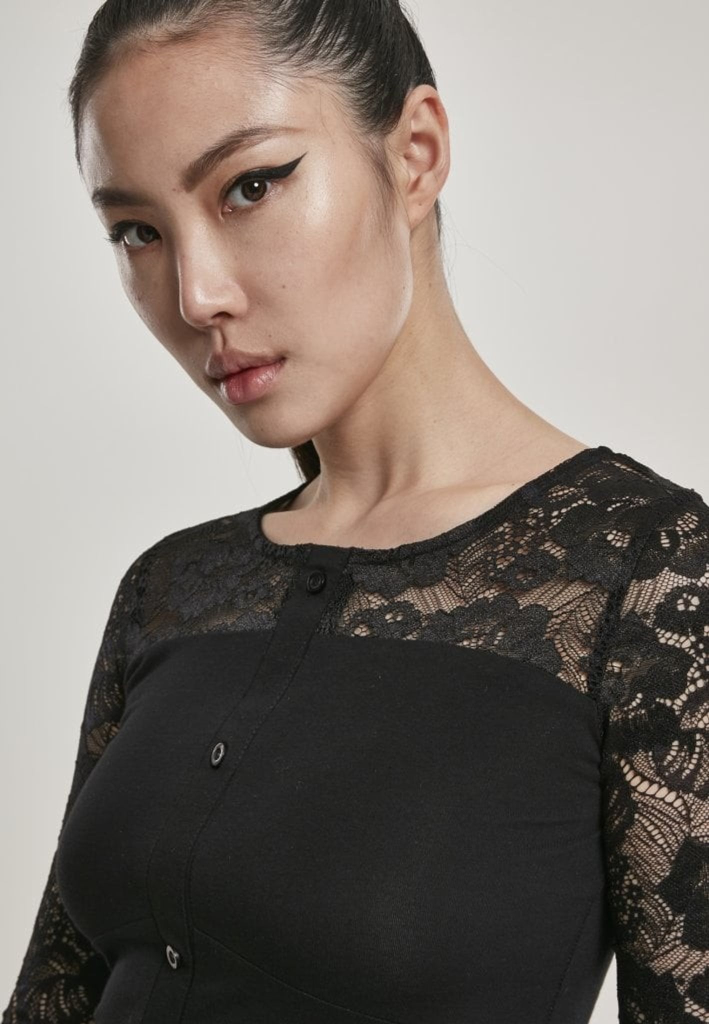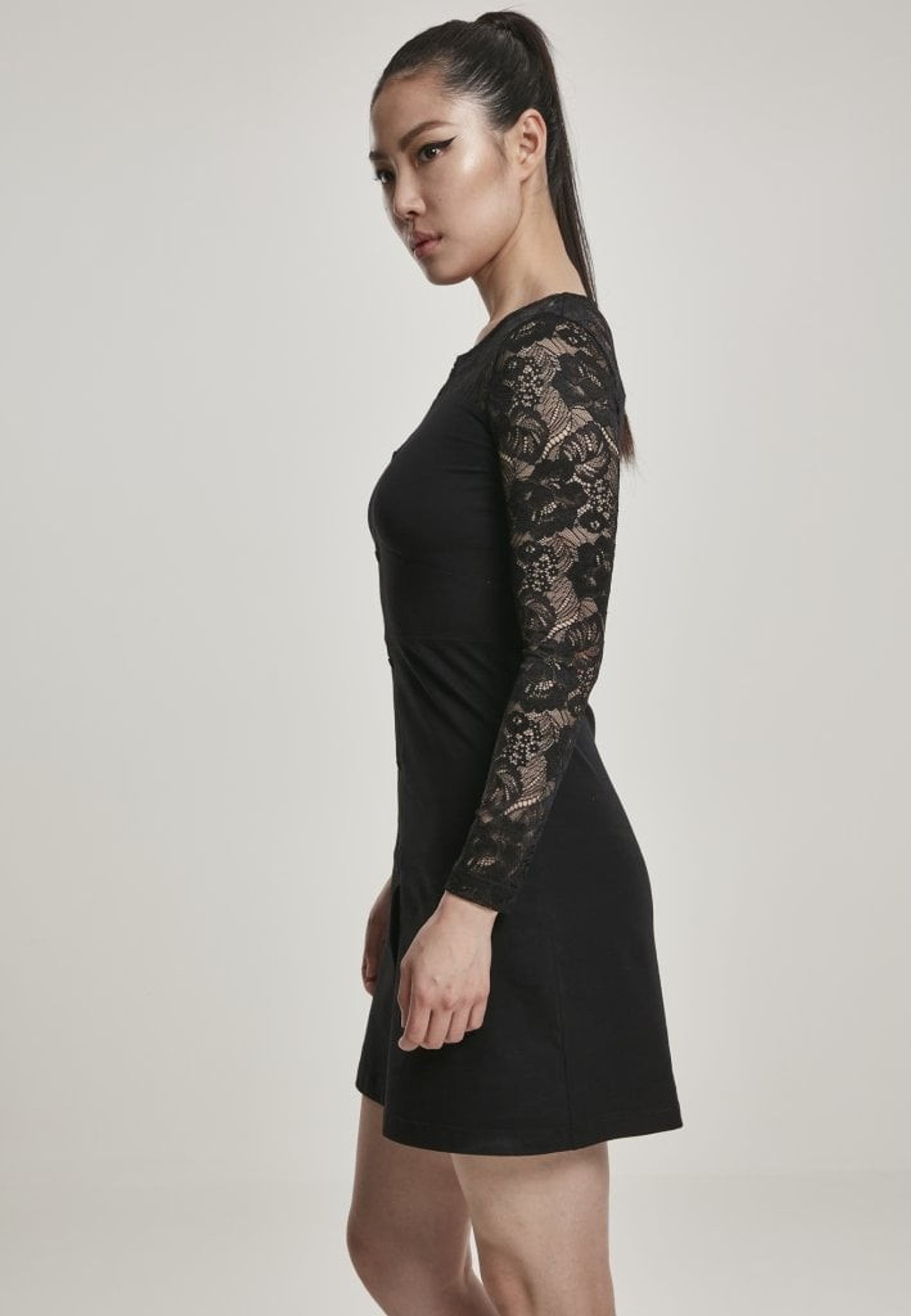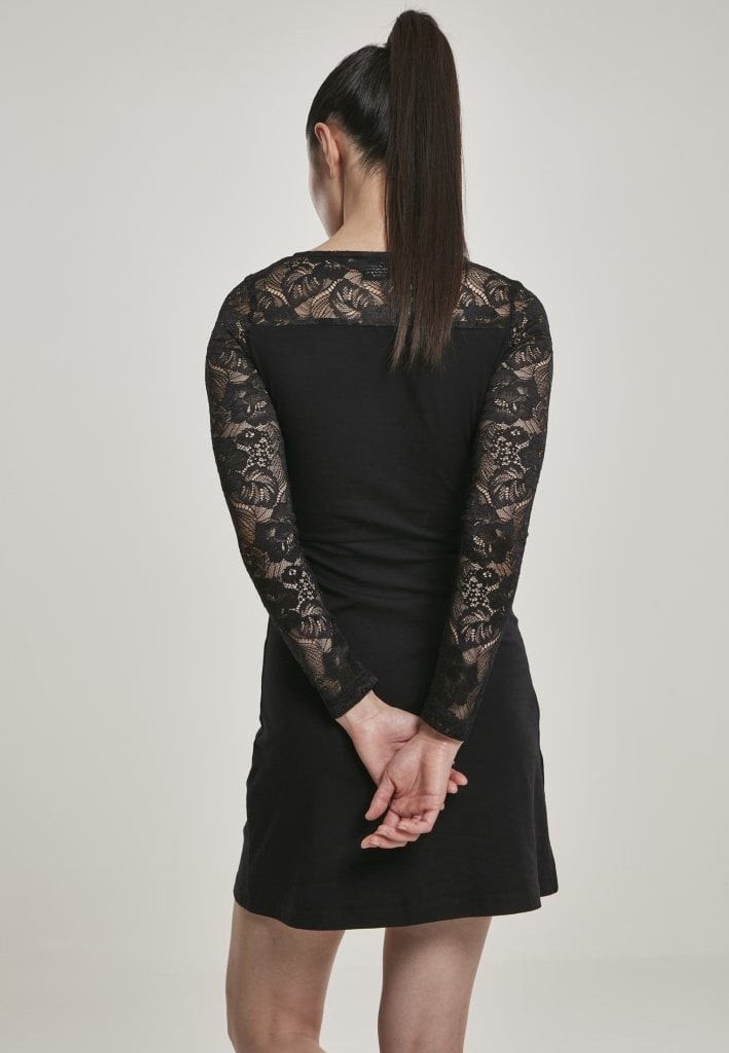 En kort och tajt klänning med långa spetsarmar i stretchjersey.