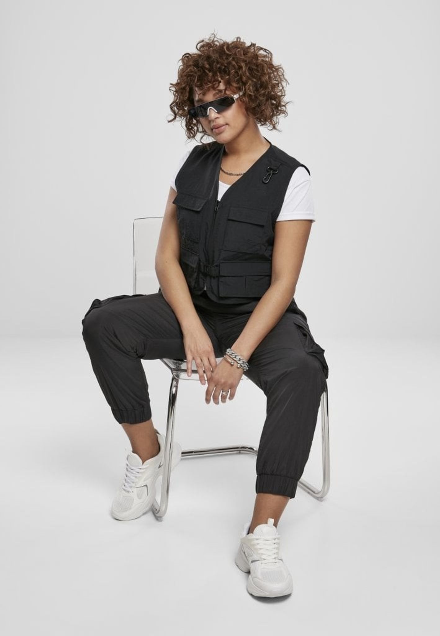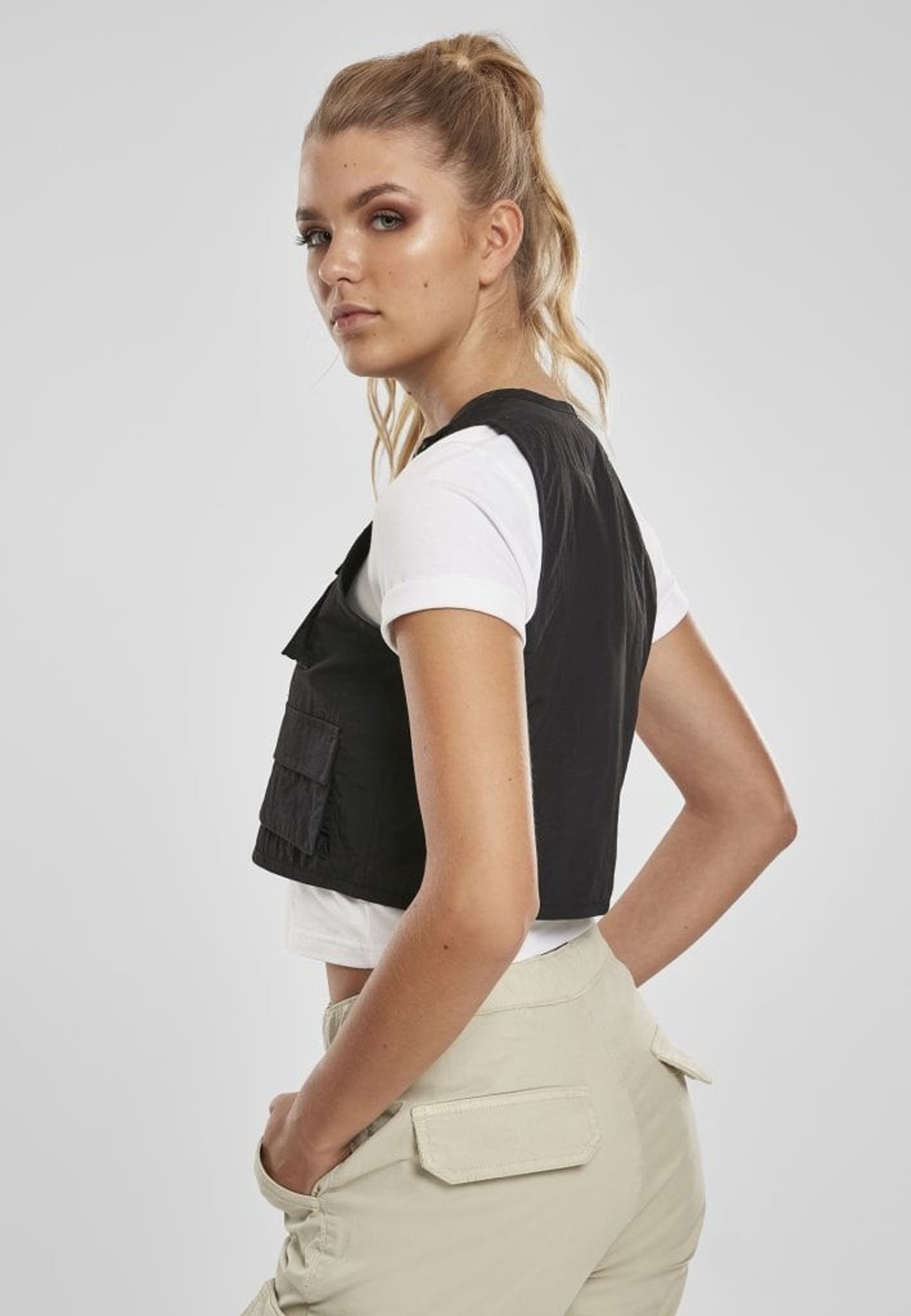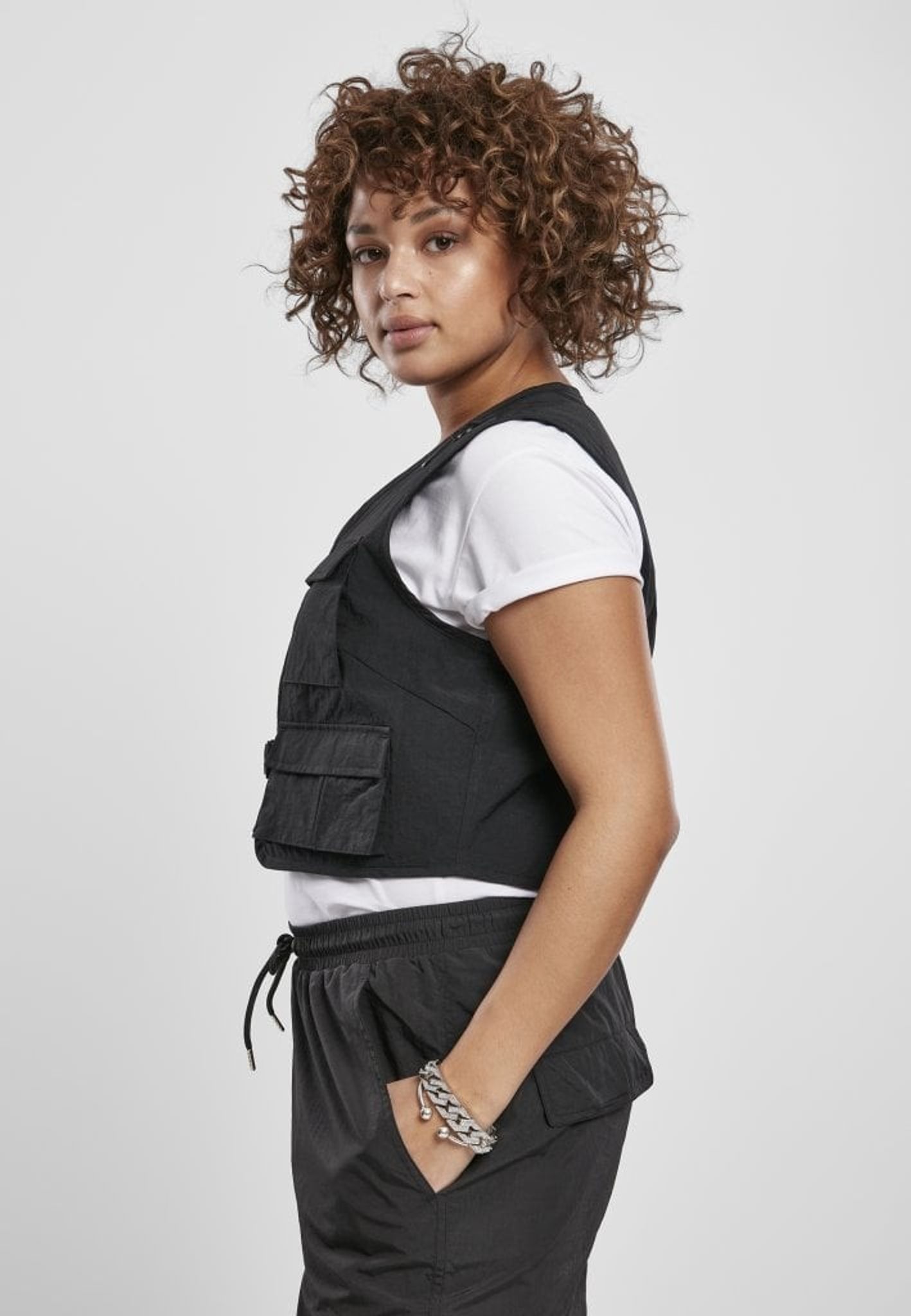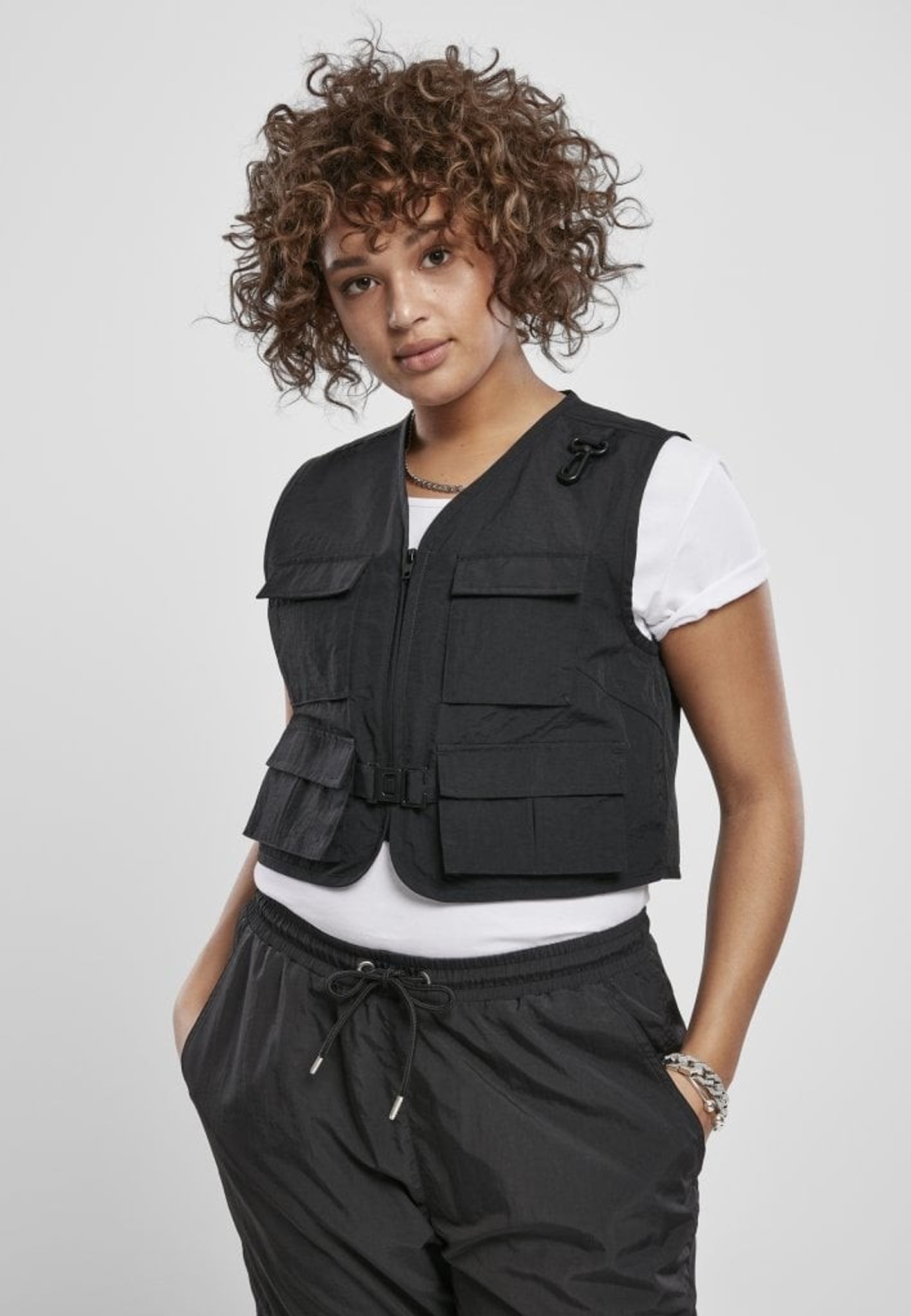 En svart kort väst med fyra fickor fram.