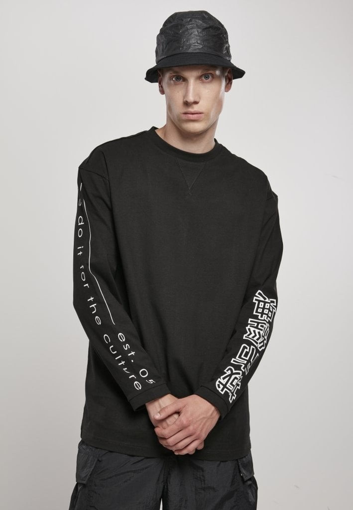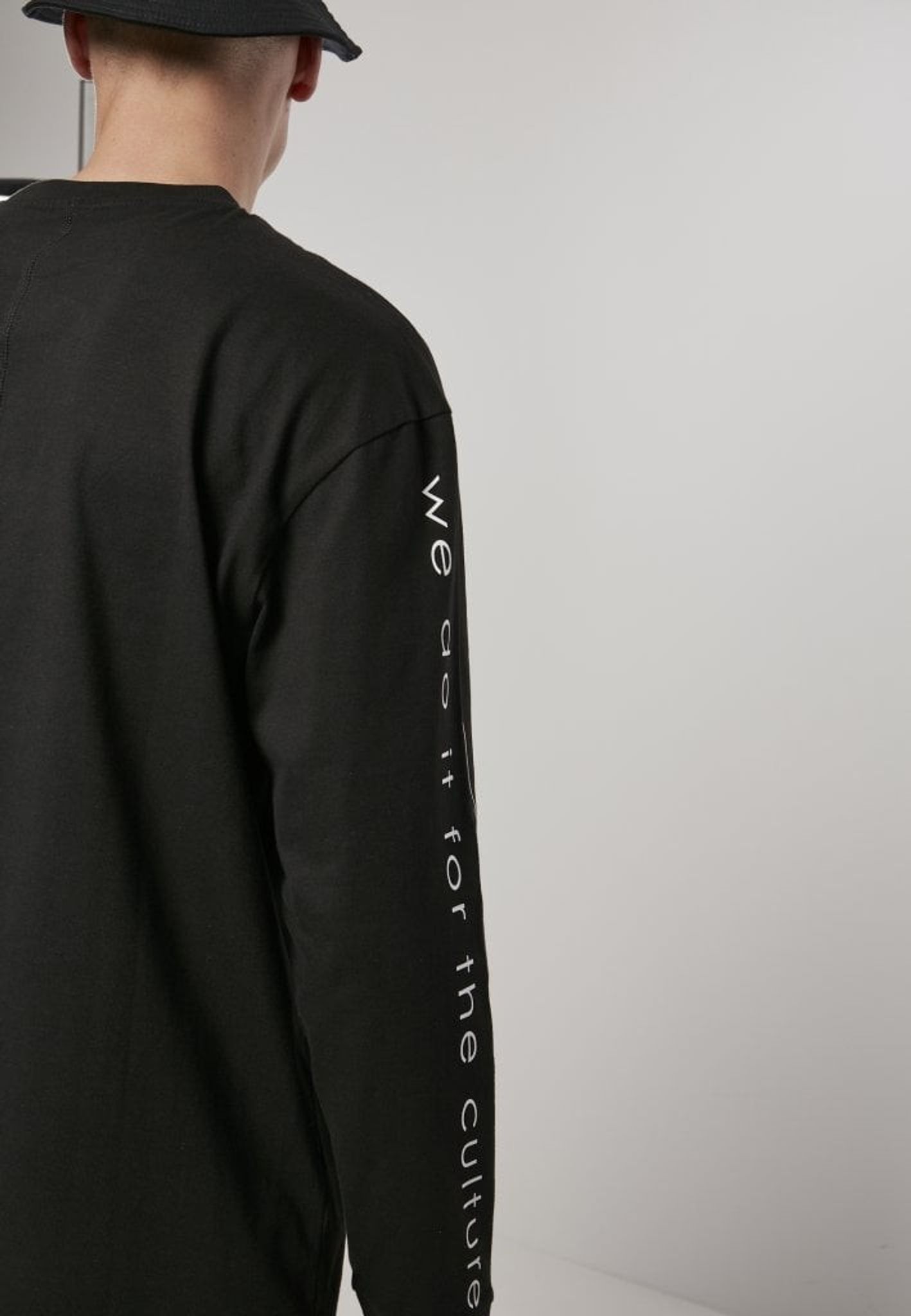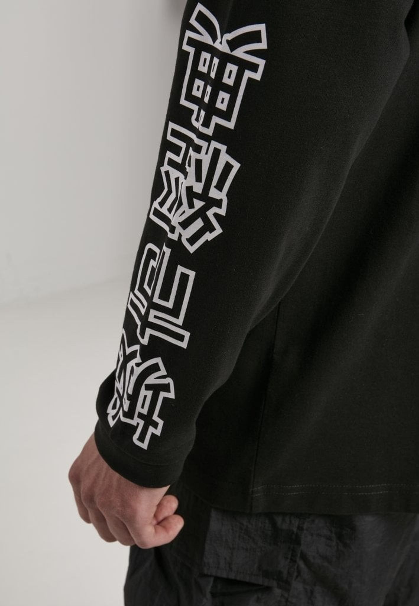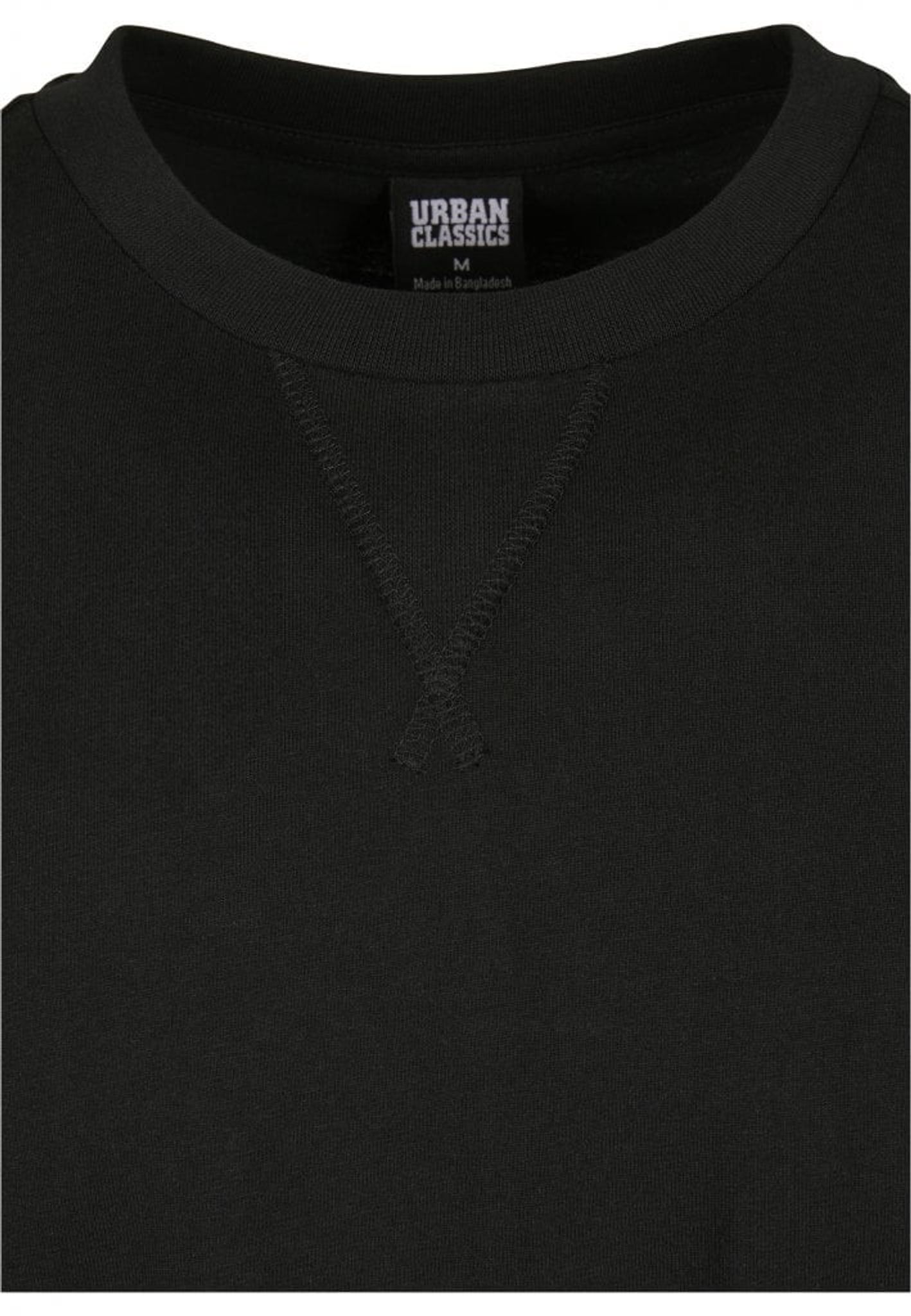 En svart rundhalsad tröja med mudd i armsluten och i halsen.
