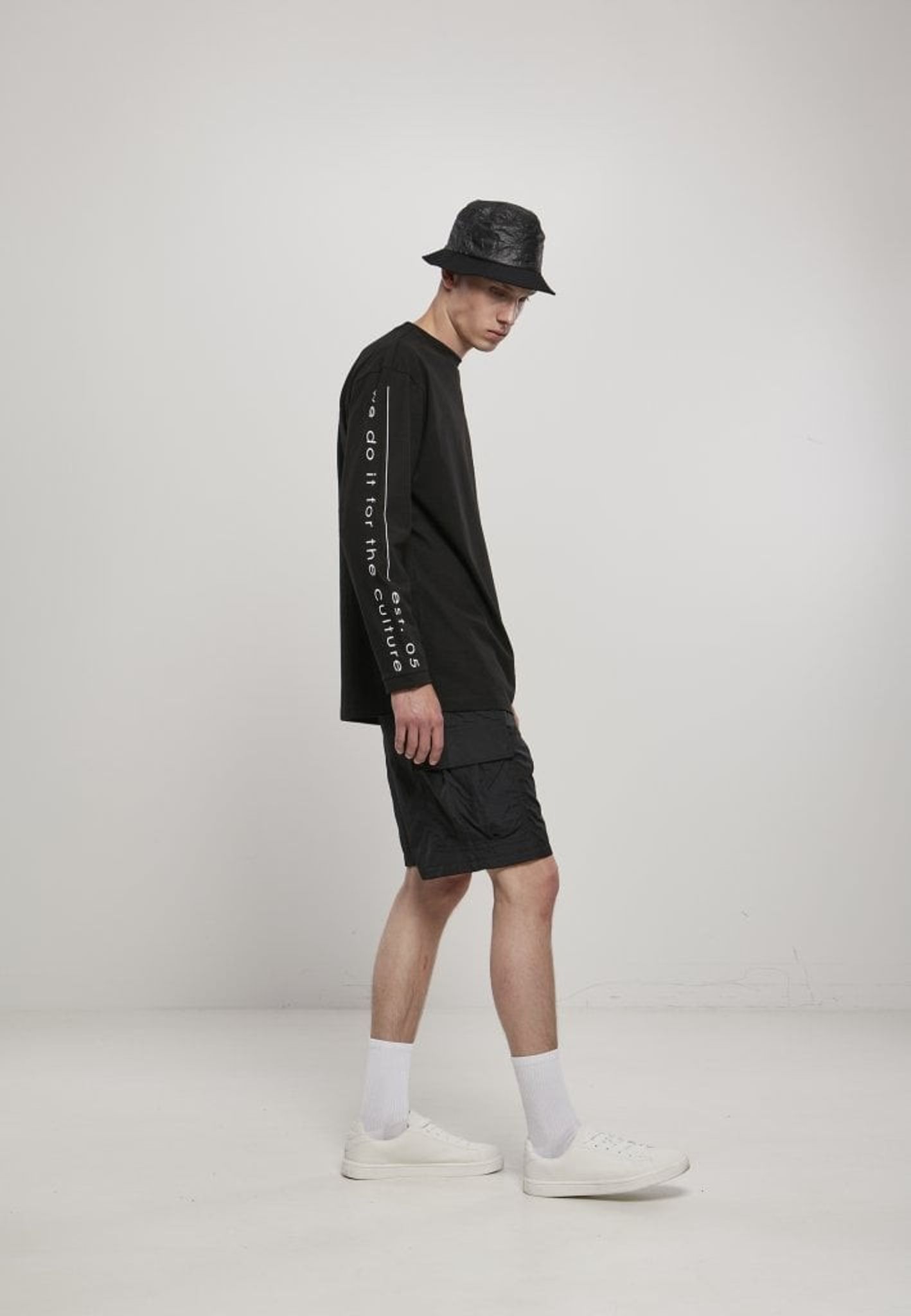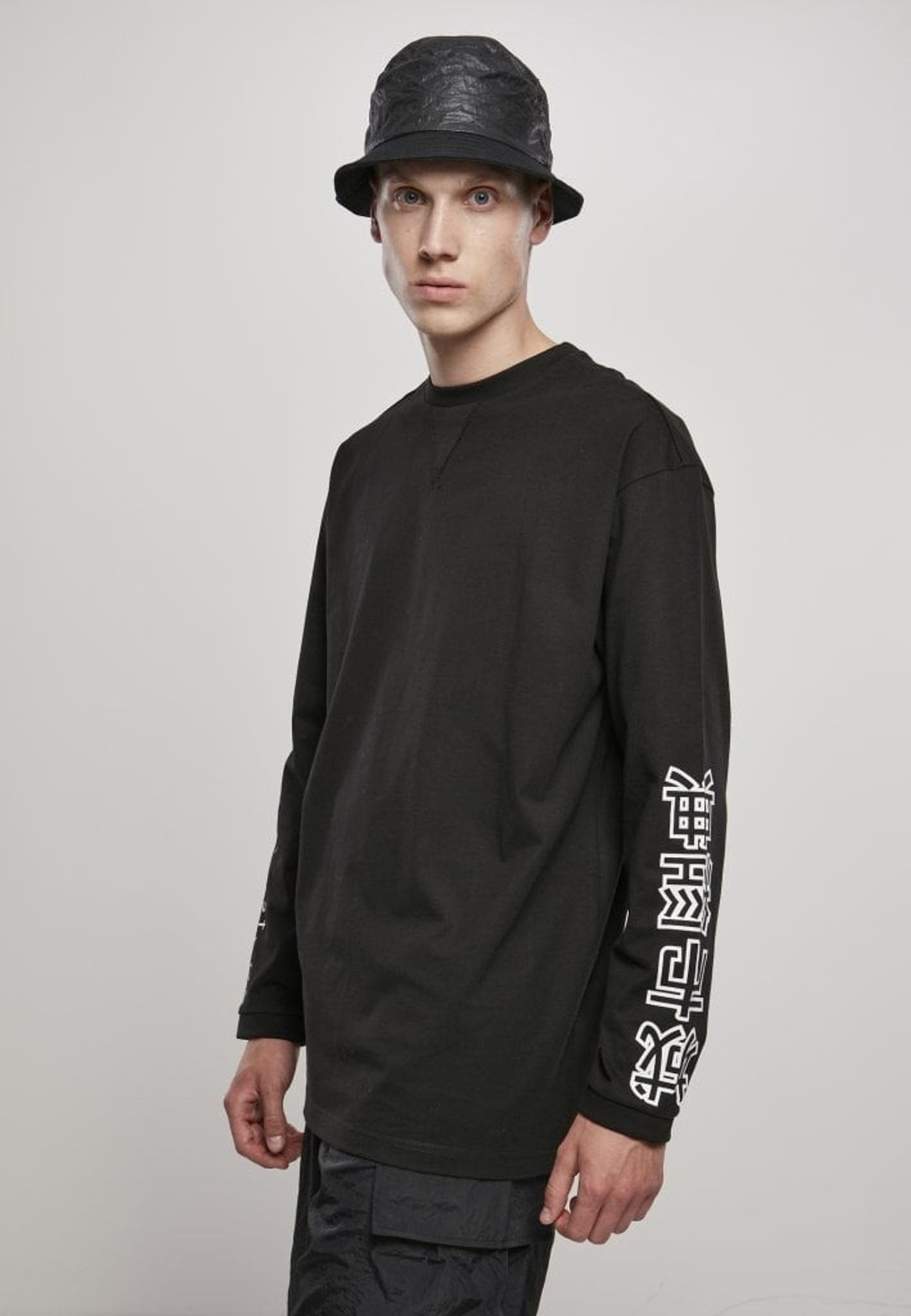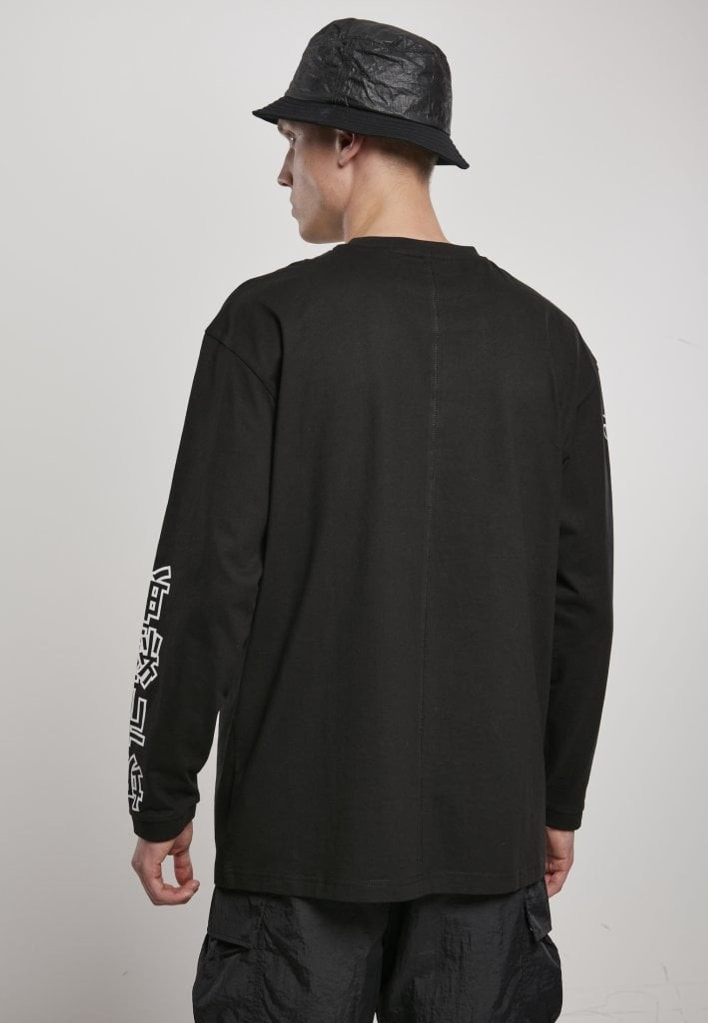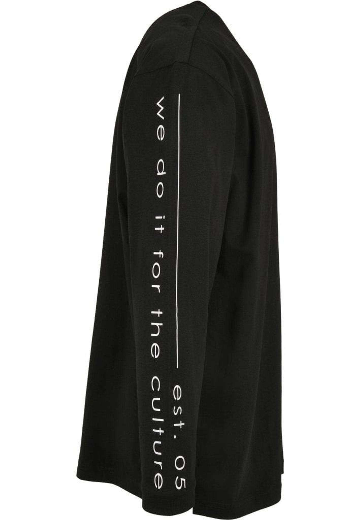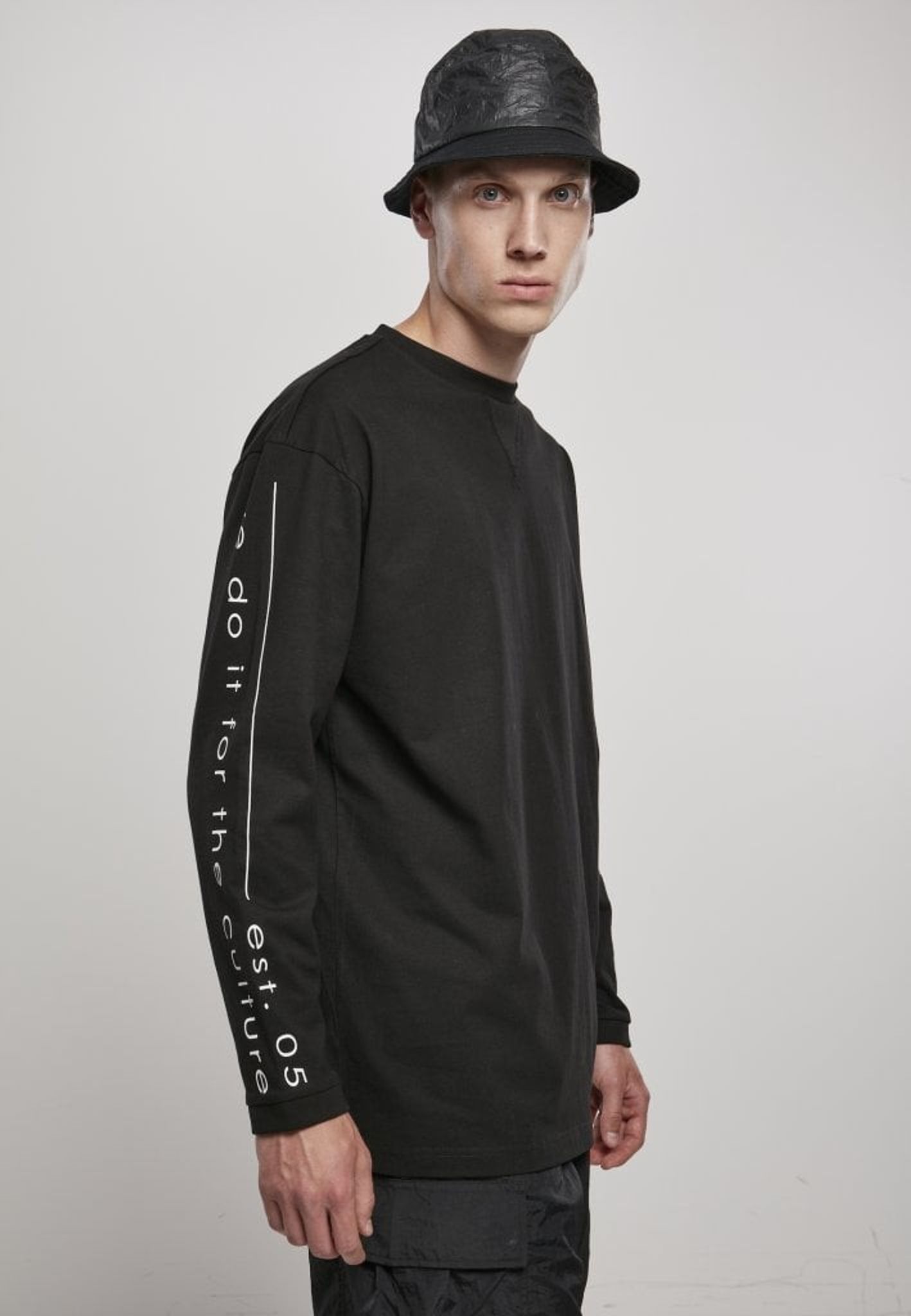 En svart rundhalsad tröja med mudd i armsluten och i halsen.