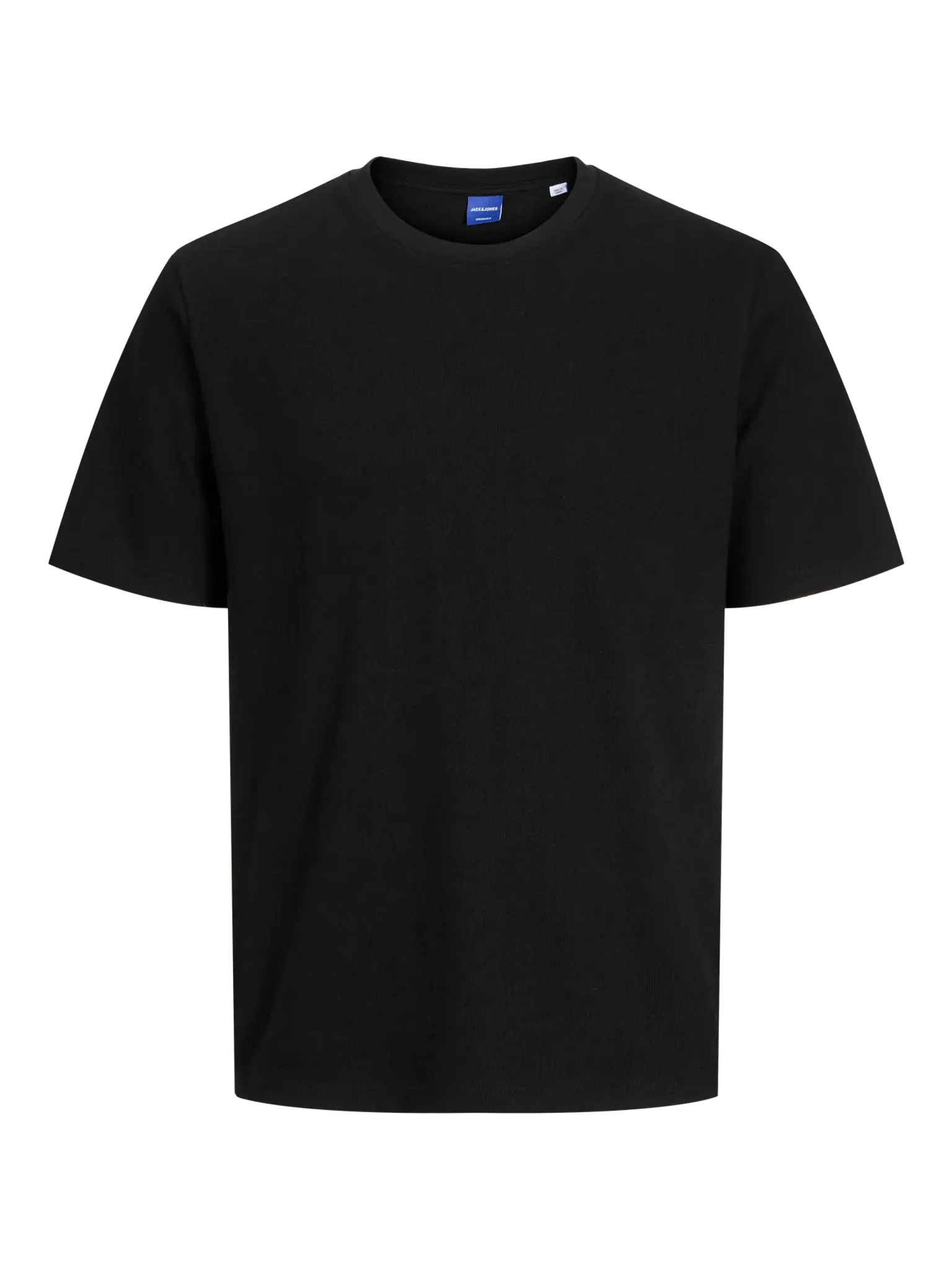 Denna svarta loose fit T-shirt från Jack & Jones kombinerar tidlös enkelhet med en subtilt rustik karaktär. Tyget är tillverkat i en single jersey med circular knit-teknik, vilket skapar en ojämn, lätt noppig yta – en vintage-liknande struktur som ger plagget en mer levande och taktil känsla än släta trikåmaterial. Det är en detalj som påminner mer om ett välsittande plagg med historia, än en blank nyproducerad T-shirt.